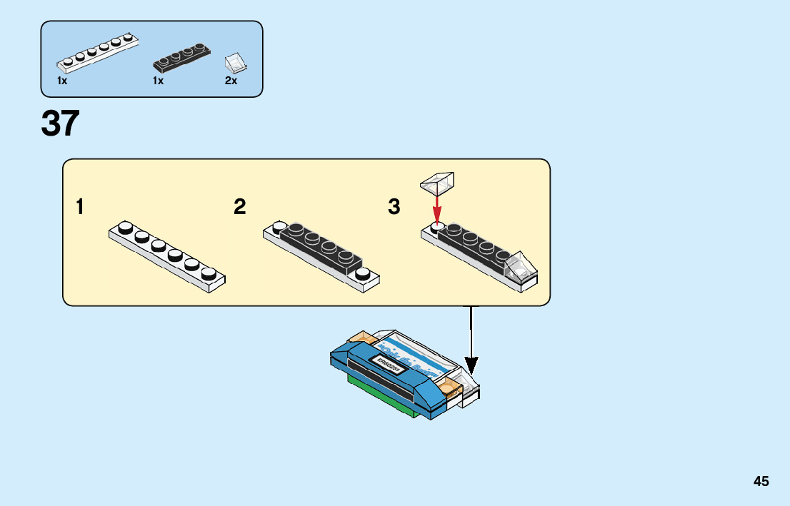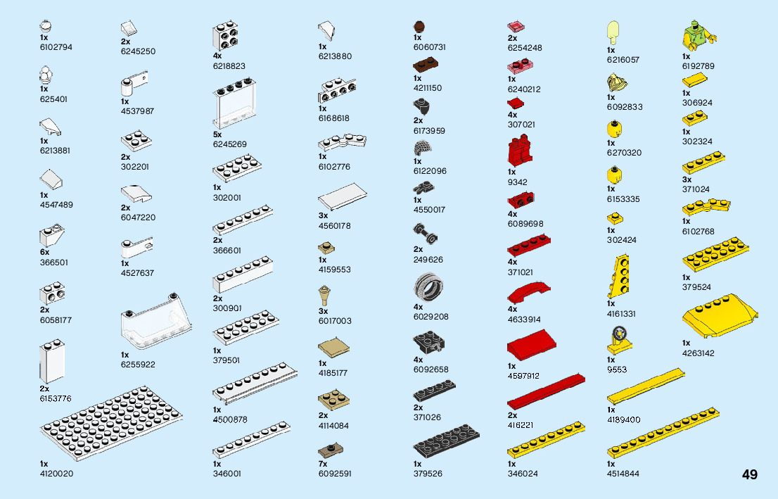 The assembly guide is prepared in a very understandable way for children and adult LEGO enthusiasts. A total of 100 picture galleries are shown, explaining the step-by-step construction stages for 2 different structures.