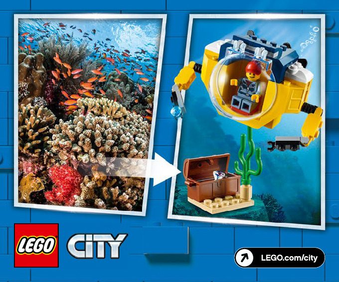 This page shares information about LEGO 60263 Ocean Mini-Submarine manual, LEGO 60263 PDF instructions, LEGO 60263 Ocean Mini-Submarine building guide online, How to build 60263 Ocean Mini-Submarine LEGO.