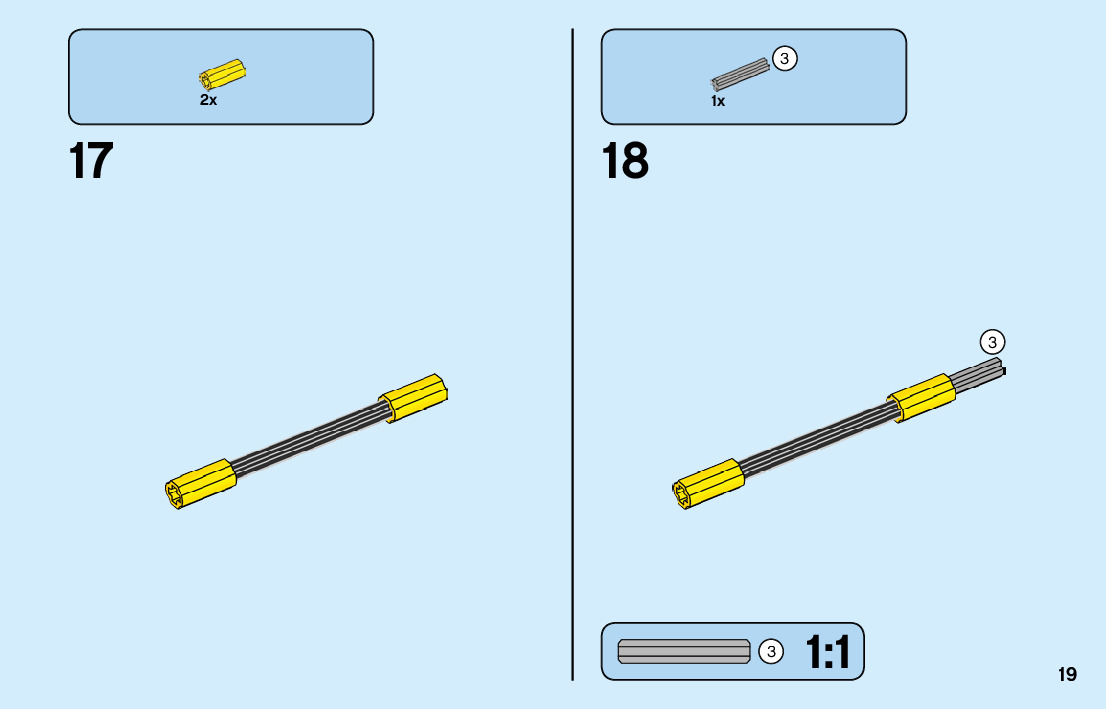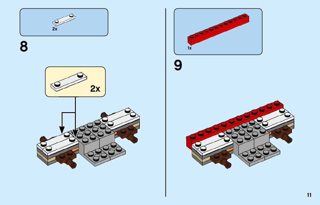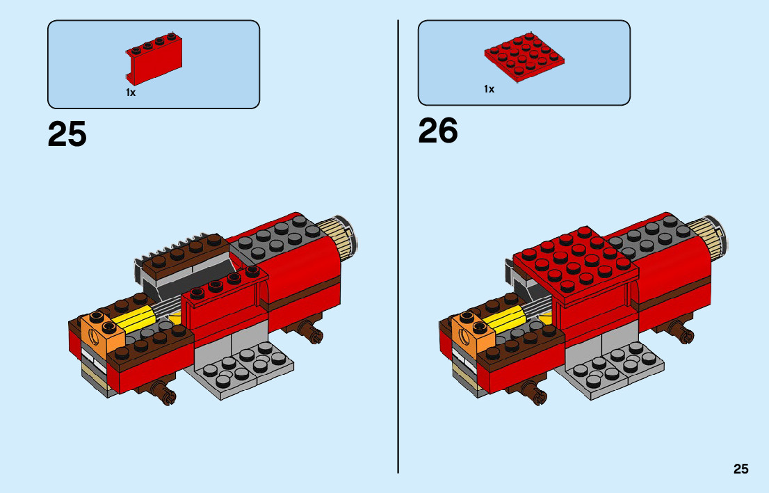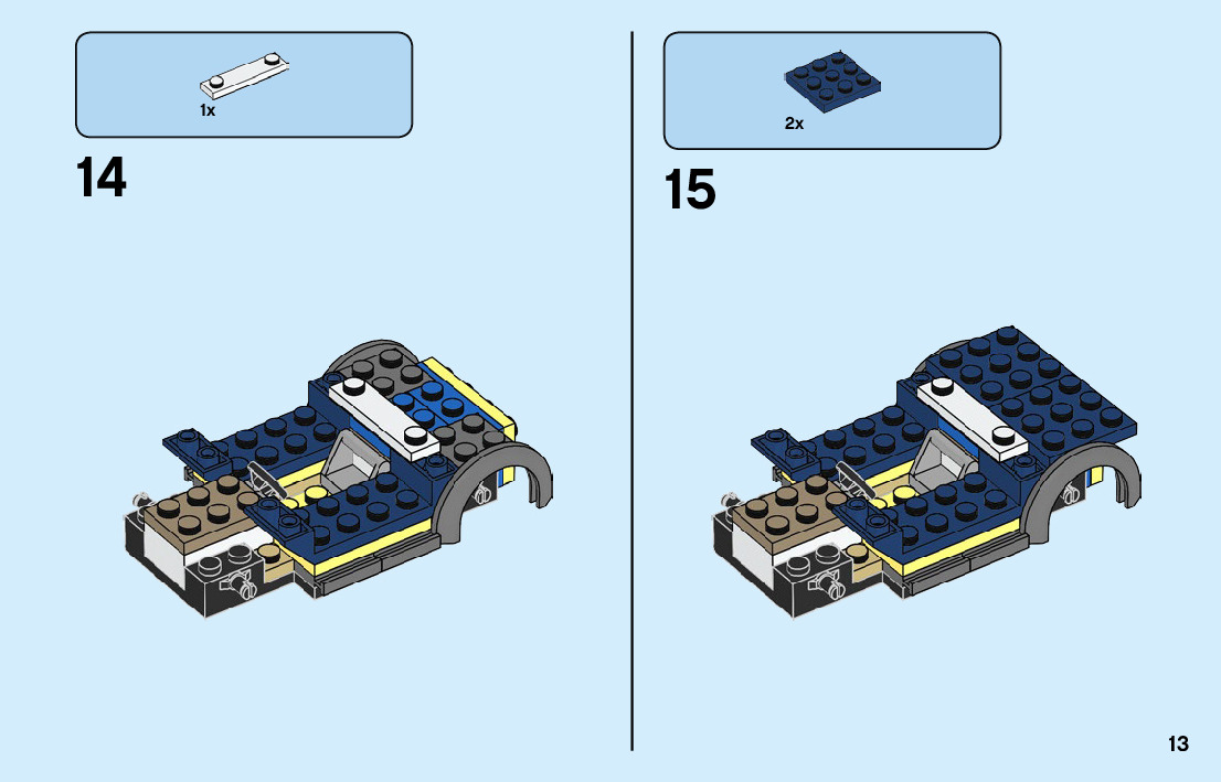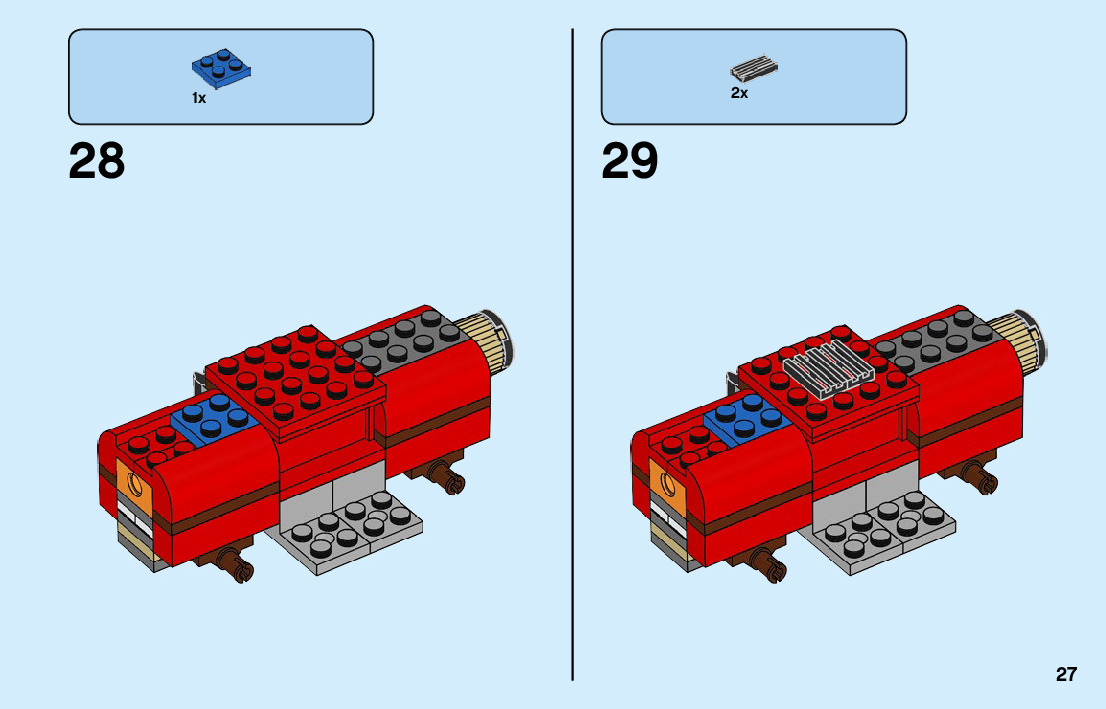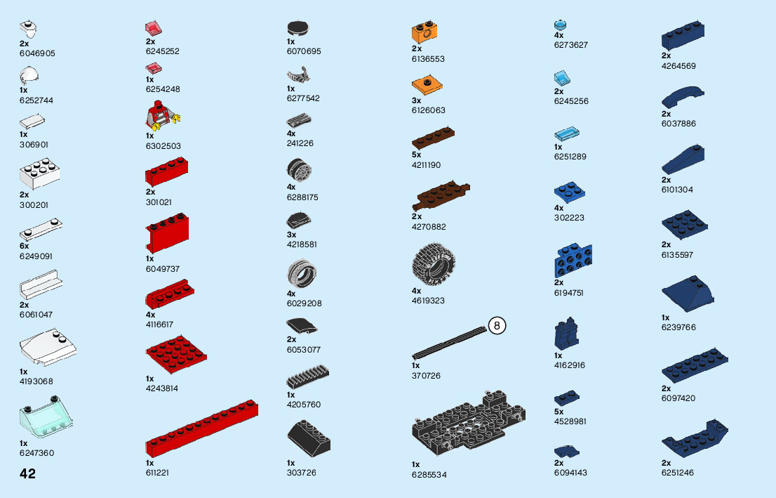 The assembly guide is prepared in a very understandable way for children and adult LEGO enthusiasts. A total of 84 picture galleries are shown, explaining the step-by-step construction stages for 2 different structures.