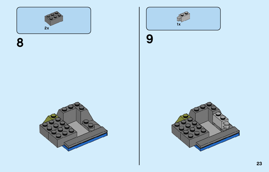 The assembly guide is prepared in a very understandable way for children and adult LEGO enthusiasts. A total of 100 picture galleries are shown, explaining the step-by-step construction stages for 2 different structures.