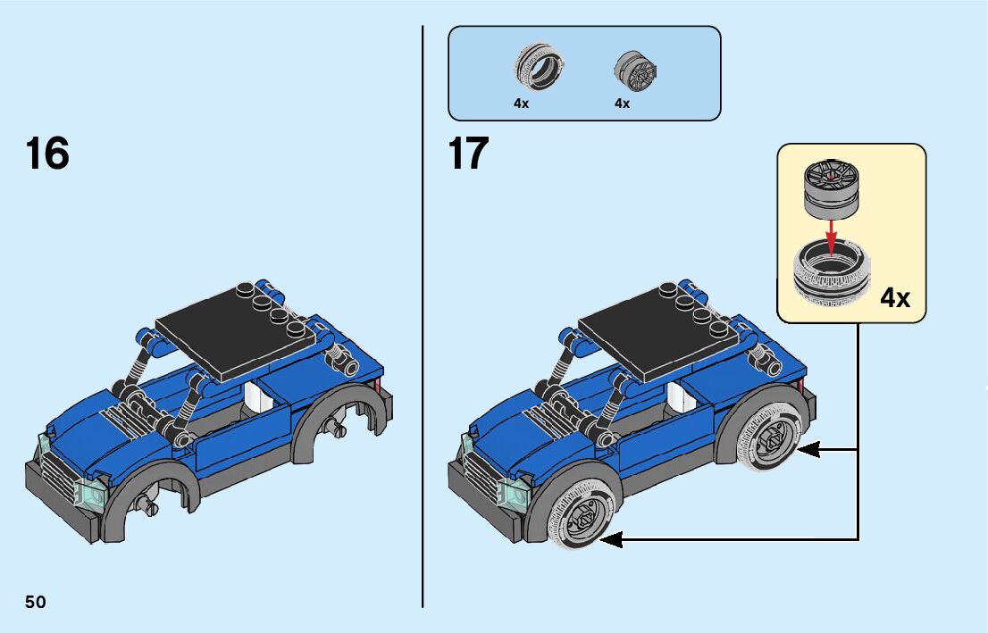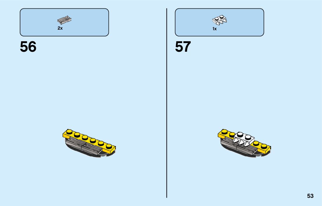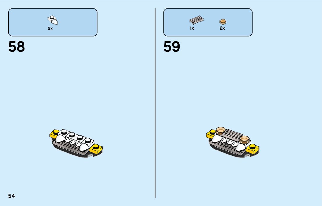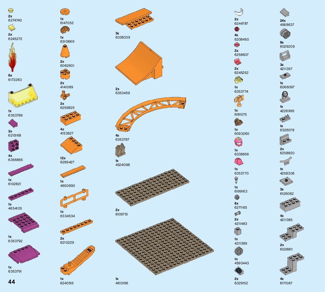 The assembly guide is prepared in a very understandable way for children and adult LEGO enthusiasts. A total of 304 picture galleries are shown, explaining the step-by-step construction stages for 6 different structures.