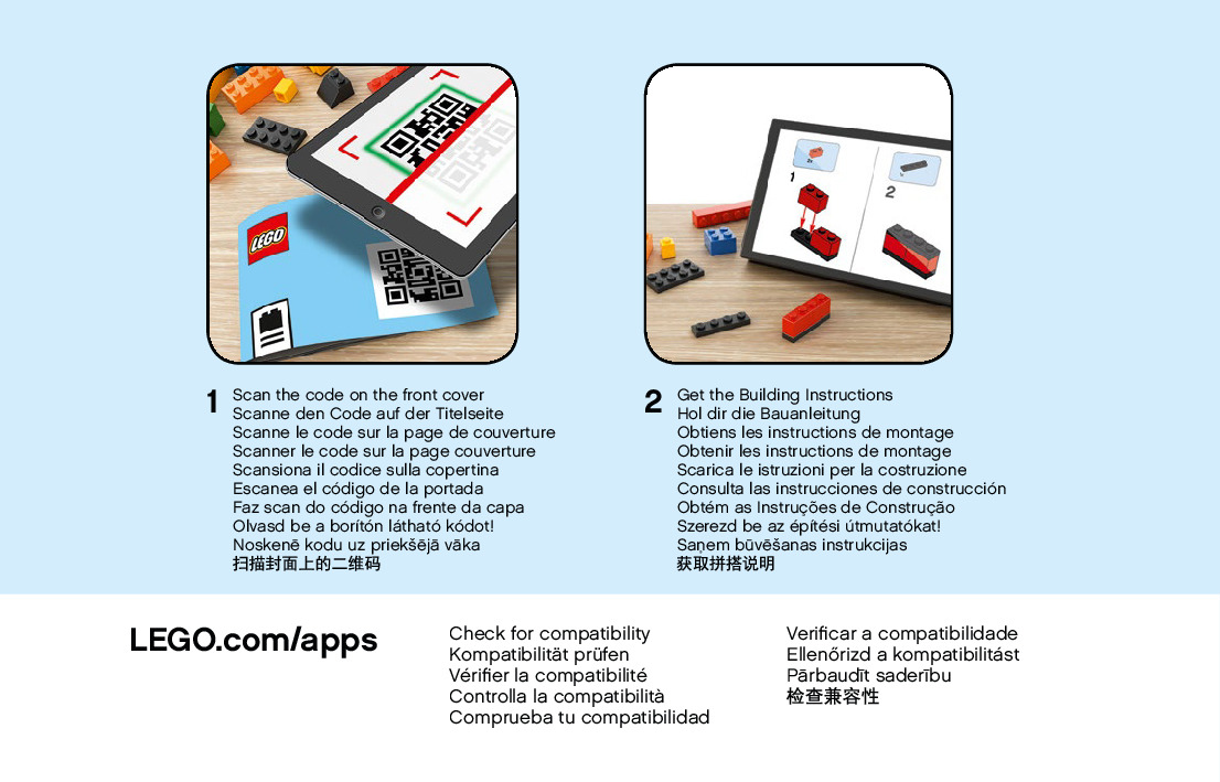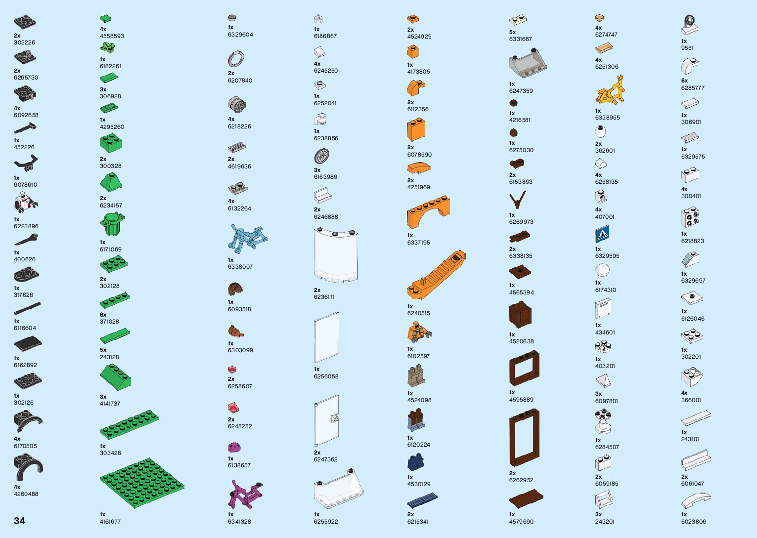 The assembly guide is prepared in a very understandable way for children and adult LEGO enthusiasts. A total of 224 picture galleries are shown, explaining the step-by-step construction stages for 5 different structures.