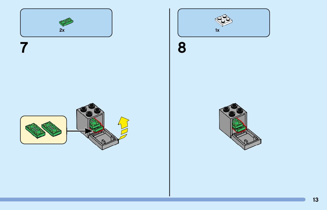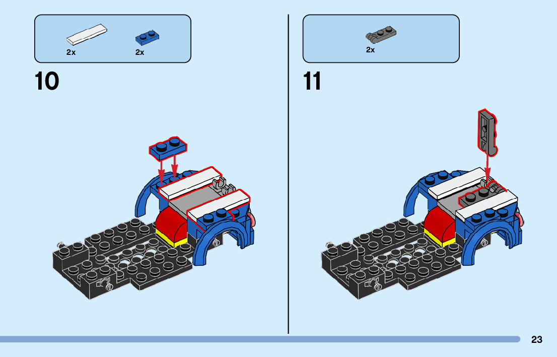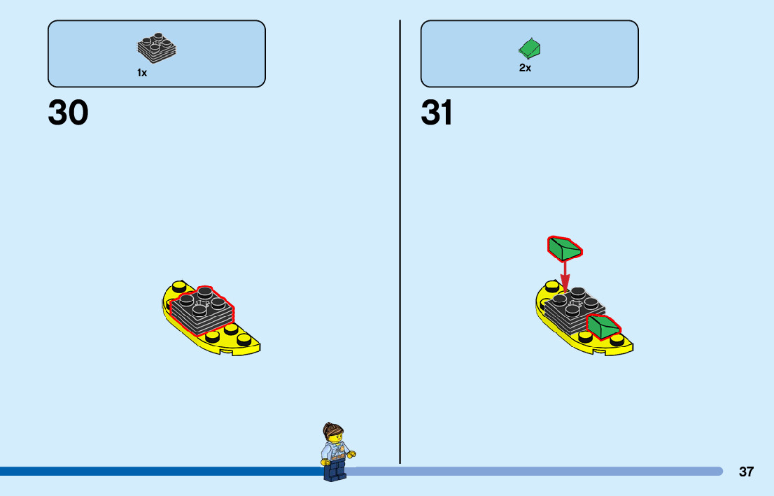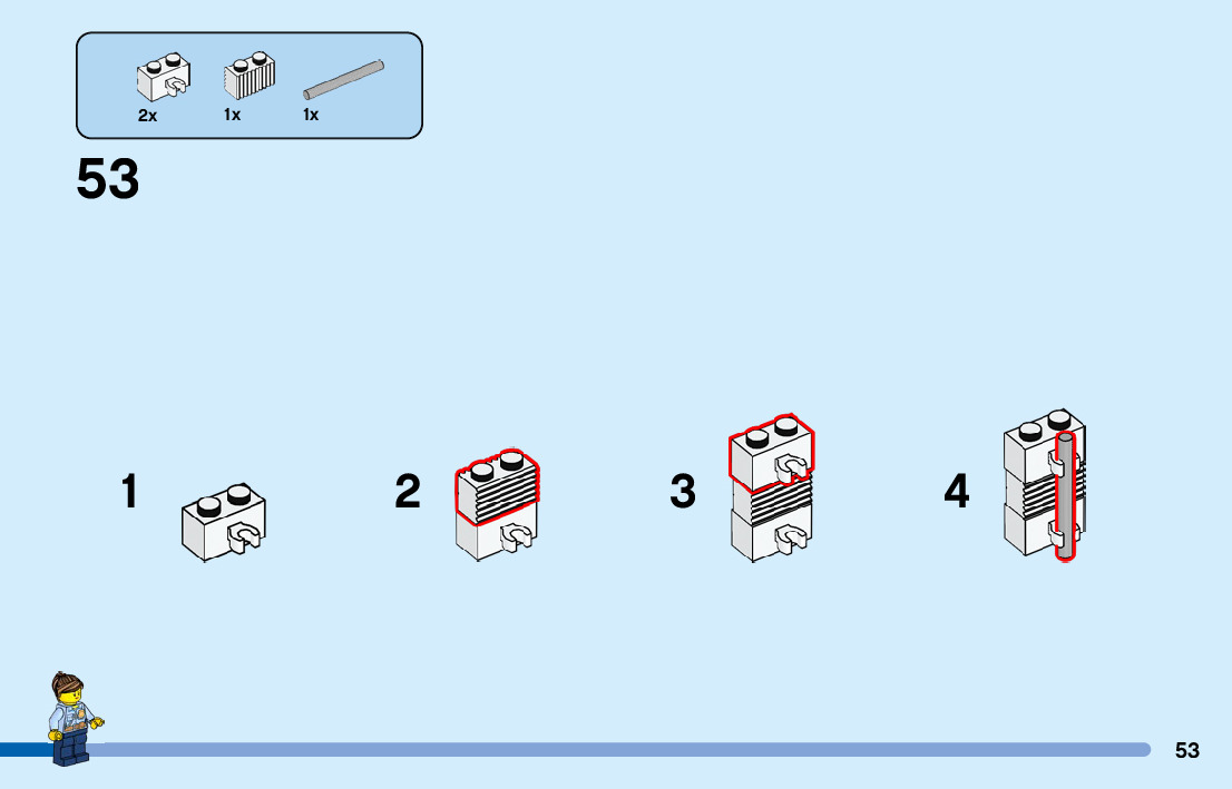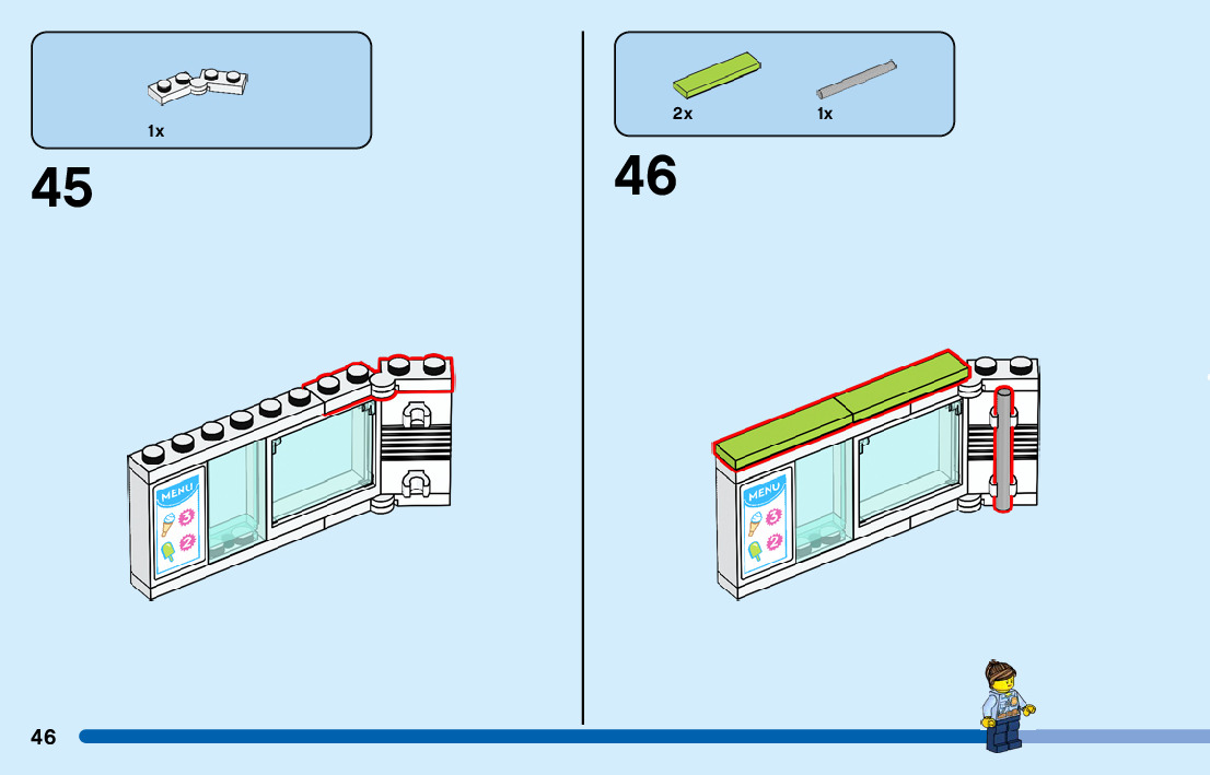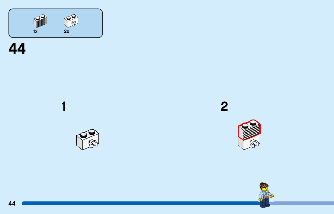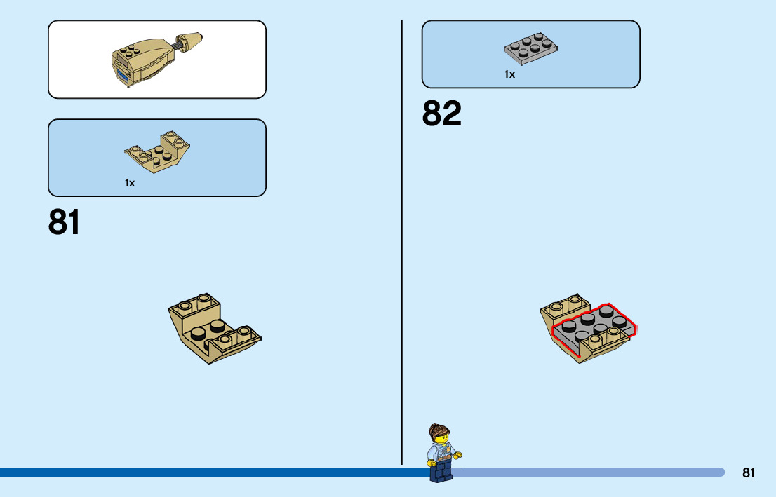 The assembly guide is prepared in a very understandable way for children and adult LEGO enthusiasts. A total of 160 picture galleries are shown, explaining the step-by-step construction stages for 2 different structures.