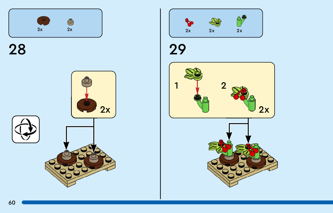 The assembly guide is prepared in a very understandable way for children and adult LEGO enthusiasts. A total of 320 picture galleries are shown, explaining the step-by-step construction stages for 5 different structures.