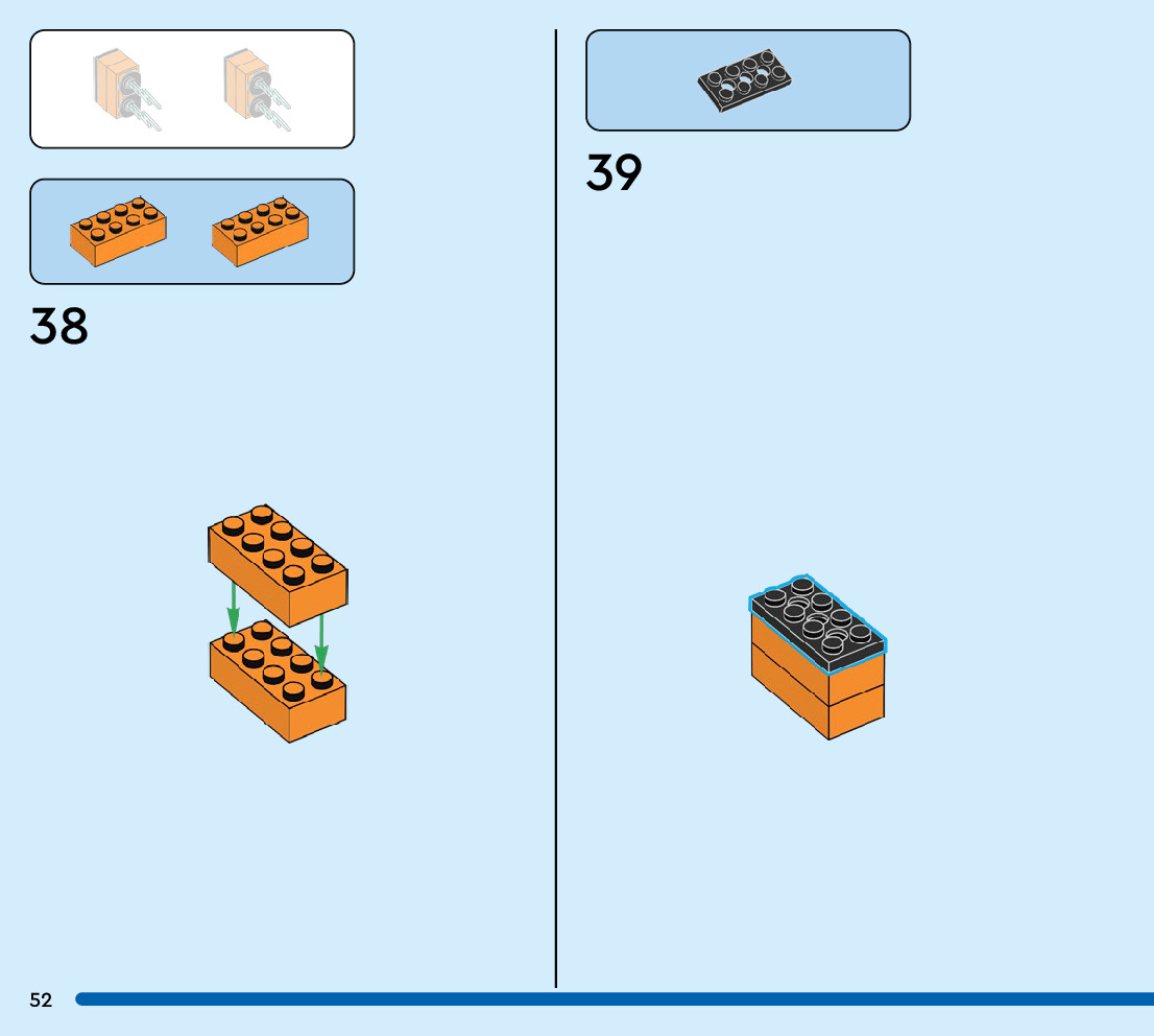 The assembly guide is prepared in a very understandable way for children and adult LEGO enthusiasts. A total of 72 picture galleries are shown, explaining the step-by-step construction stages for 1 different structures.