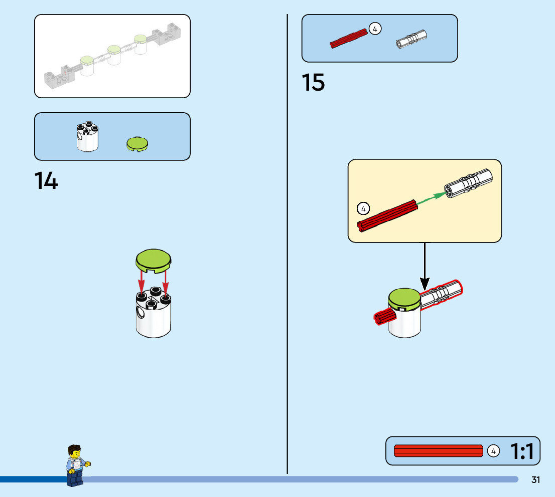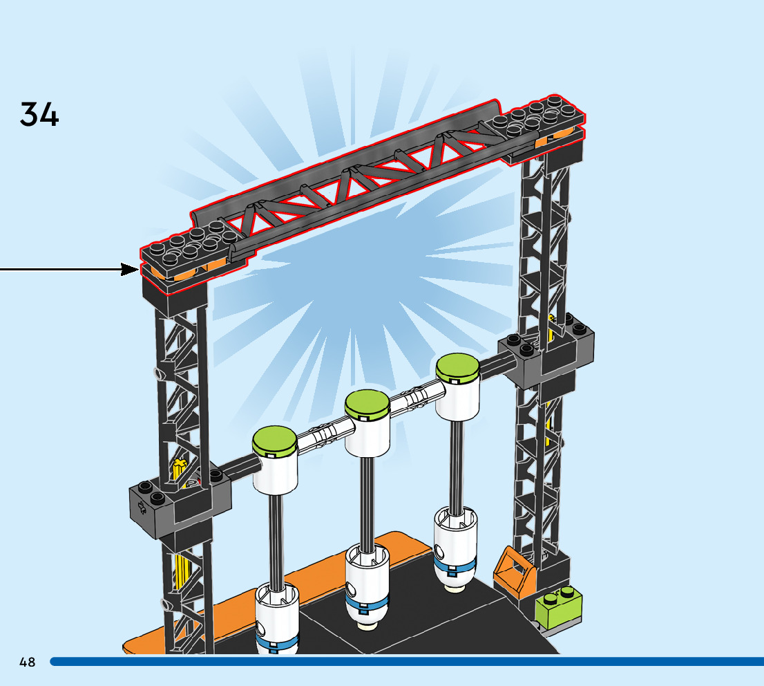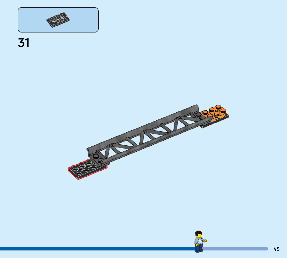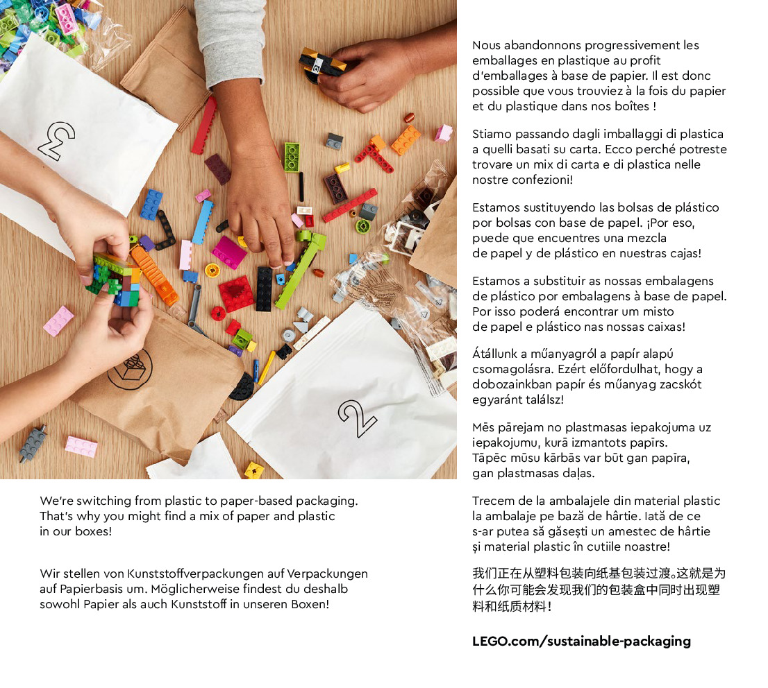 The assembly guide is prepared in a very understandable way for children and adult LEGO enthusiasts. A total of 56 picture galleries are shown, explaining the step-by-step construction stages for 1 different structures.
