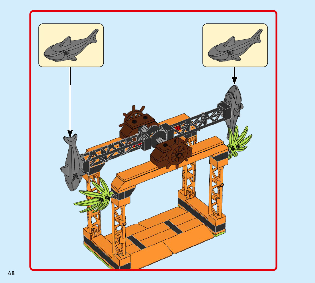 The assembly guide is prepared in a very understandable way for children and adult LEGO enthusiasts. A total of 52 picture galleries are shown, explaining the step-by-step construction stages for 1 different structures.