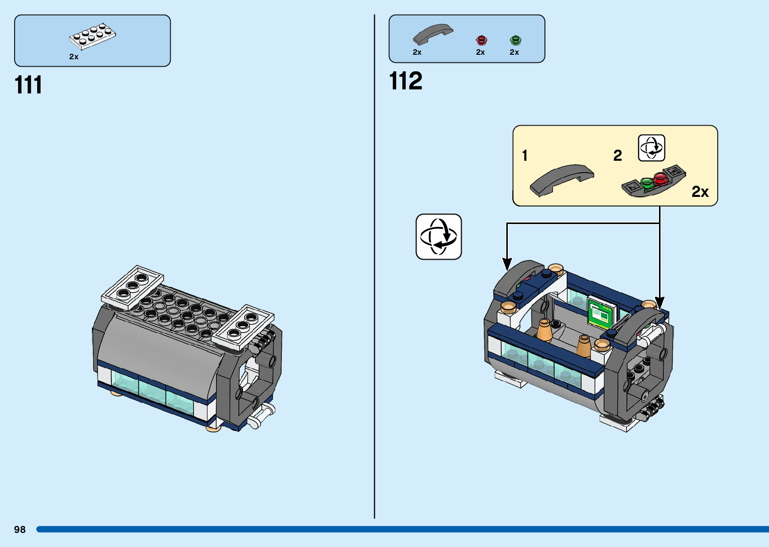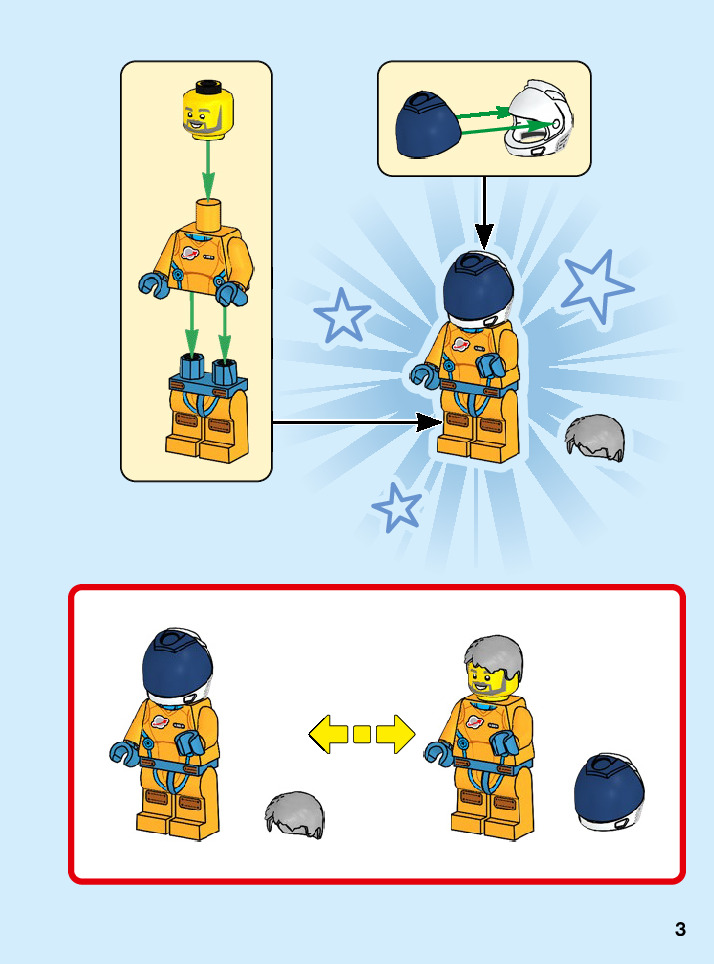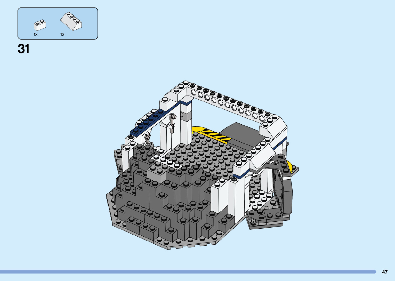 The assembly guide is prepared in a very understandable way for children and adult LEGO enthusiasts. A total of 216 picture galleries are shown, explaining the step-by-step construction stages for 3 different structures.