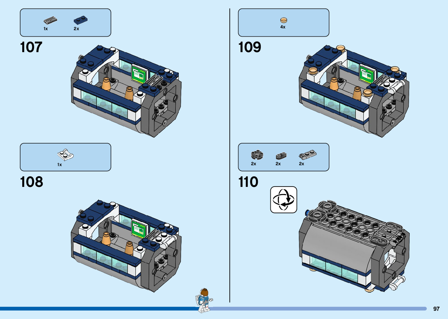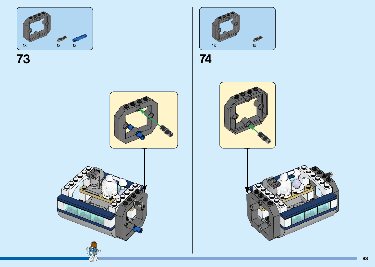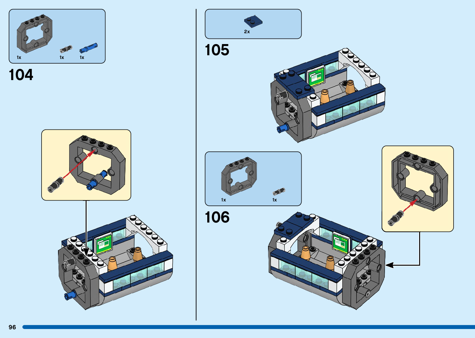 The assembly guide is prepared in a very understandable way for children and adult LEGO enthusiasts. A total of 216 picture galleries are shown, explaining the step-by-step construction stages for 3 different structures.
