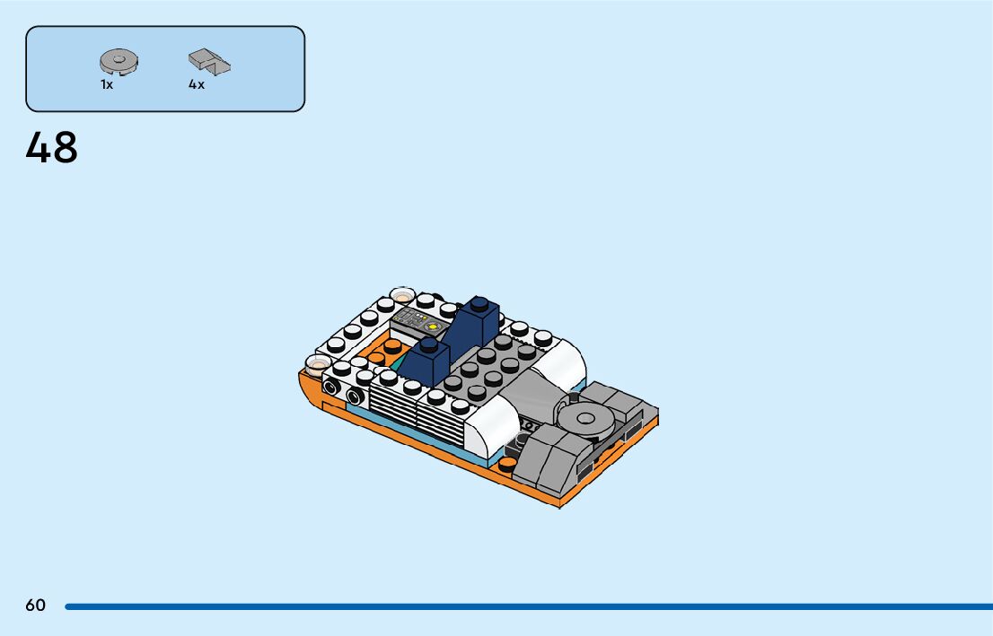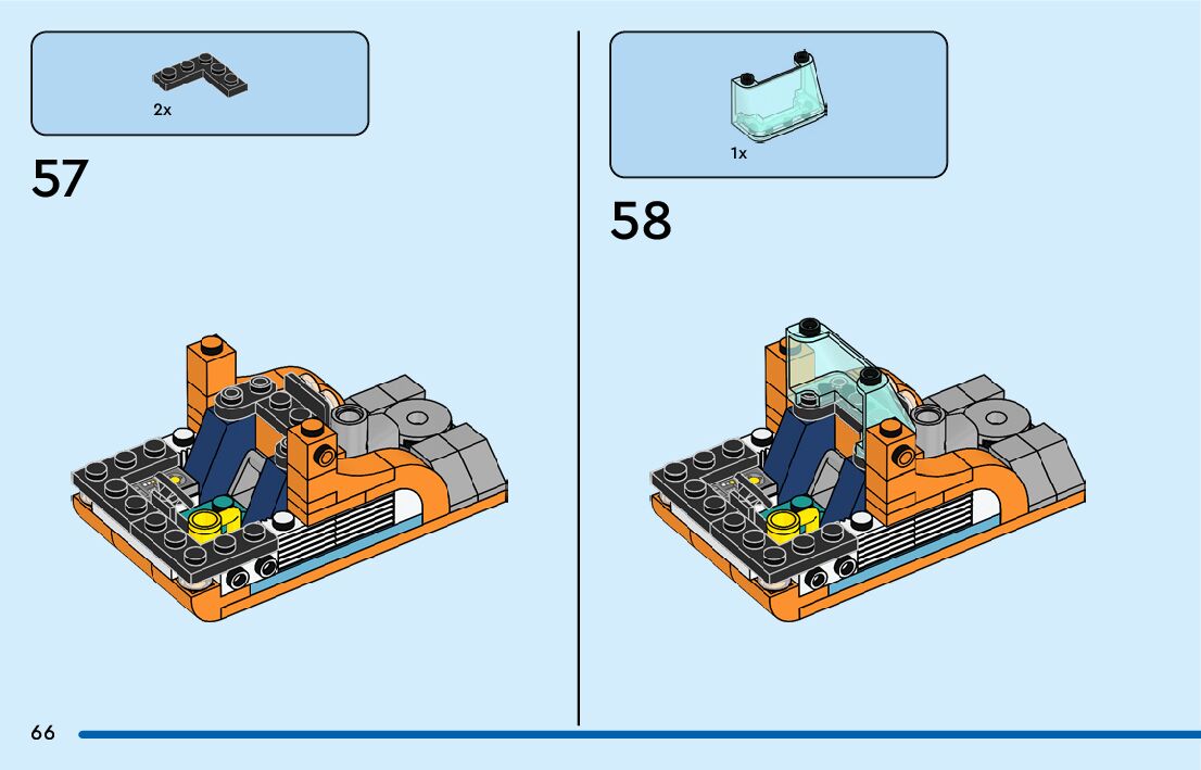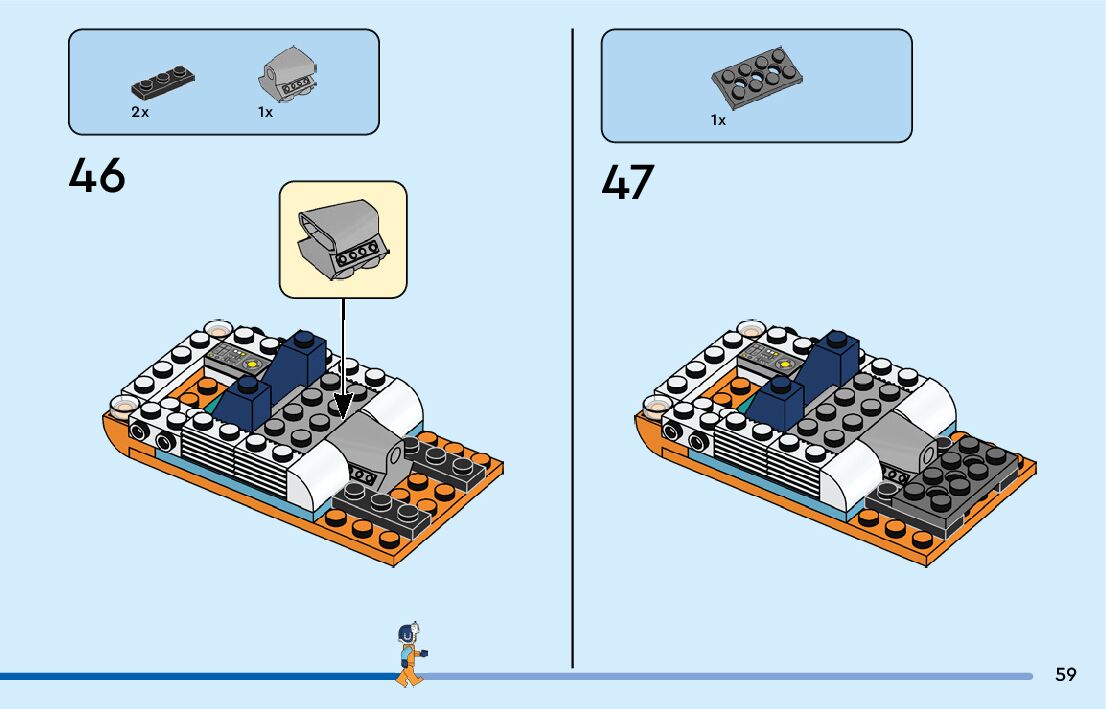 The assembly guide is prepared in a very understandable way for children and adult LEGO enthusiasts. A total of 164 picture galleries are shown, explaining the step-by-step construction stages for 2 different structures.