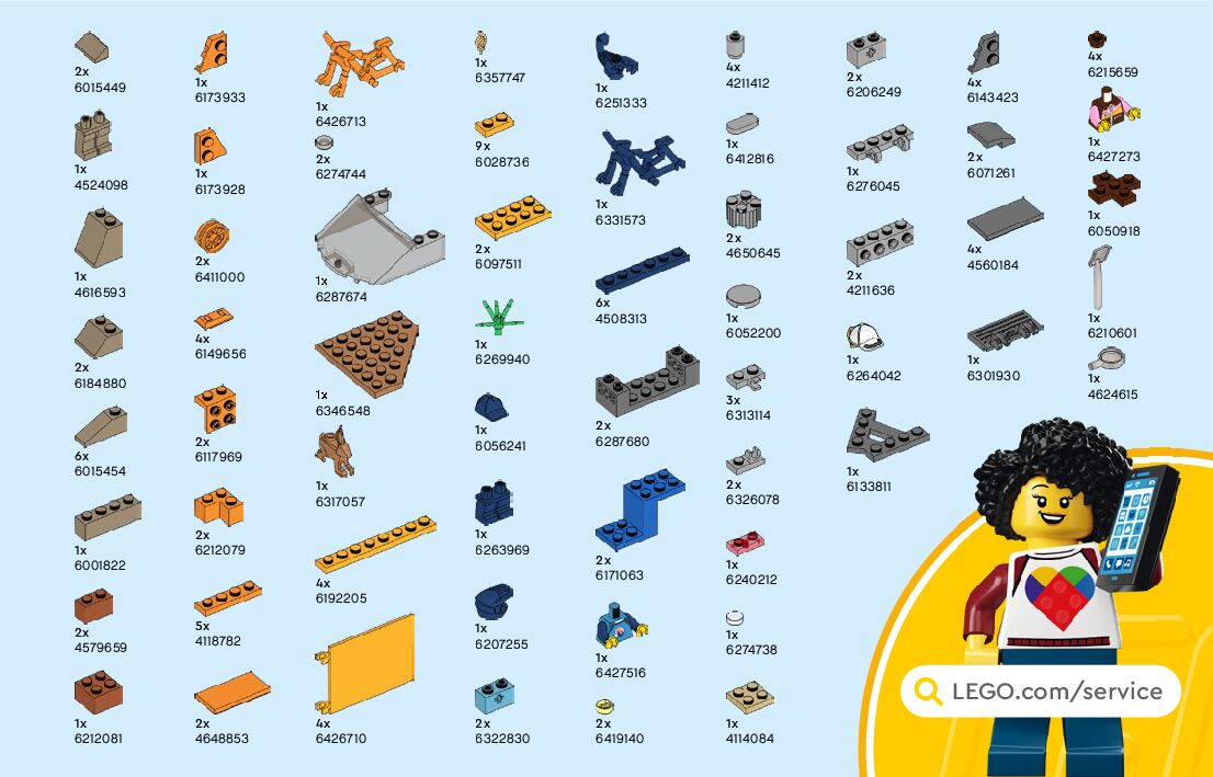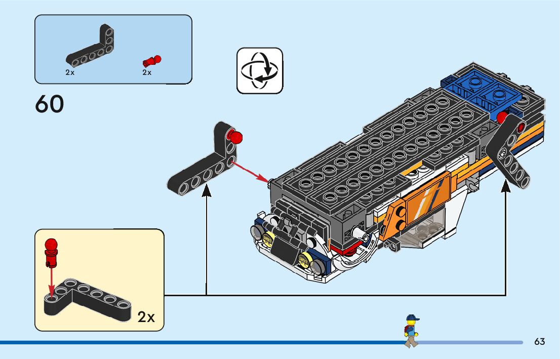 The assembly guide is prepared in a very understandable way for children and adult LEGO enthusiasts. A total of 108 picture galleries are shown, explaining the step-by-step construction stages for 2 different structures.