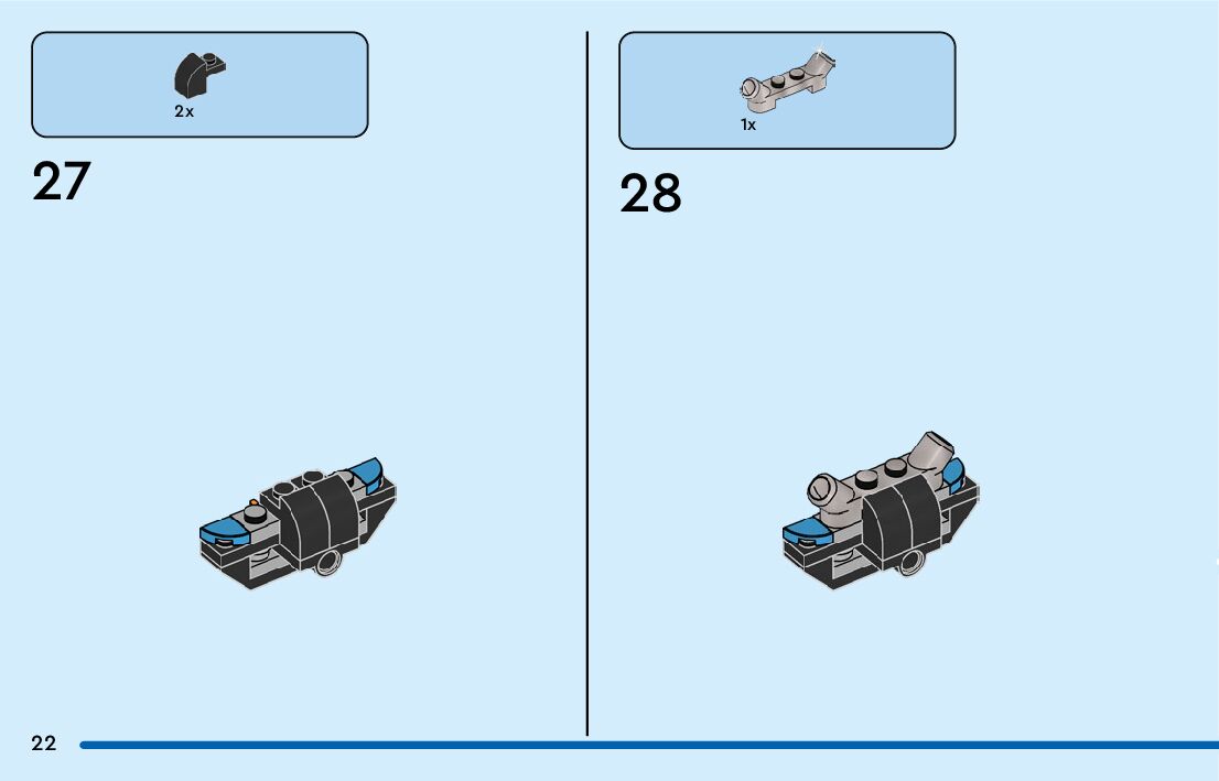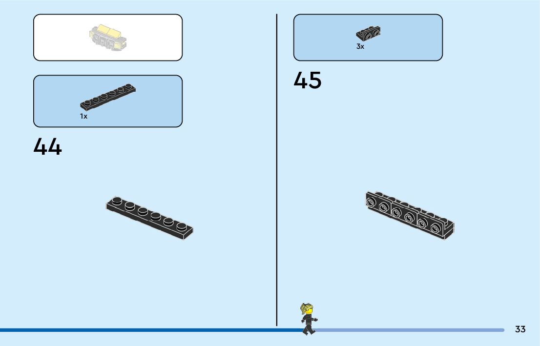 The assembly guide is prepared in a very understandable way for children and adult LEGO enthusiasts. A total of 132 picture galleries are shown, explaining the step-by-step construction stages for 3 different structures.