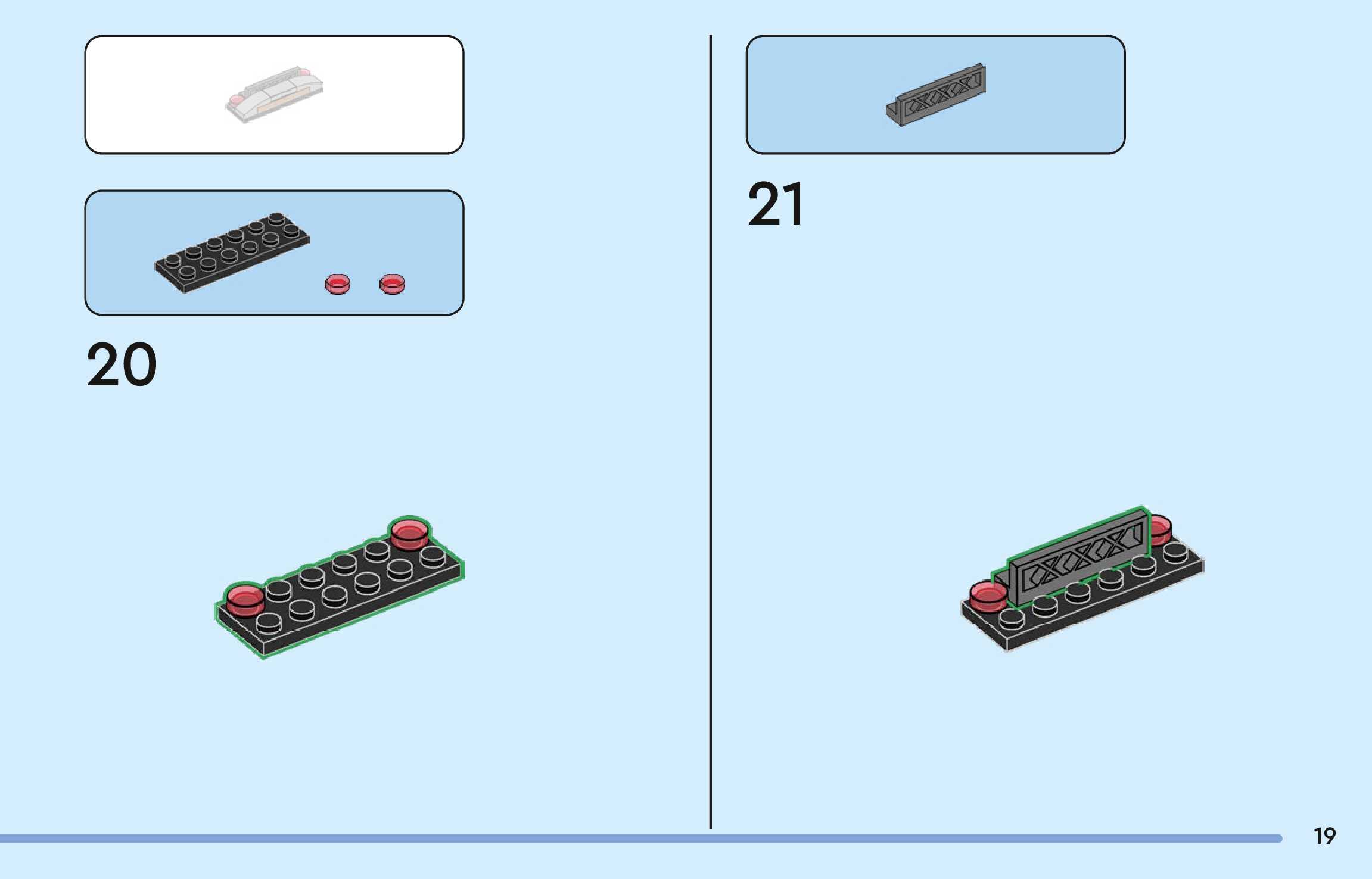 The assembly guide is prepared in a very understandable way for children and adult LEGO enthusiasts. A total of 100 picture galleries are shown, explaining the step-by-step construction stages for 2 different structures.