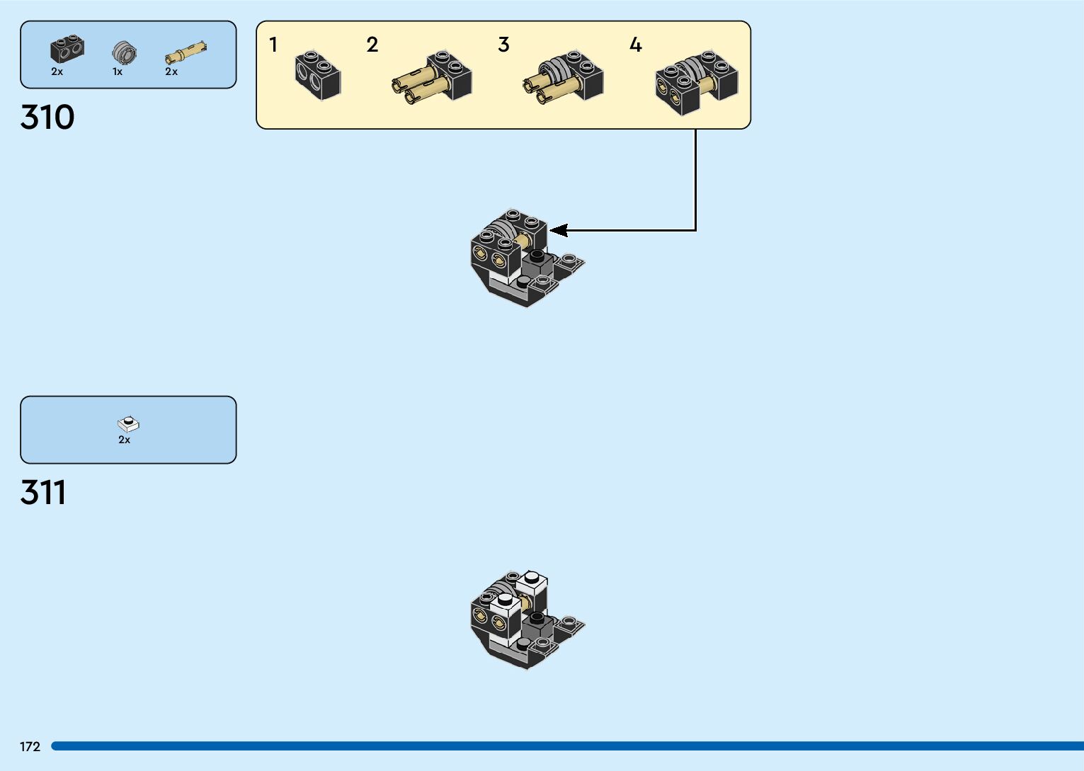 The assembly guide is prepared in a very understandable way for children and adult LEGO enthusiasts. A total of 200 picture galleries are shown, explaining the step-by-step construction stages for 1 different structures.