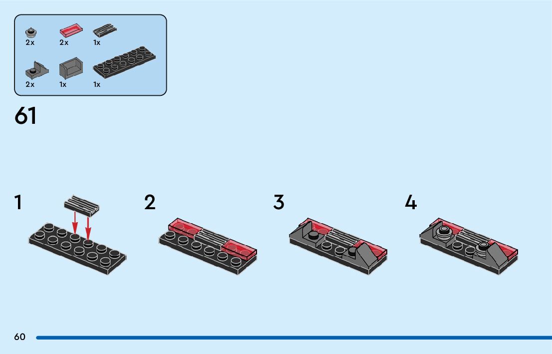 The assembly guide is prepared in a very understandable way for children and adult LEGO enthusiasts. A total of 80 picture galleries are shown, explaining the step-by-step construction stages for 1 different structures.