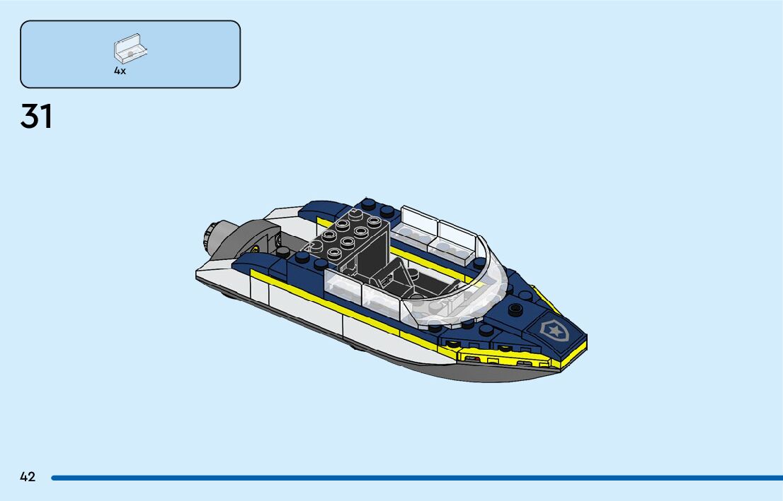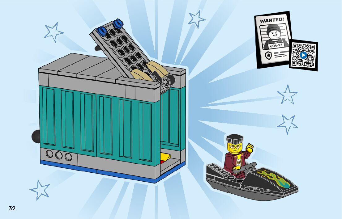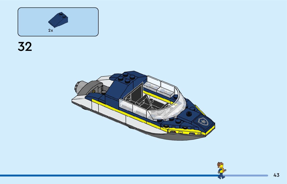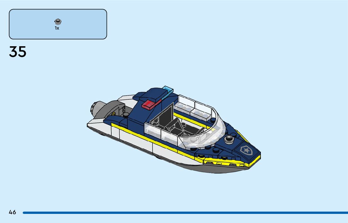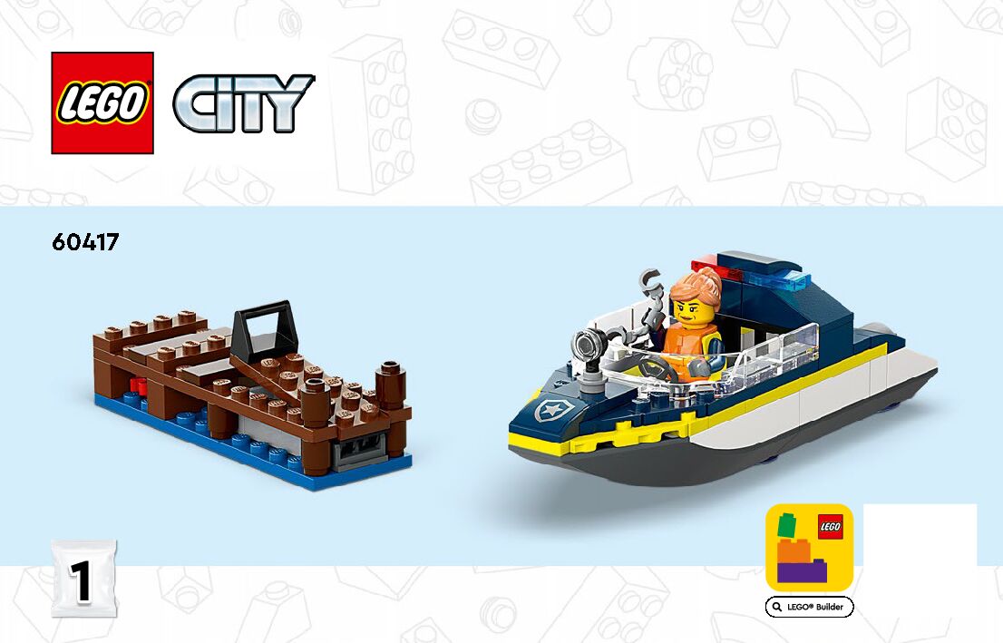 On this page you can find the original construction manual for the LEGO 60417 set. With the assembly manual you can easily learn how to build the 60417 Police Speedboat and Crooks' Hideout step by step. The set was released in 2024.