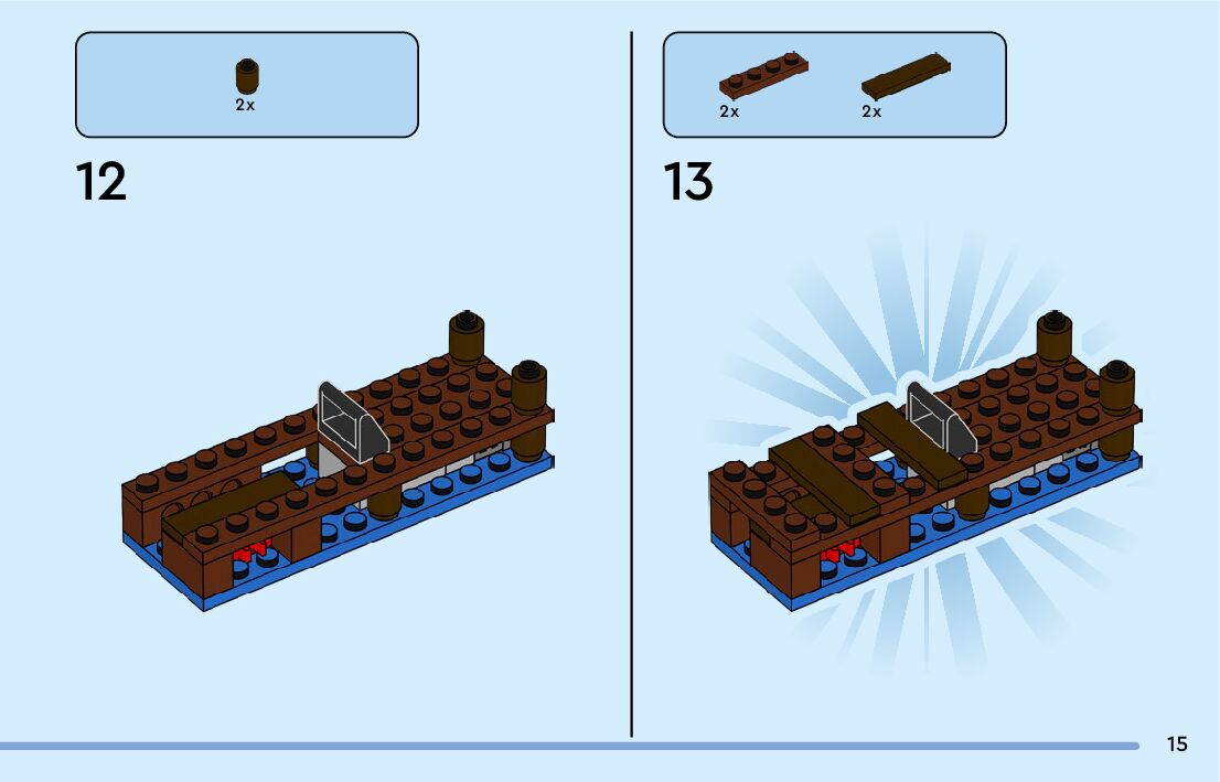 The assembly guide is prepared in a very understandable way for children and adult LEGO enthusiasts. A total of 152 picture galleries are shown, explaining the step-by-step construction stages for 3 different structures.