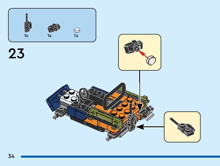 The assembly guide is prepared in a very understandable way for children and adult LEGO enthusiasts. A total of 44 picture galleries are shown, explaining the step-by-step construction stages for 1 different structures.