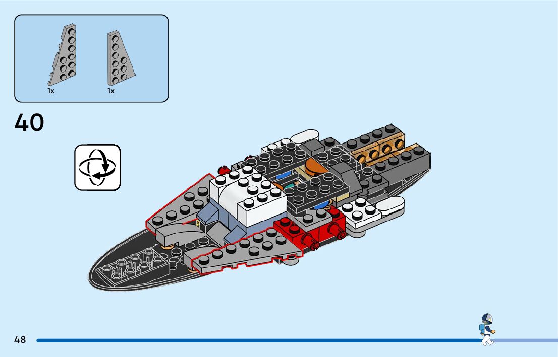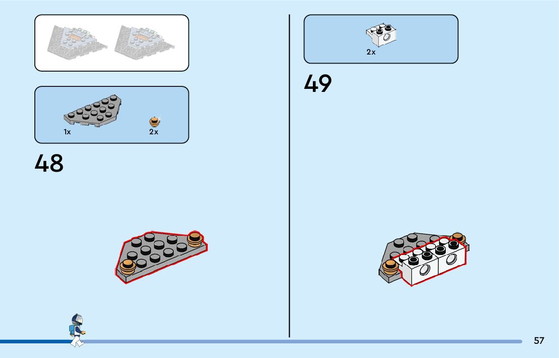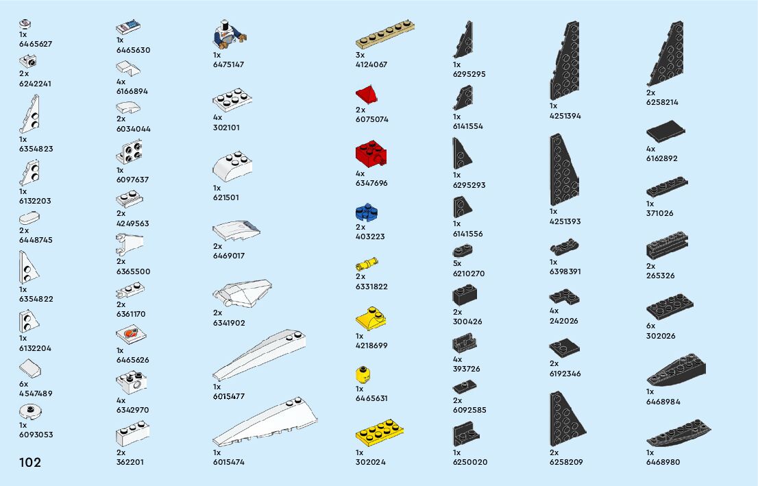 The assembly guide is prepared in a very understandable way for children and adult LEGO enthusiasts. A total of 104 picture galleries are shown, explaining the step-by-step construction stages for 1 different structures.