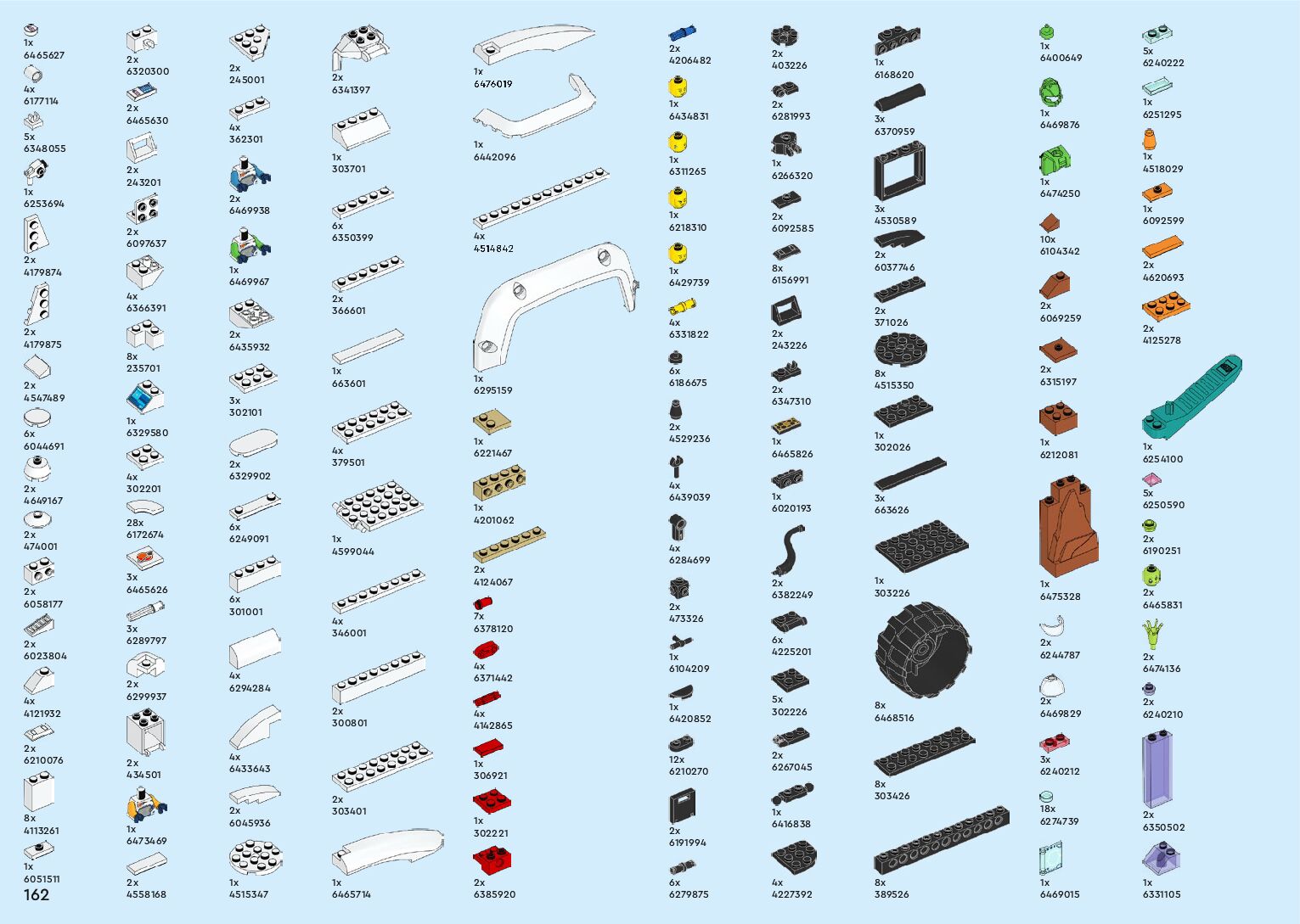 The assembly guide is prepared in a very understandable way for children and adult LEGO enthusiasts. A total of 164 picture galleries are shown, explaining the step-by-step construction stages for 1 different structures.