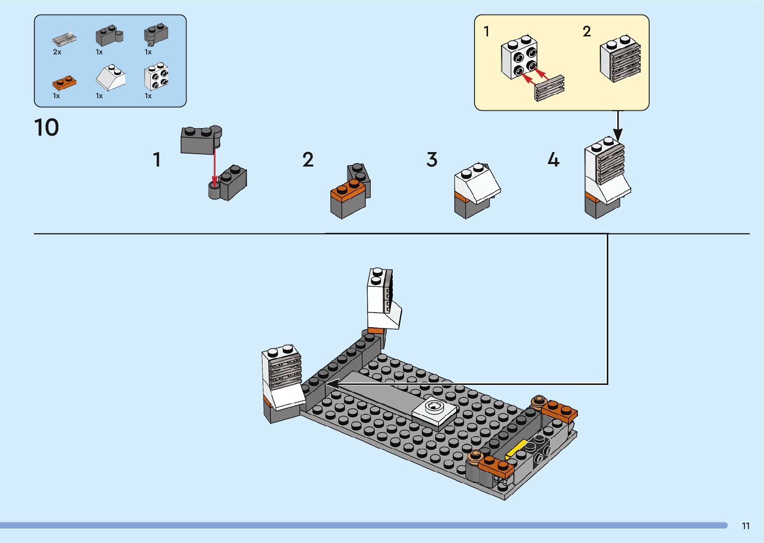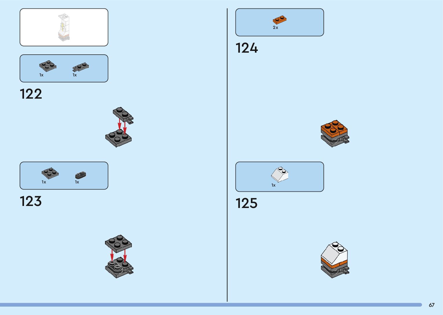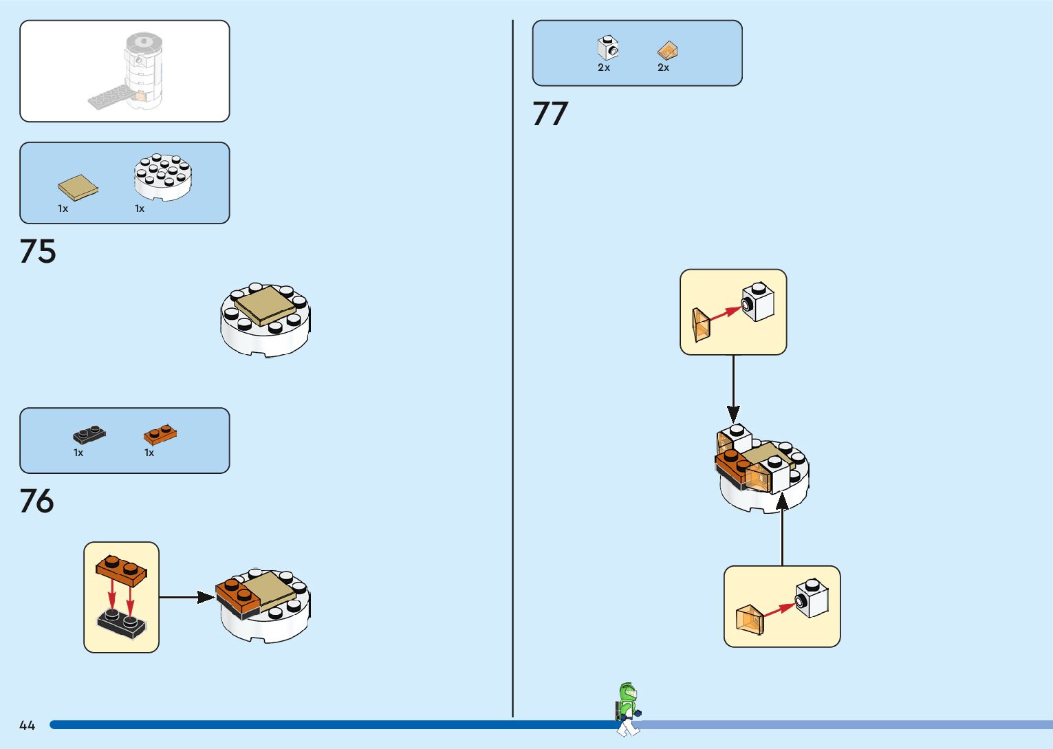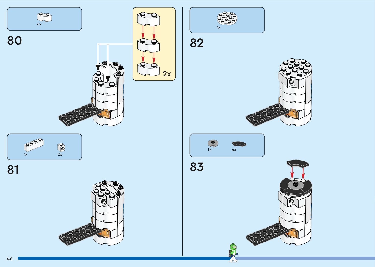 The assembly guide is prepared in a very understandable way for children and adult LEGO enthusiasts. A total of 320 picture galleries are shown, explaining the step-by-step construction stages for 4 different structures.