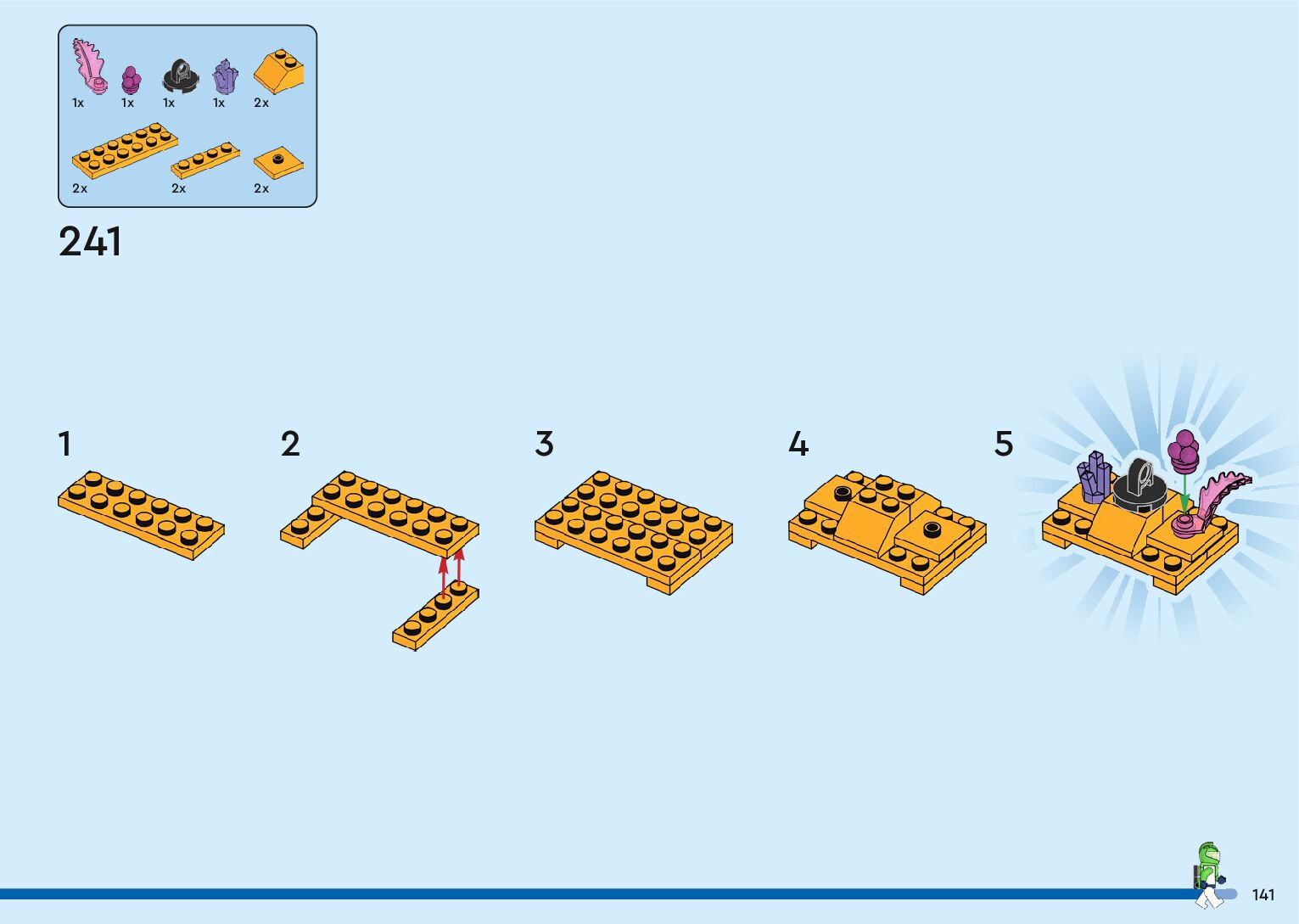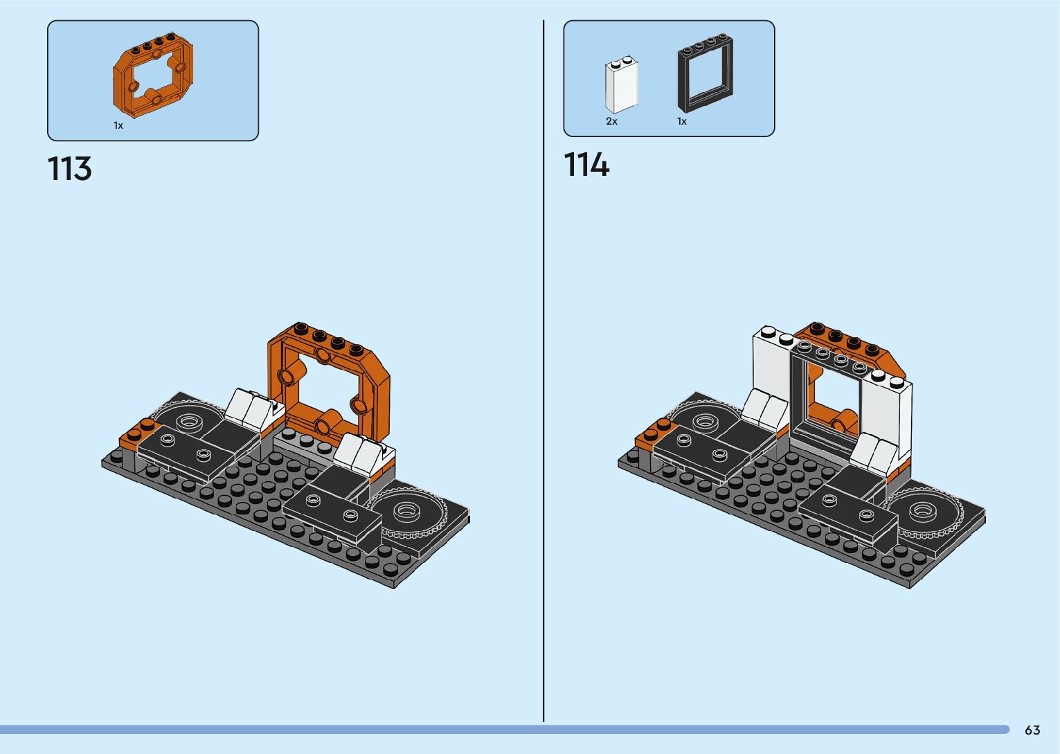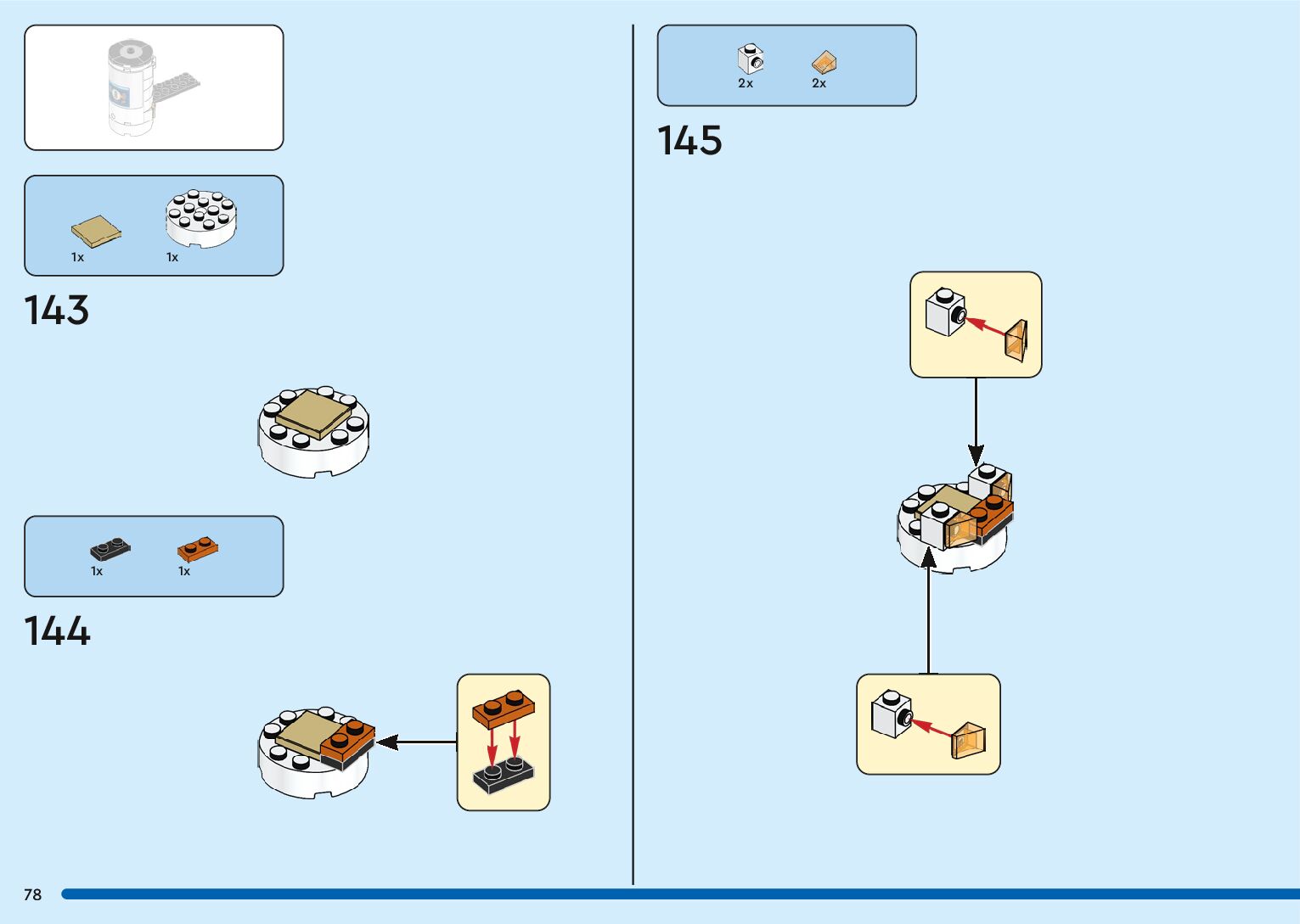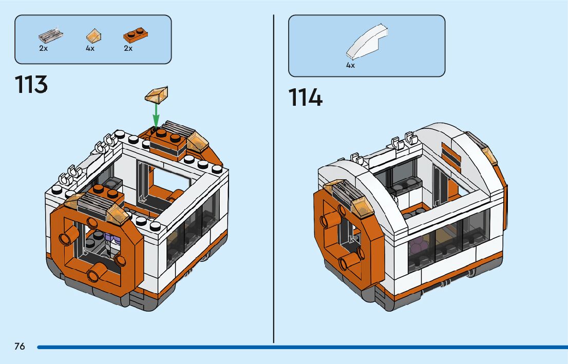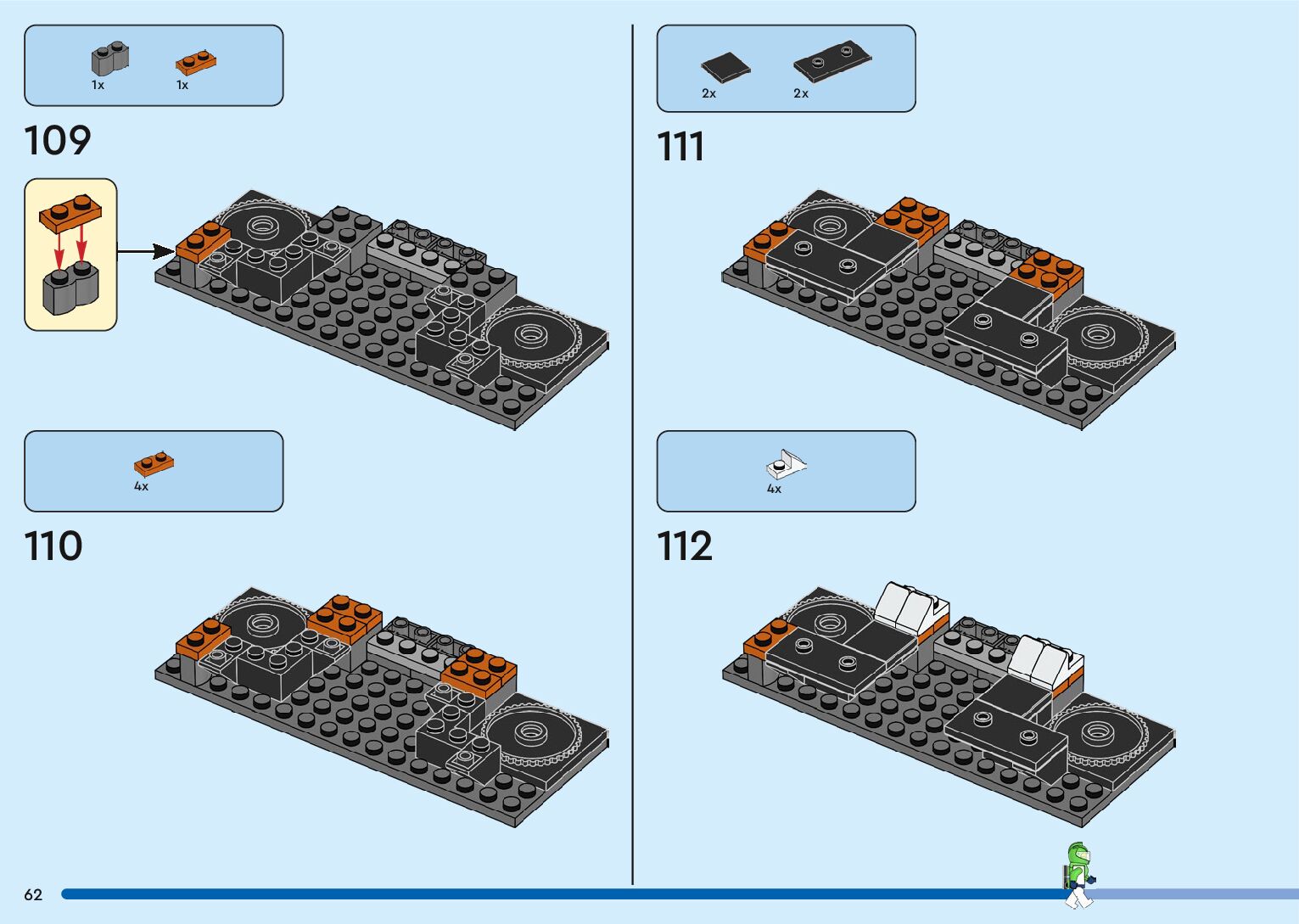 The assembly guide is prepared in a very understandable way for children and adult LEGO enthusiasts. A total of 320 picture galleries are shown, explaining the step-by-step construction stages for 4 different structures.