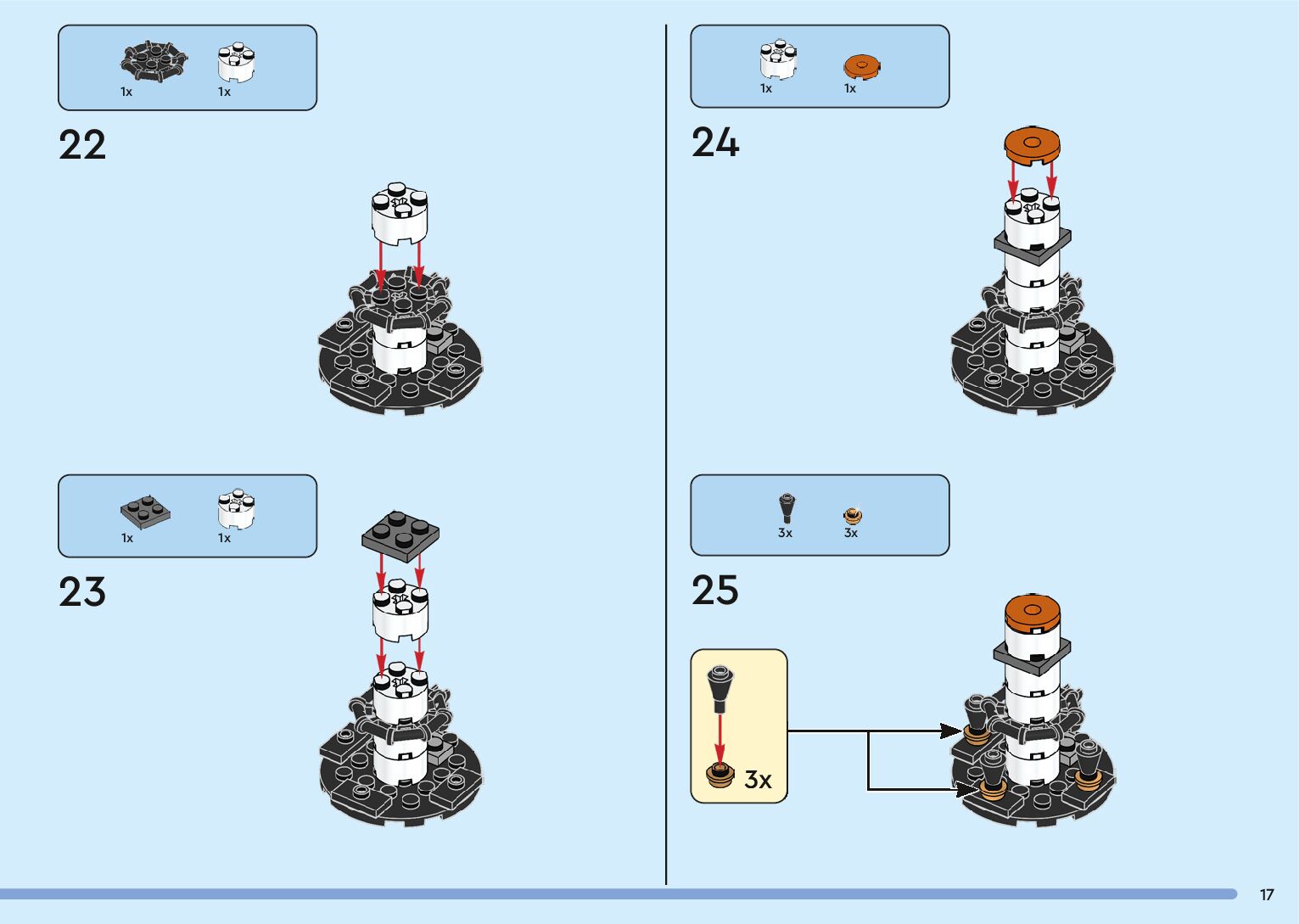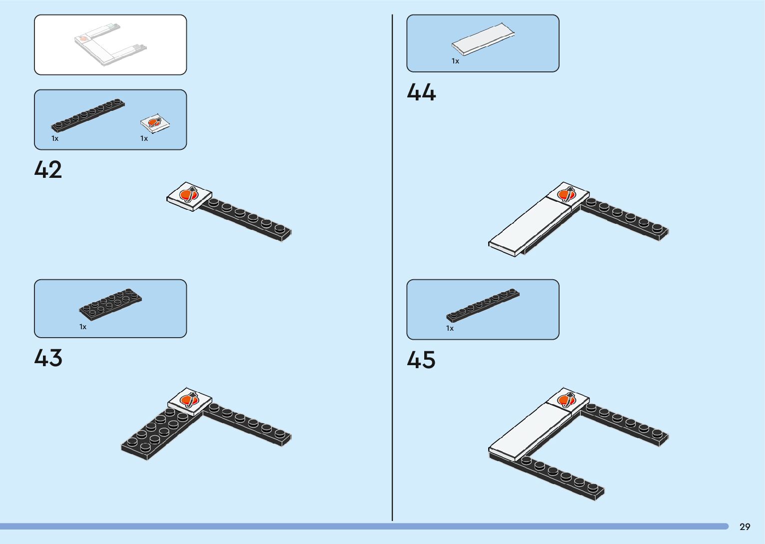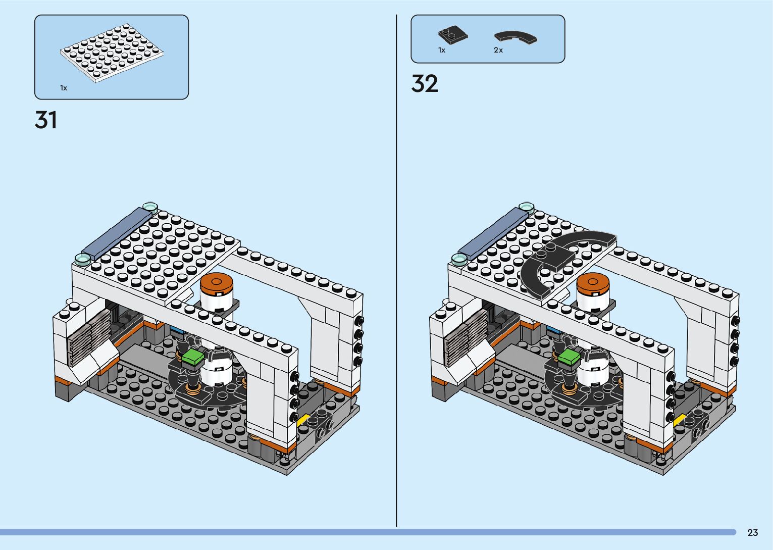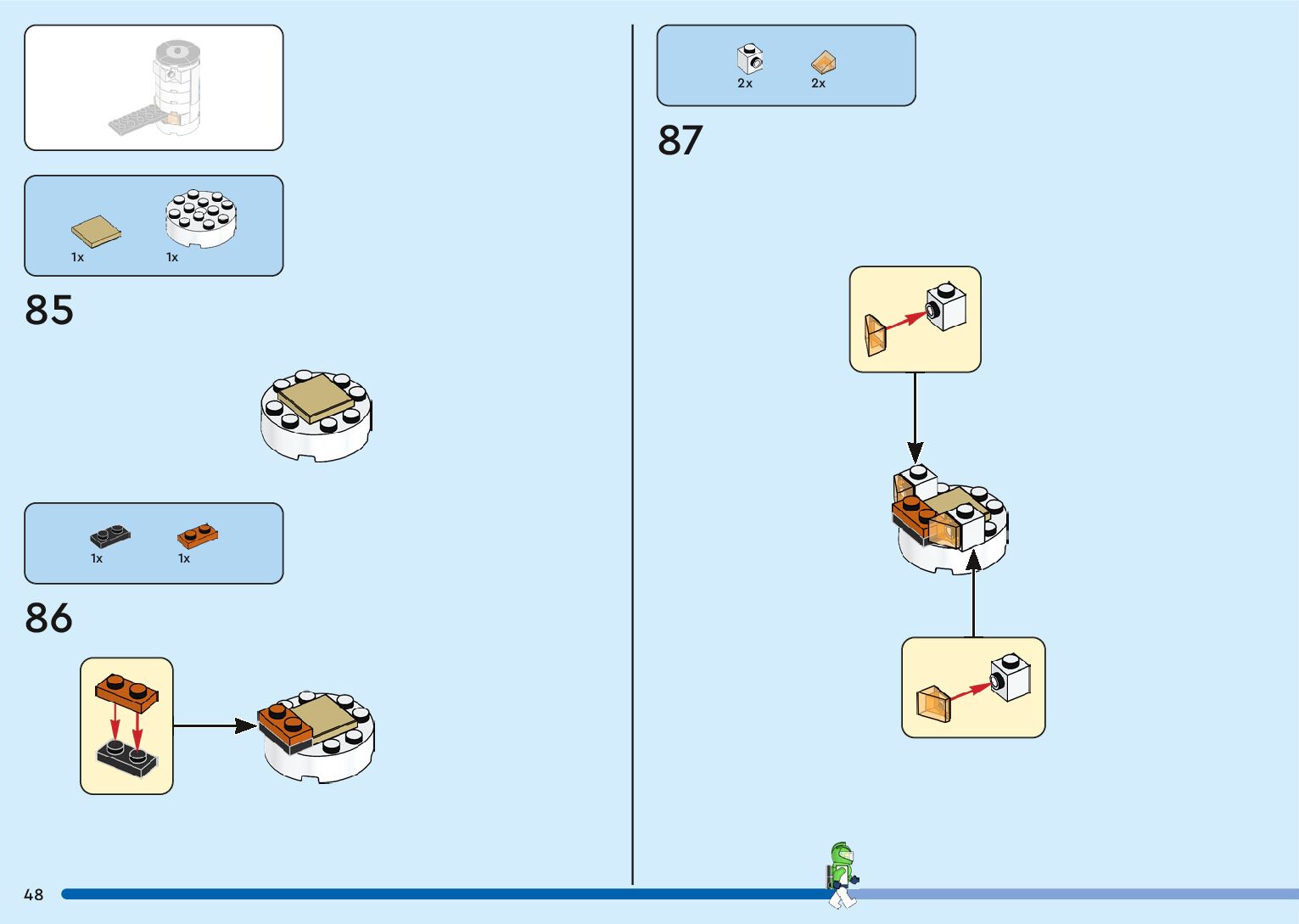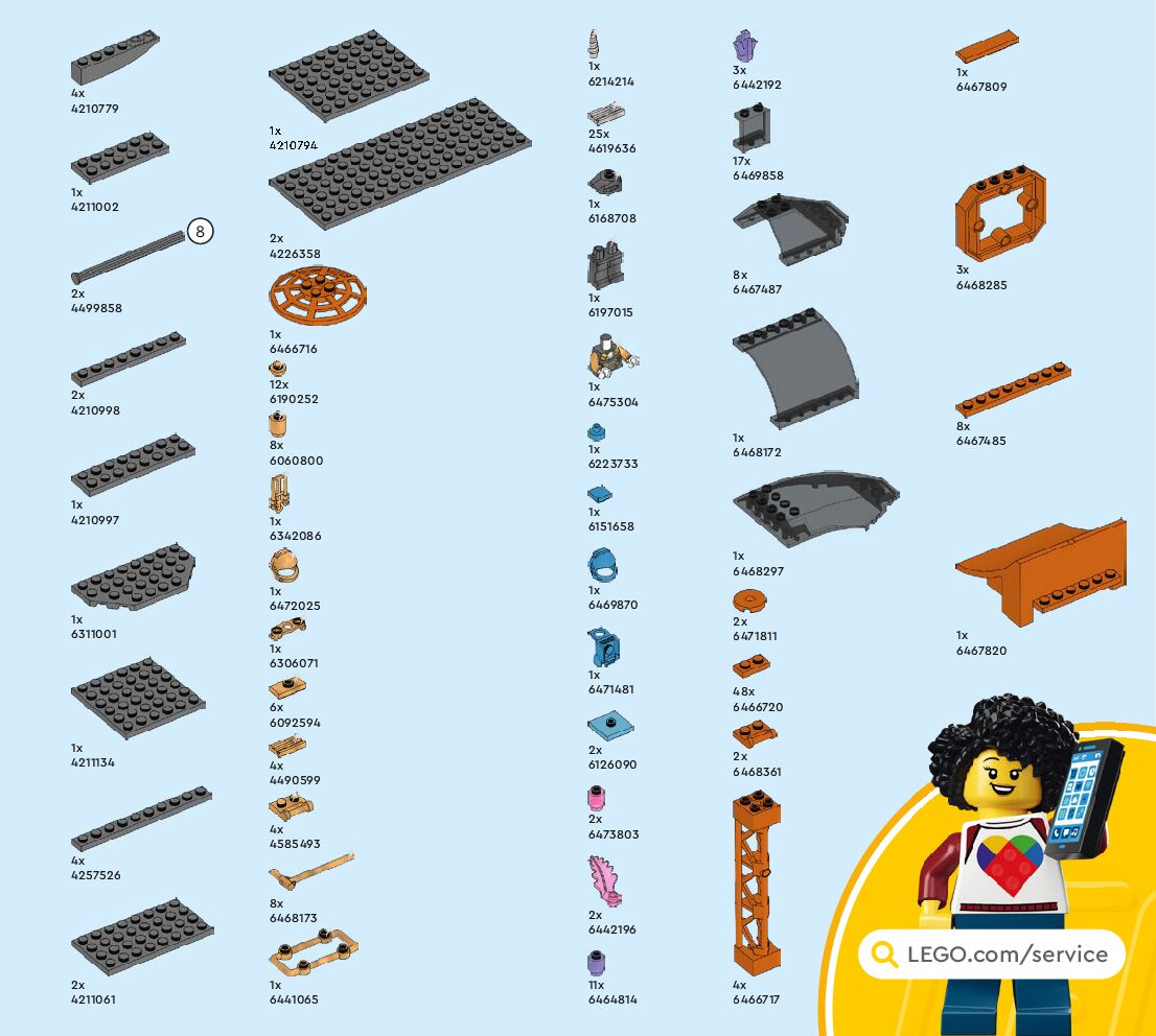 The assembly guide is prepared in a very understandable way for children and adult LEGO enthusiasts. A total of 320 picture galleries are shown, explaining the step-by-step construction stages for 4 different structures.