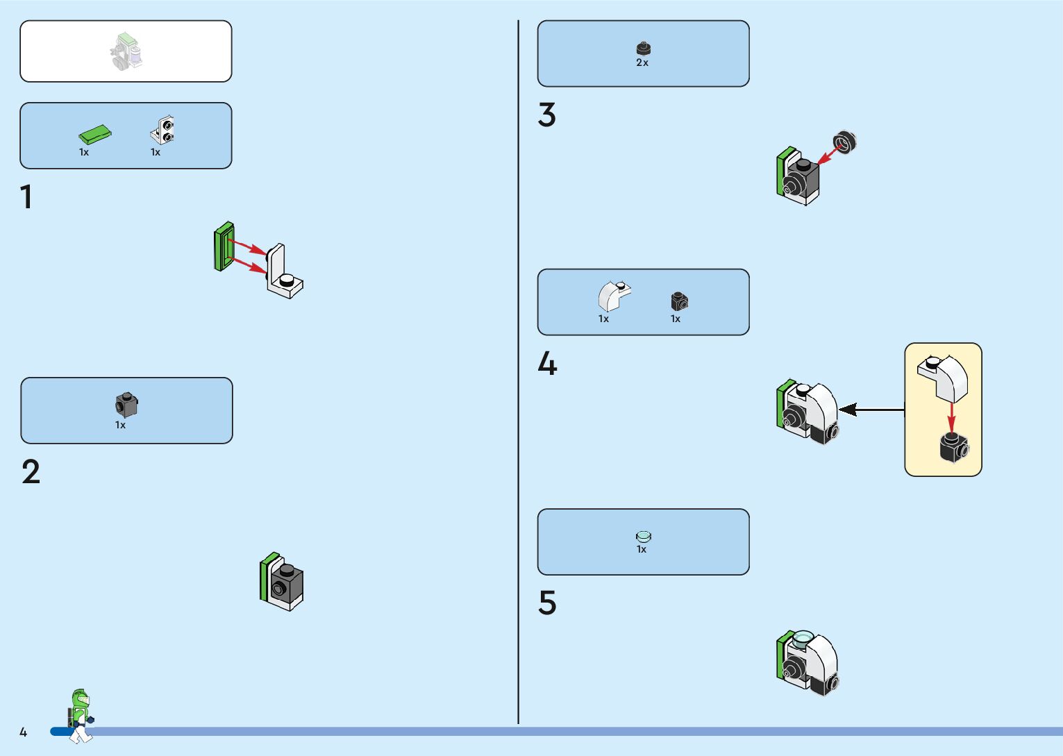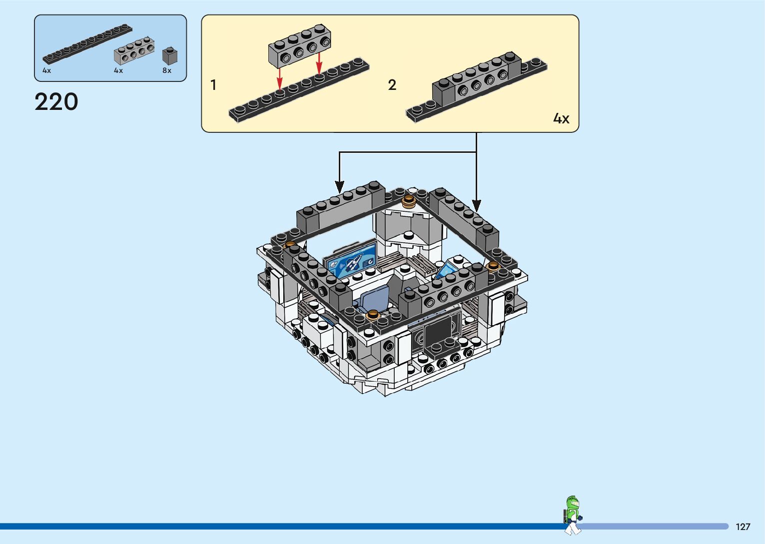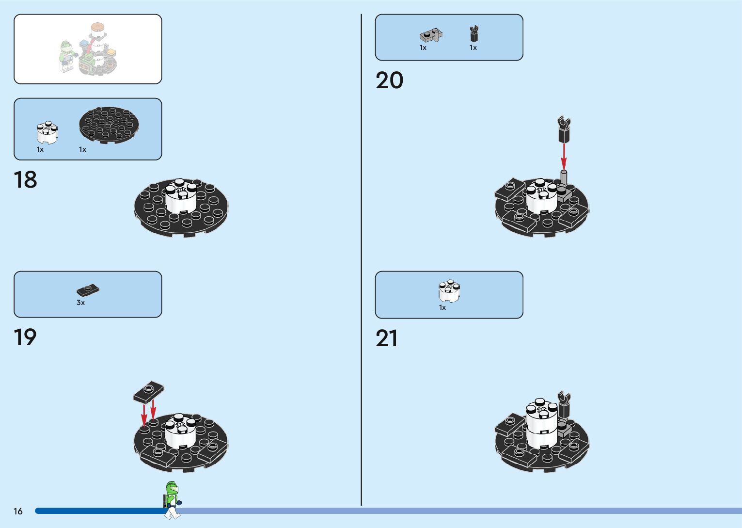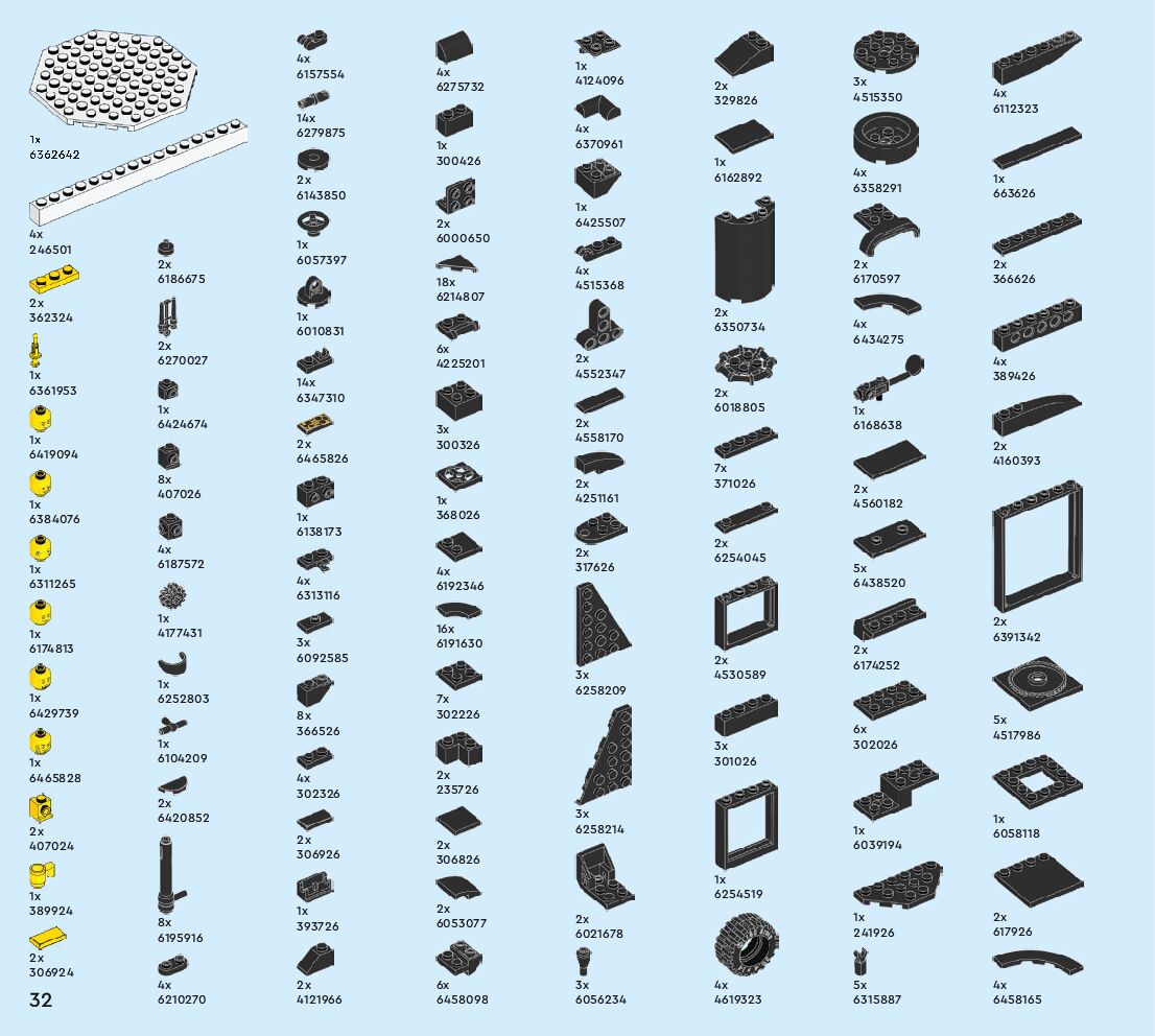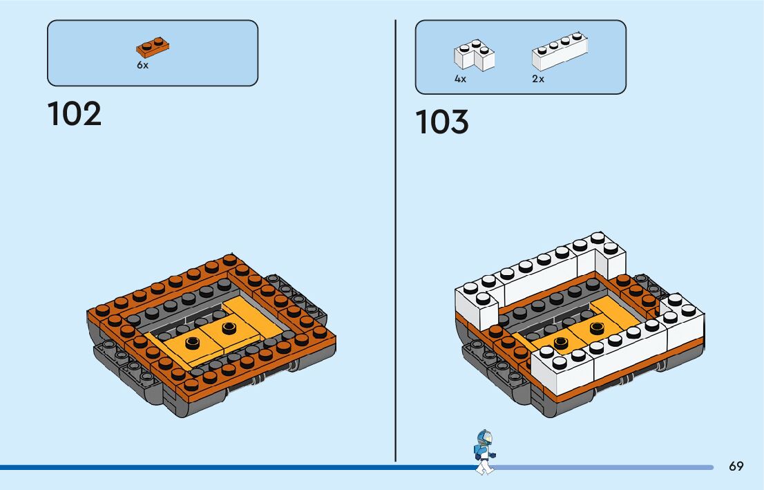 The assembly guide is prepared in a very understandable way for children and adult LEGO enthusiasts. A total of 320 picture galleries are shown, explaining the step-by-step construction stages for 4 different structures.