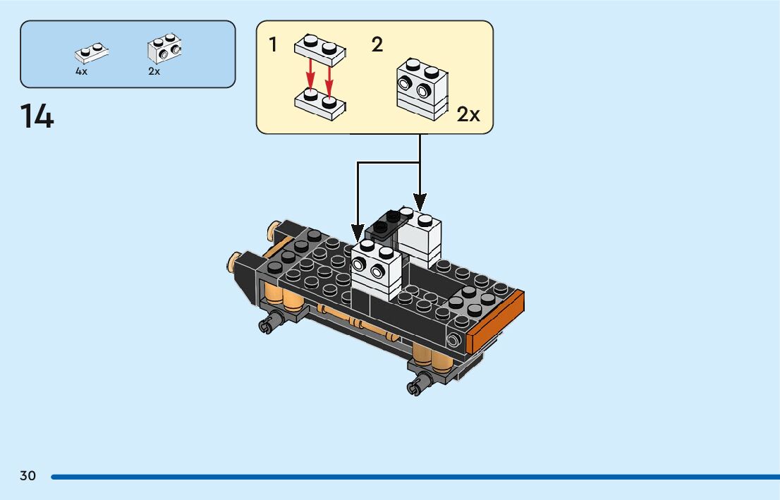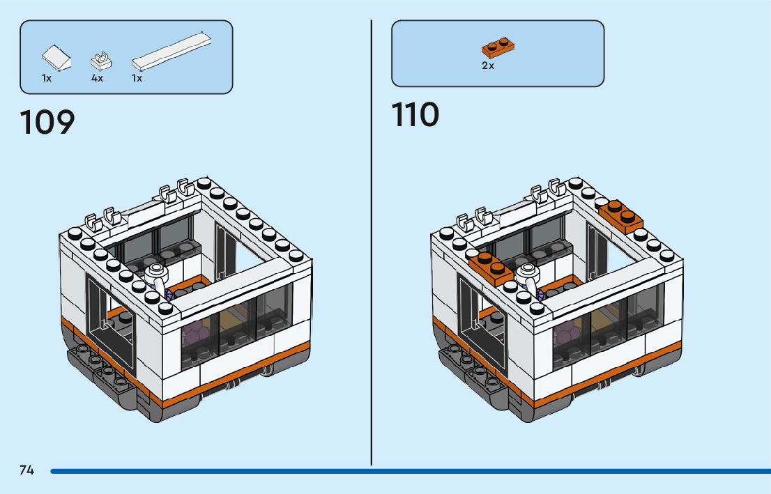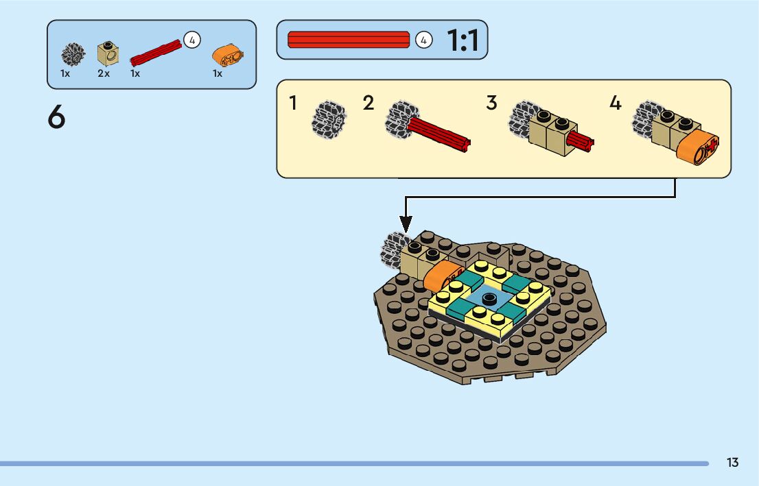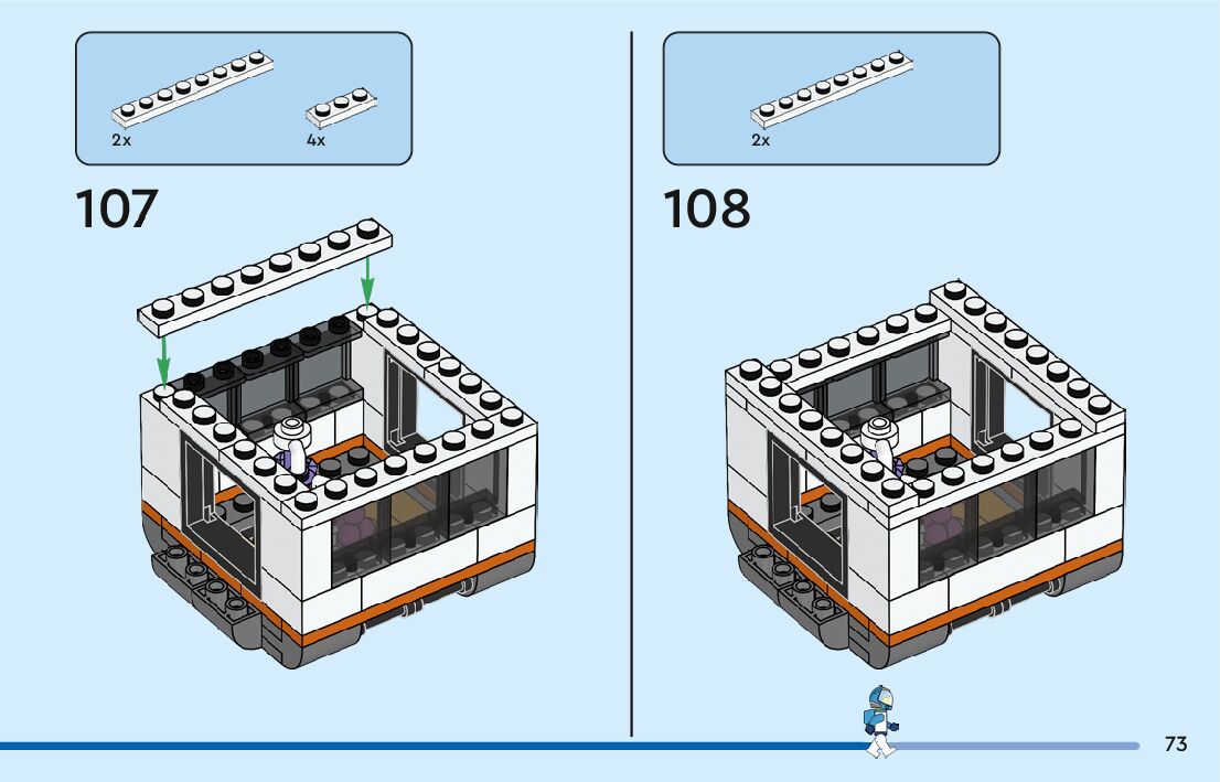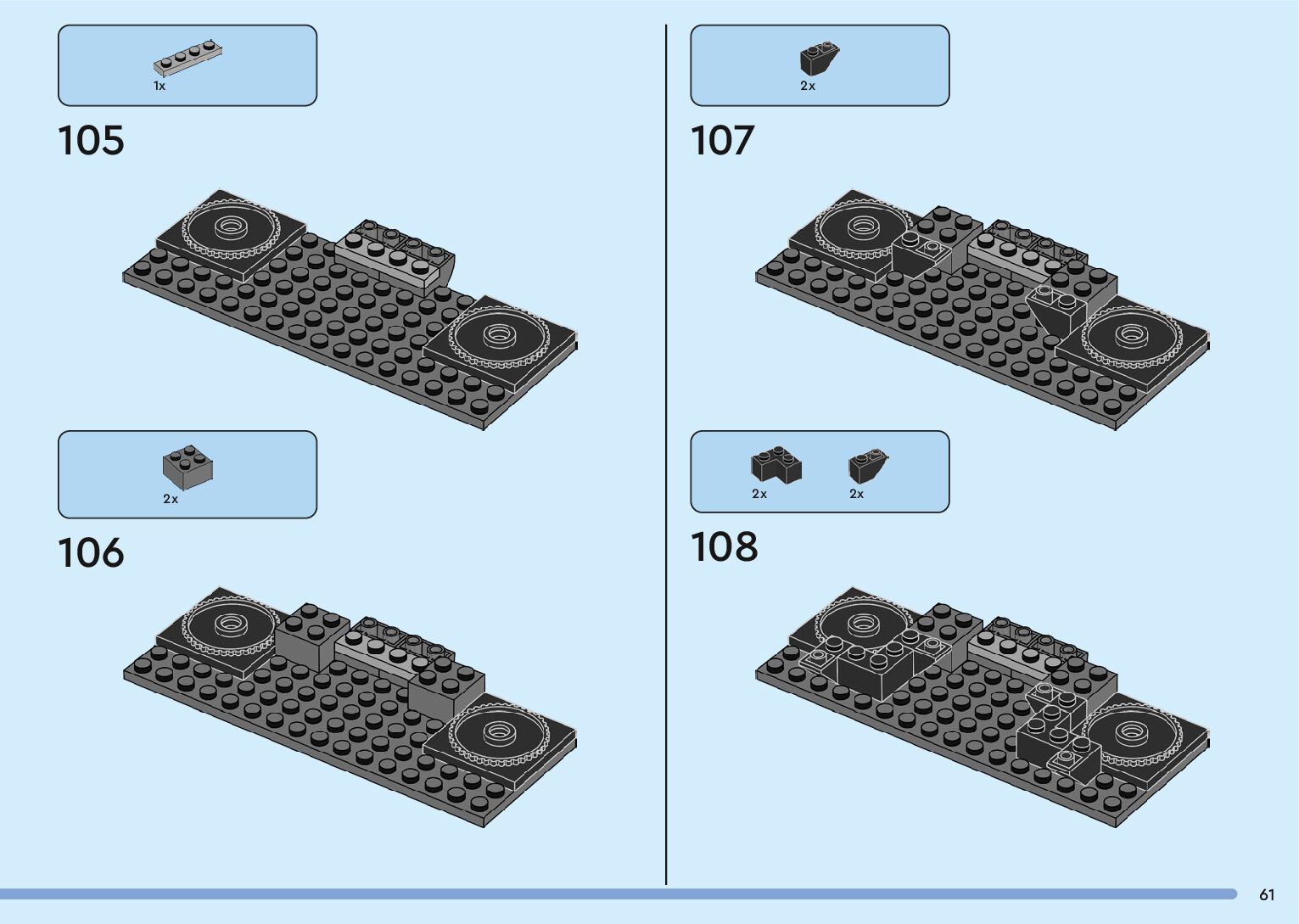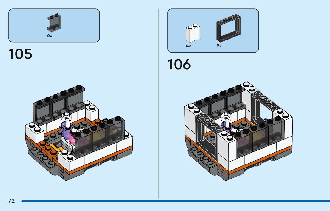 The assembly guide is prepared in a very understandable way for children and adult LEGO enthusiasts. A total of 320 picture galleries are shown, explaining the step-by-step construction stages for 4 different structures.