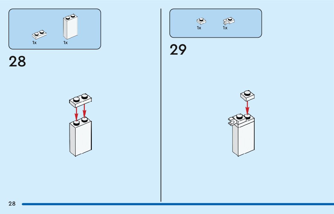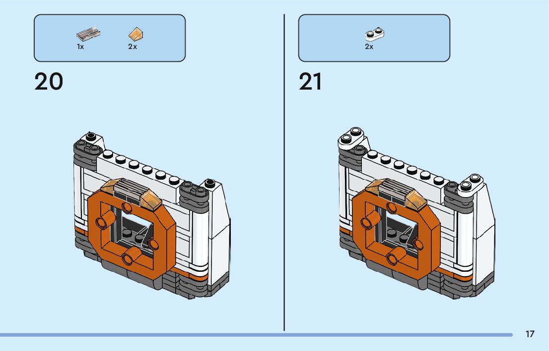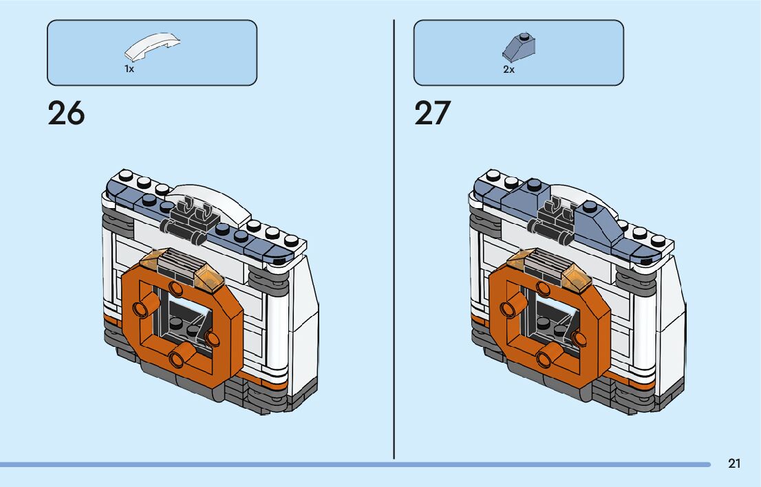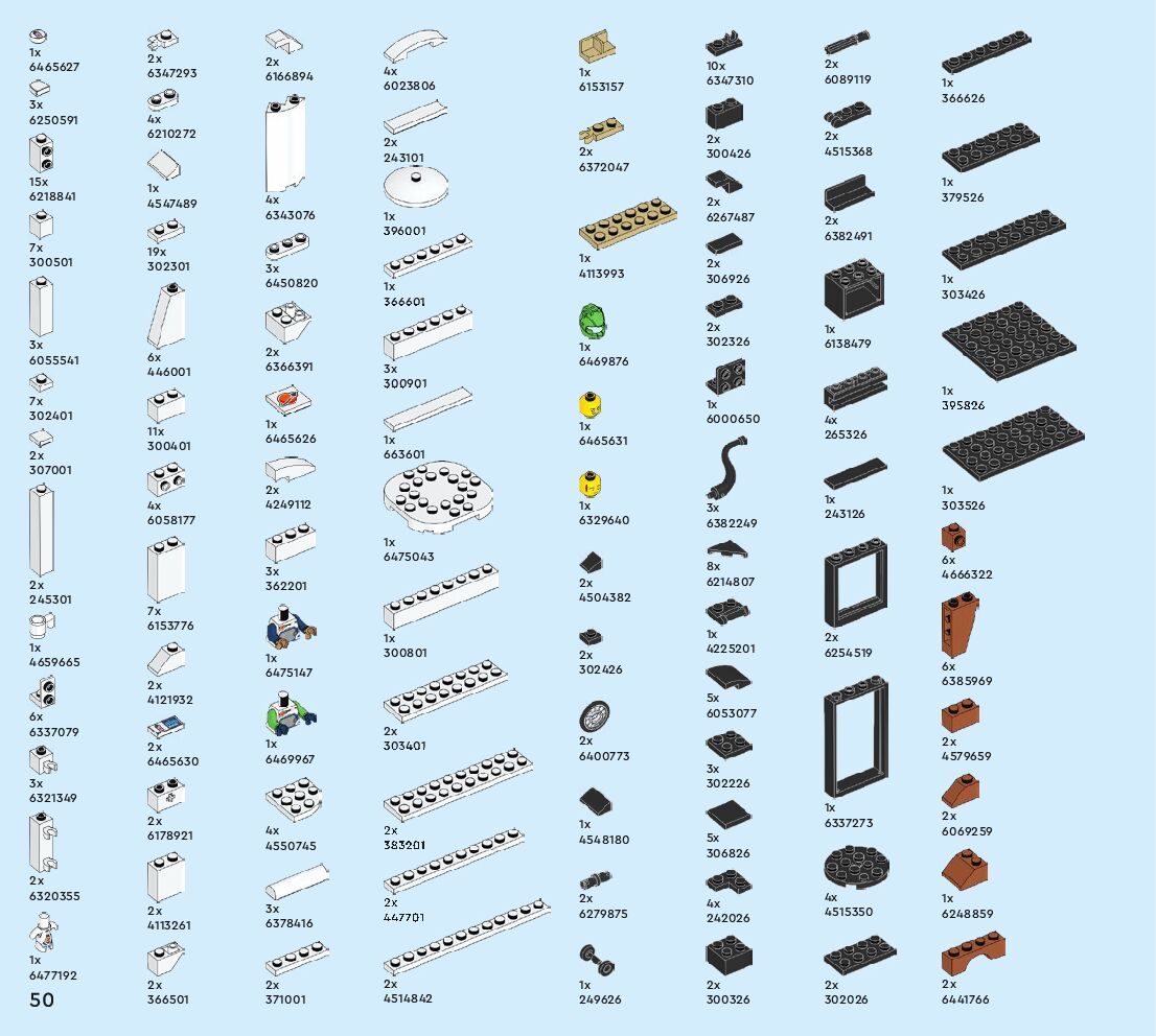 The assembly guide is prepared in a very understandable way for children and adult LEGO enthusiasts. A total of 208 picture galleries are shown, explaining the step-by-step construction stages for 4 different structures.