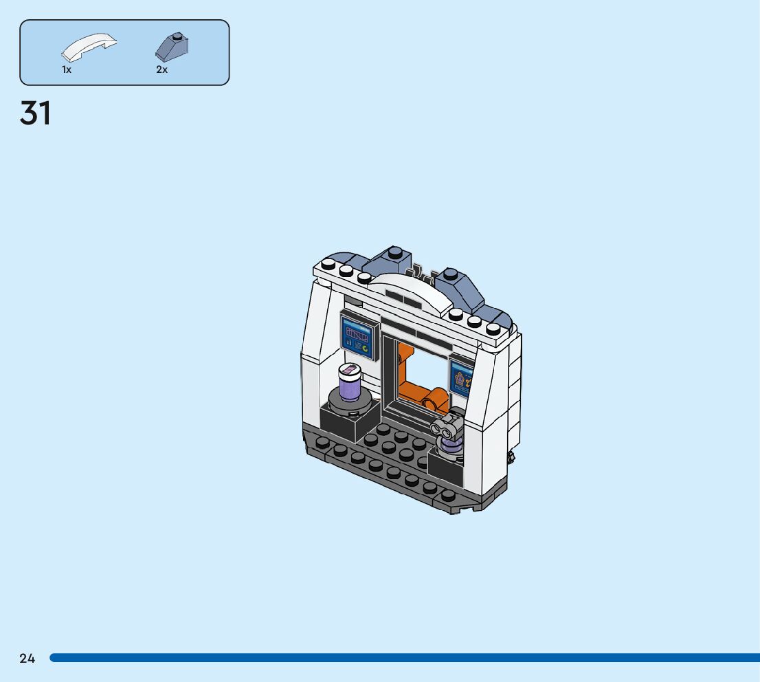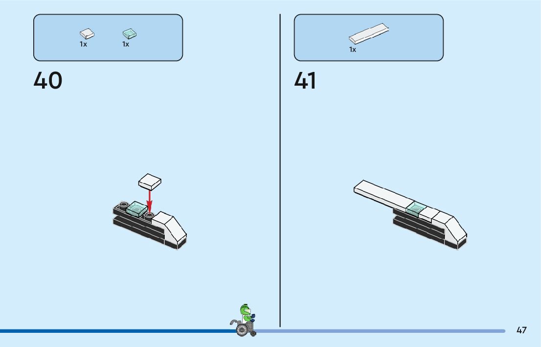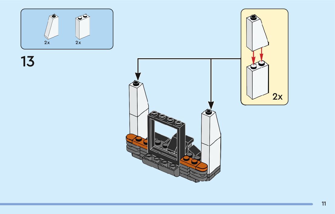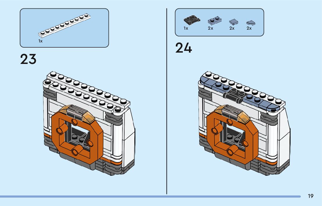 The assembly guide is prepared in a very understandable way for children and adult LEGO enthusiasts. A total of 208 picture galleries are shown, explaining the step-by-step construction stages for 4 different structures.