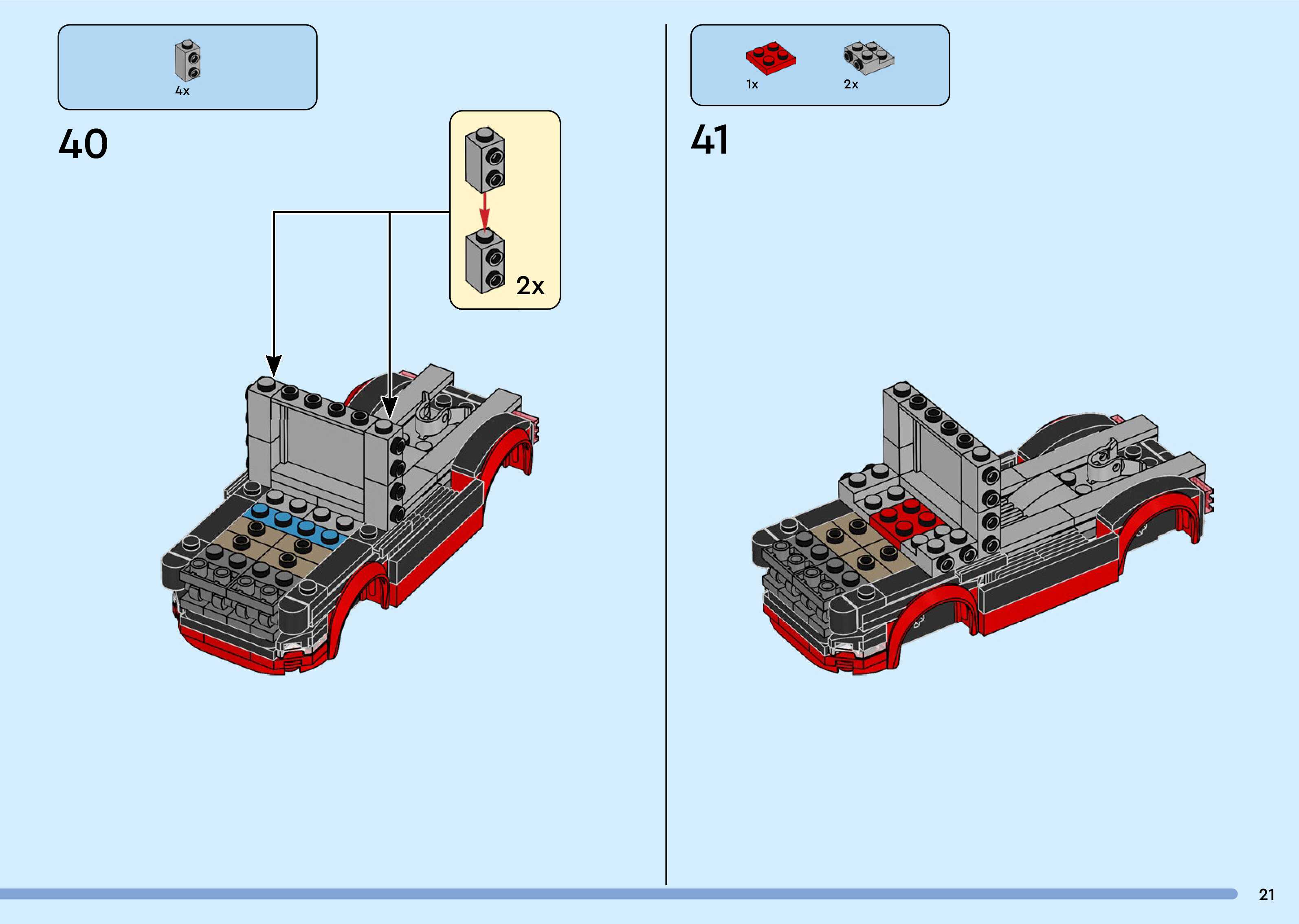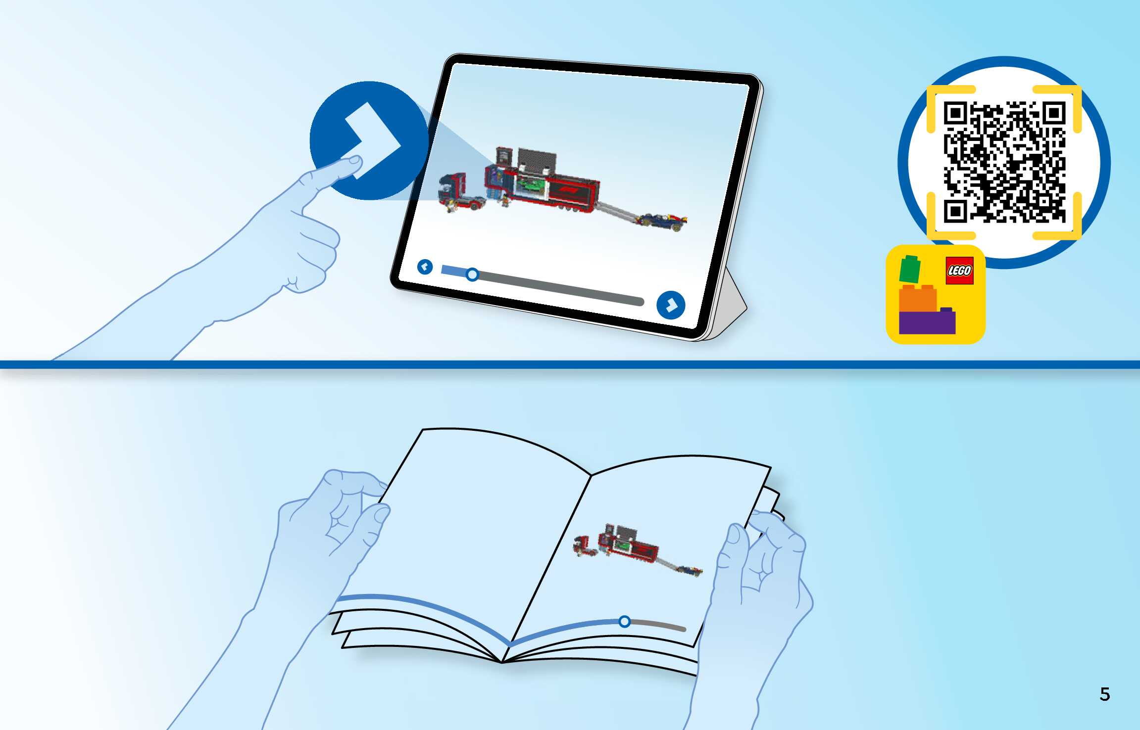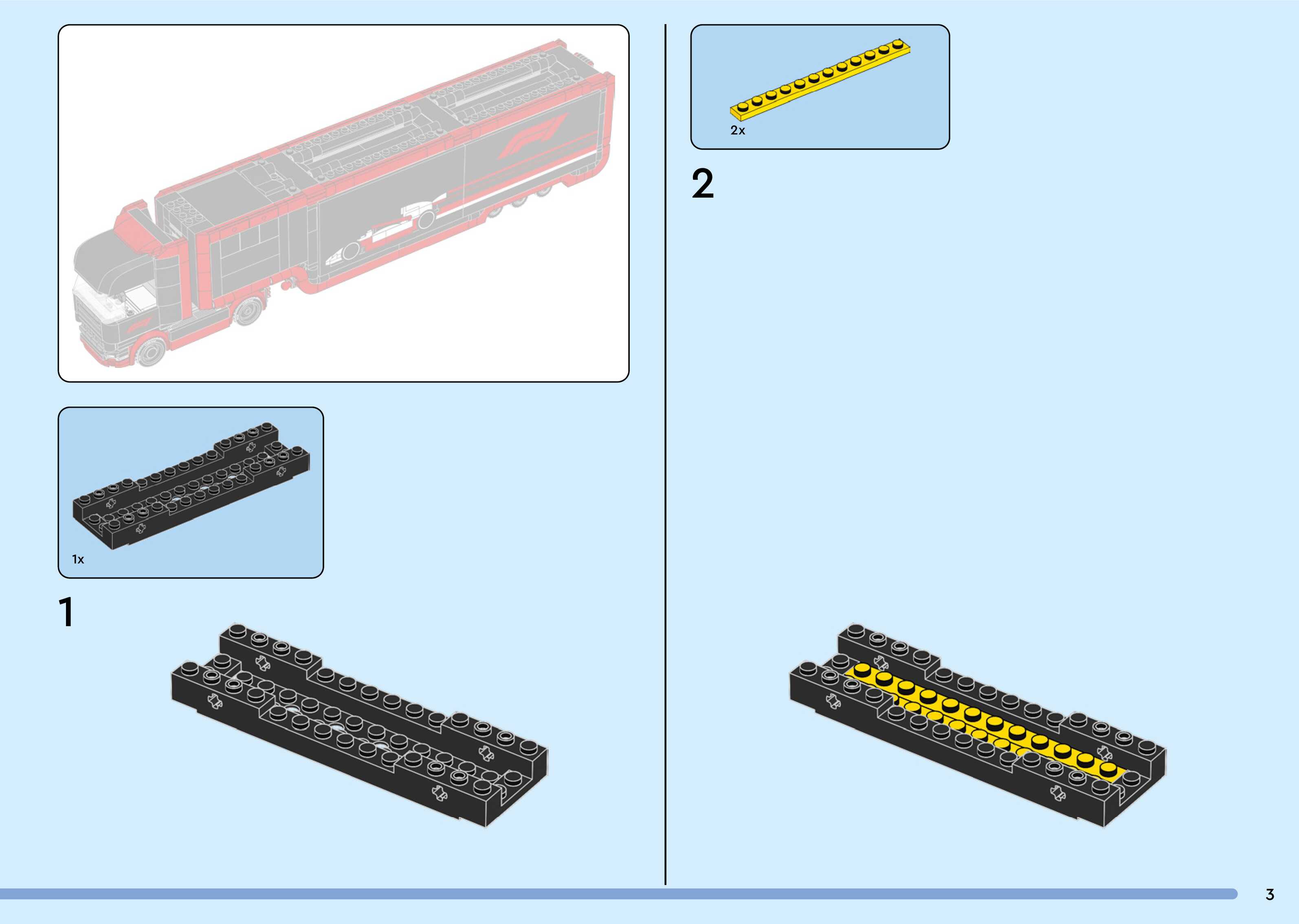 On this page you can find the original construction manual for the LEGO 60445 set. With the assembly manual you can easily learn how to build the F1® Truck with RB20 & AMR24 F1® Cars step by step. The set was released in 2025.