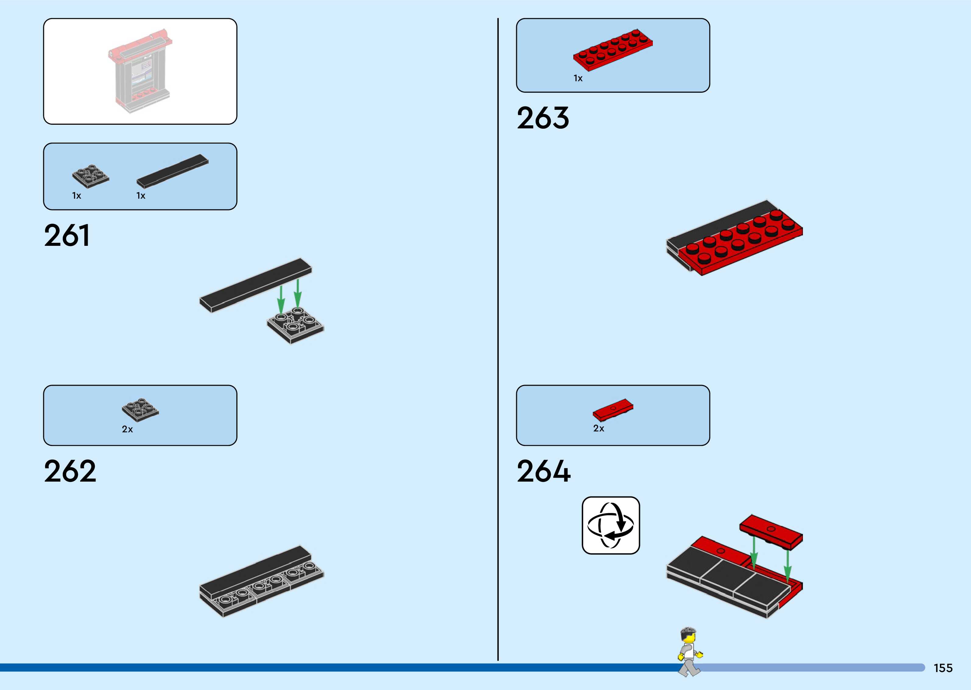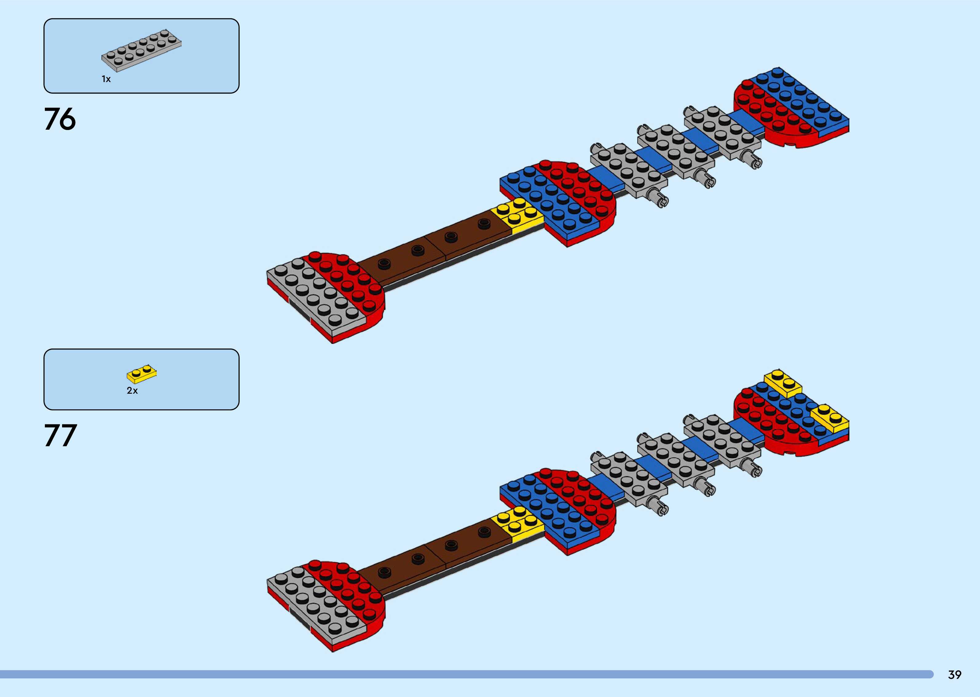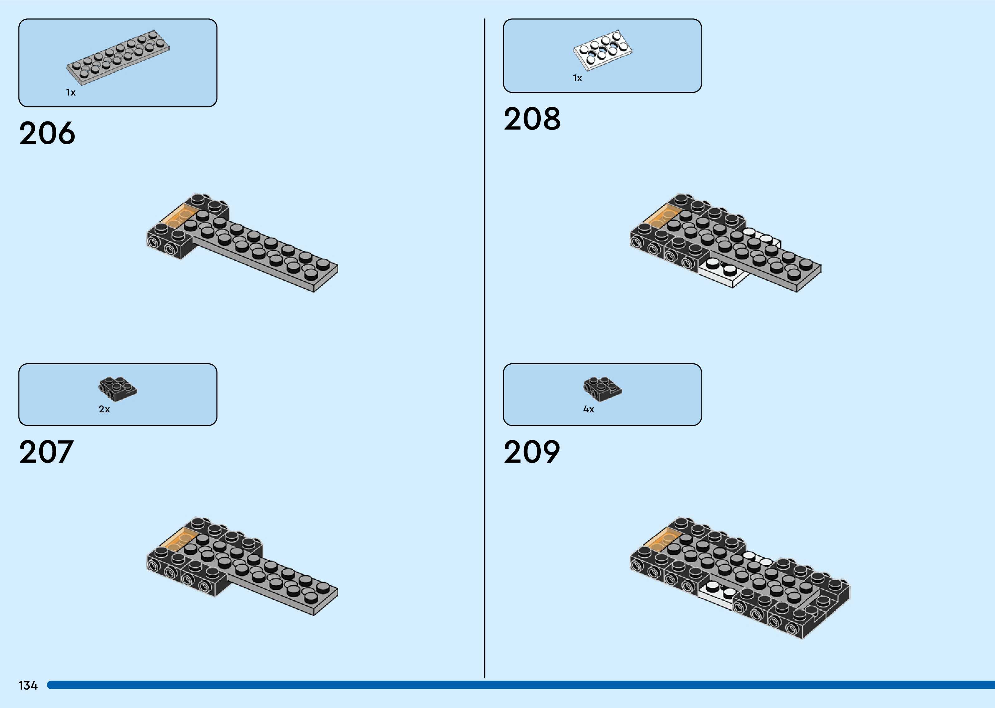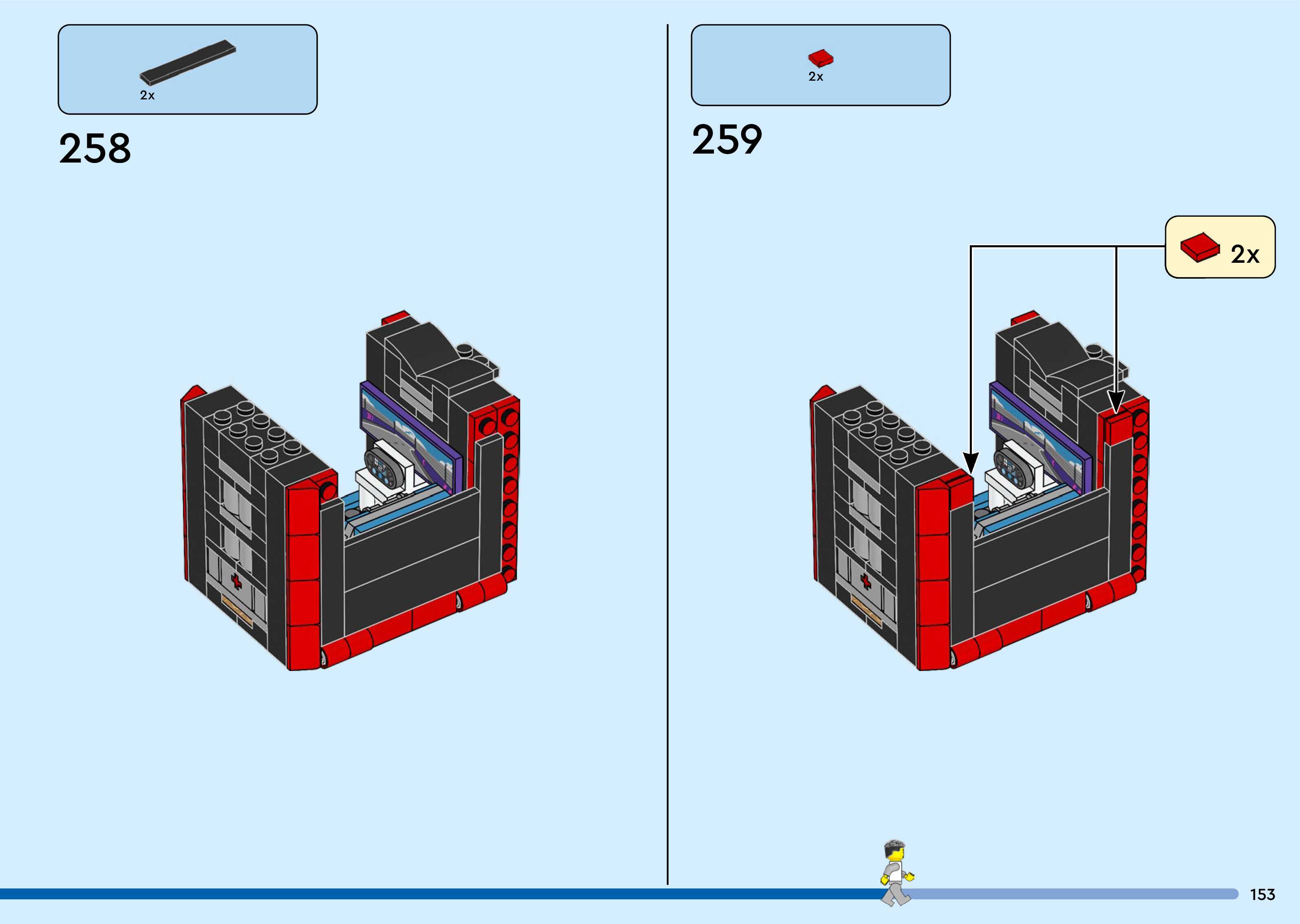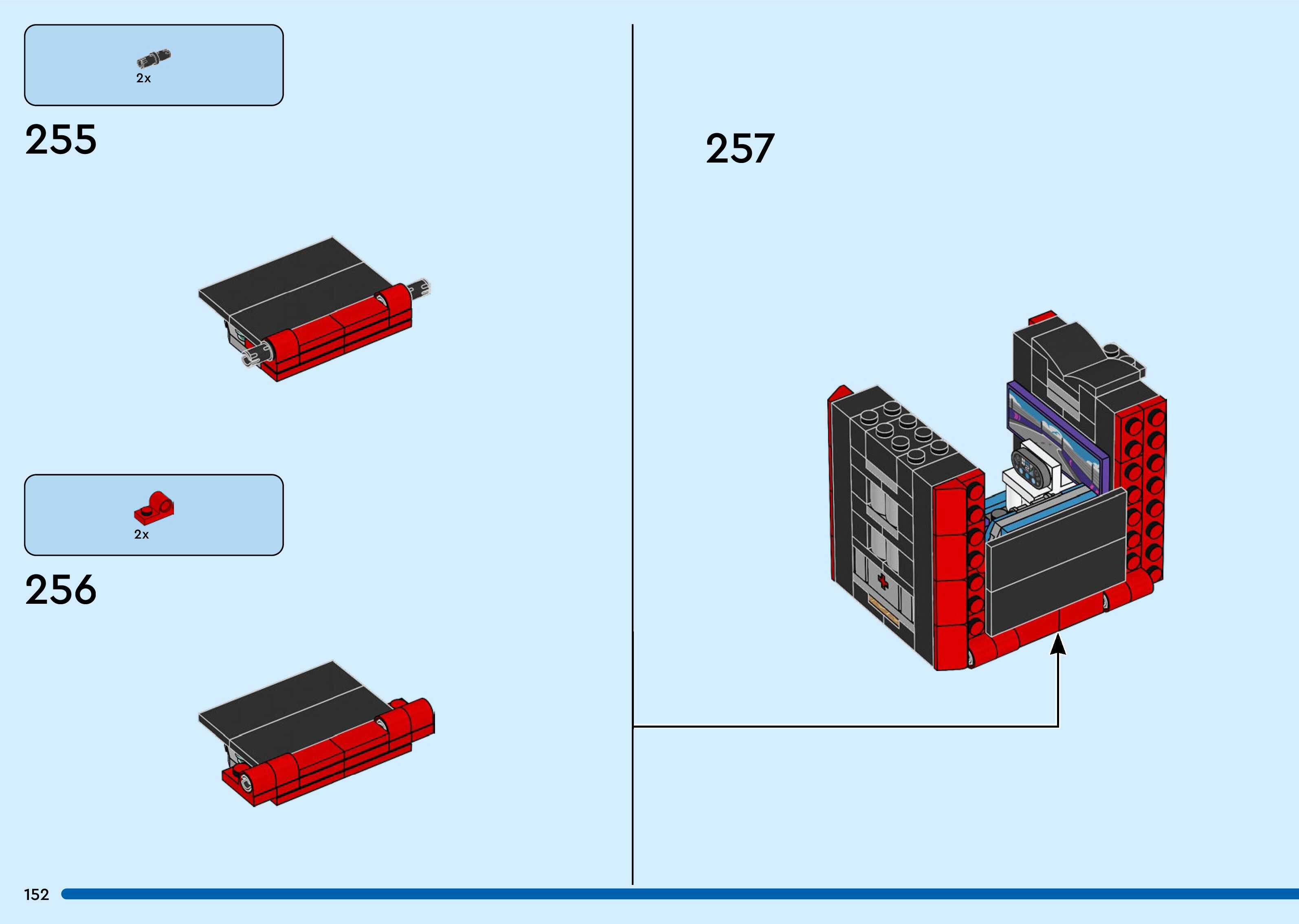 The assembly guide is prepared in a very understandable way for children and adult LEGO enthusiasts. A total of 260 picture galleries are shown, explaining the step-by-step construction stages for 3 different structures.