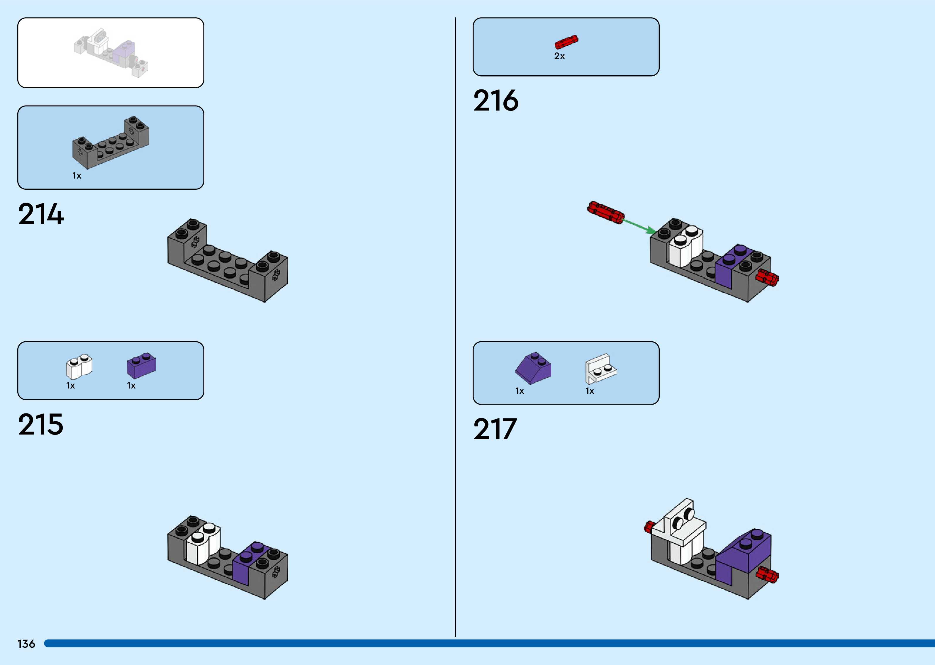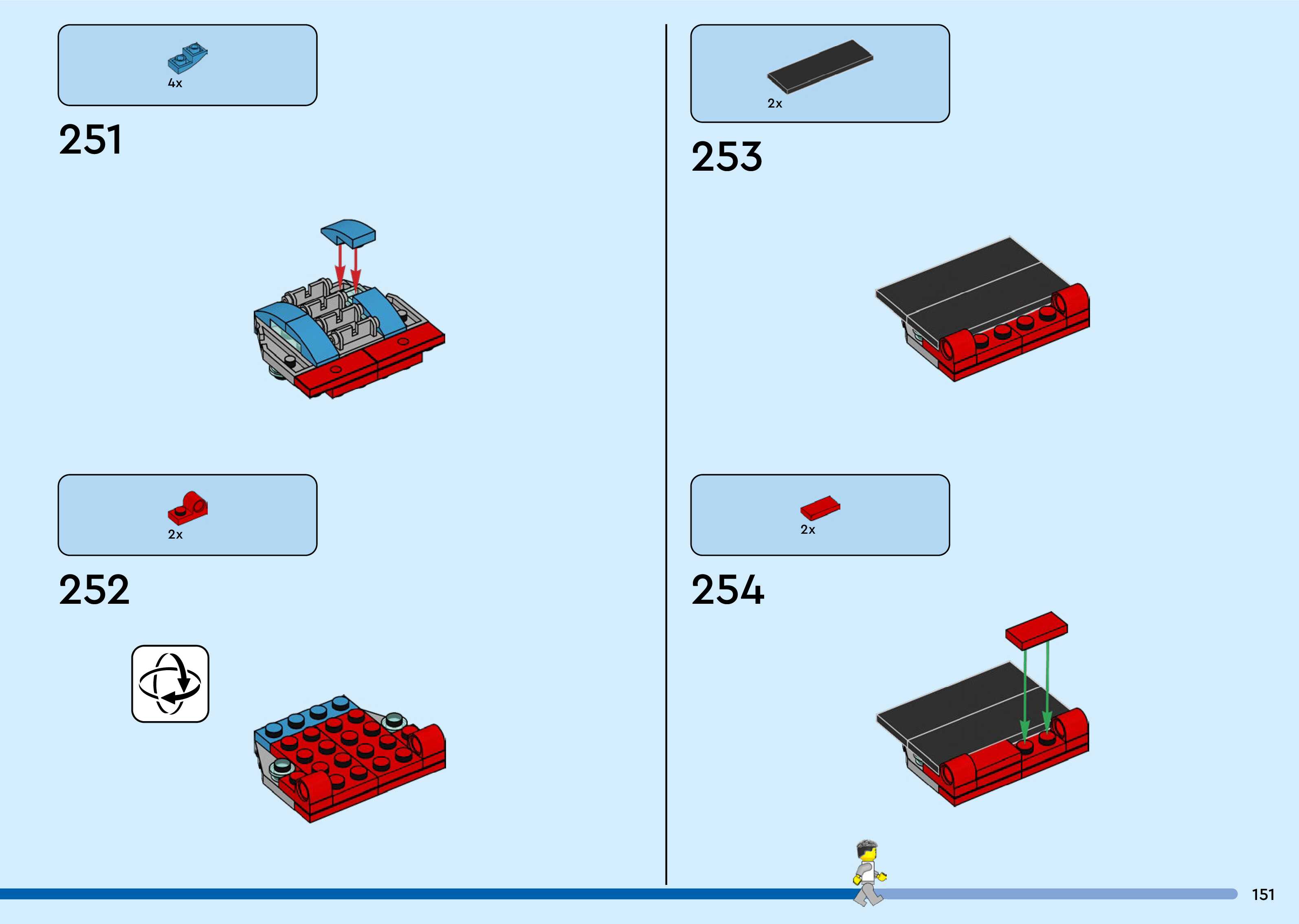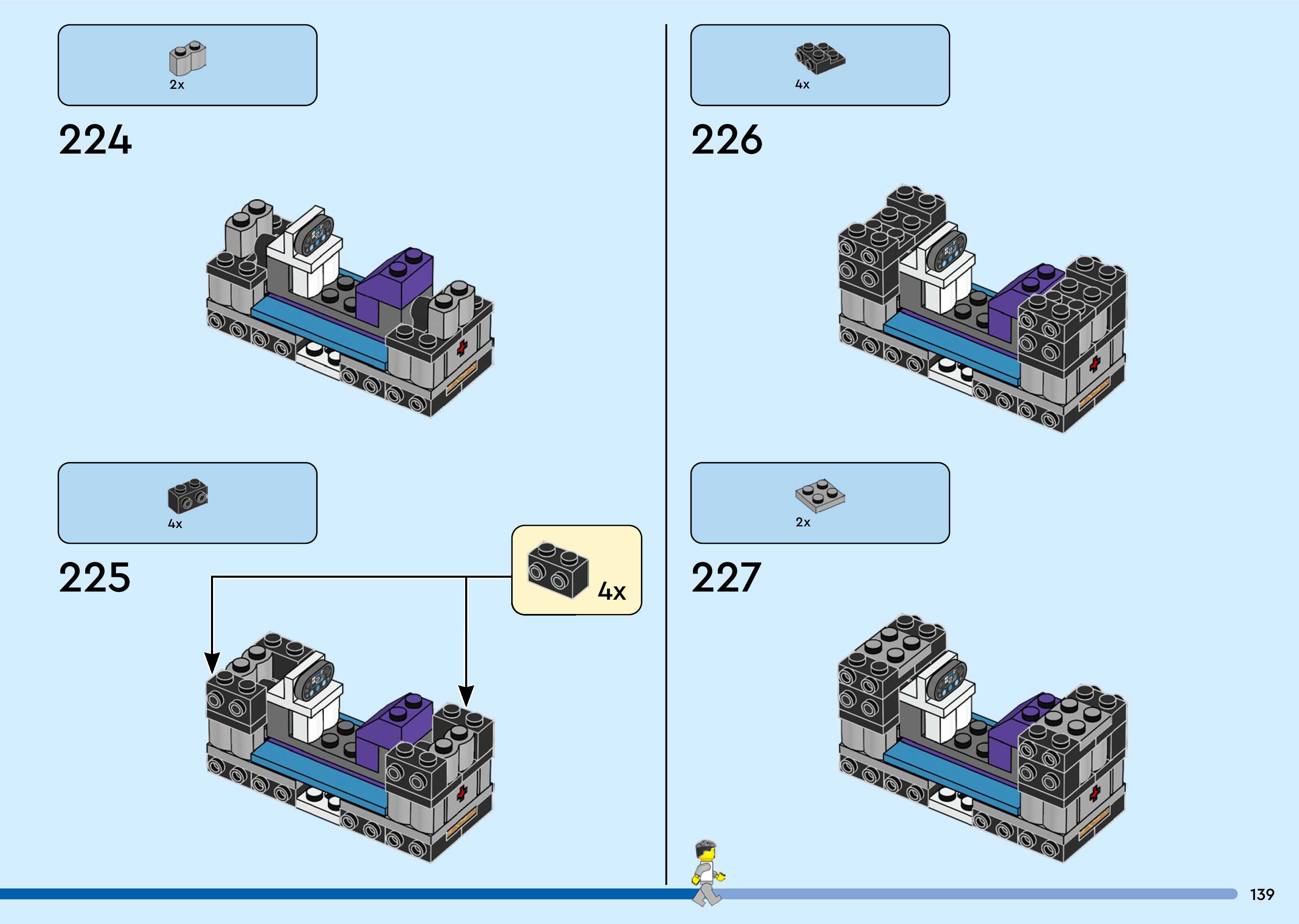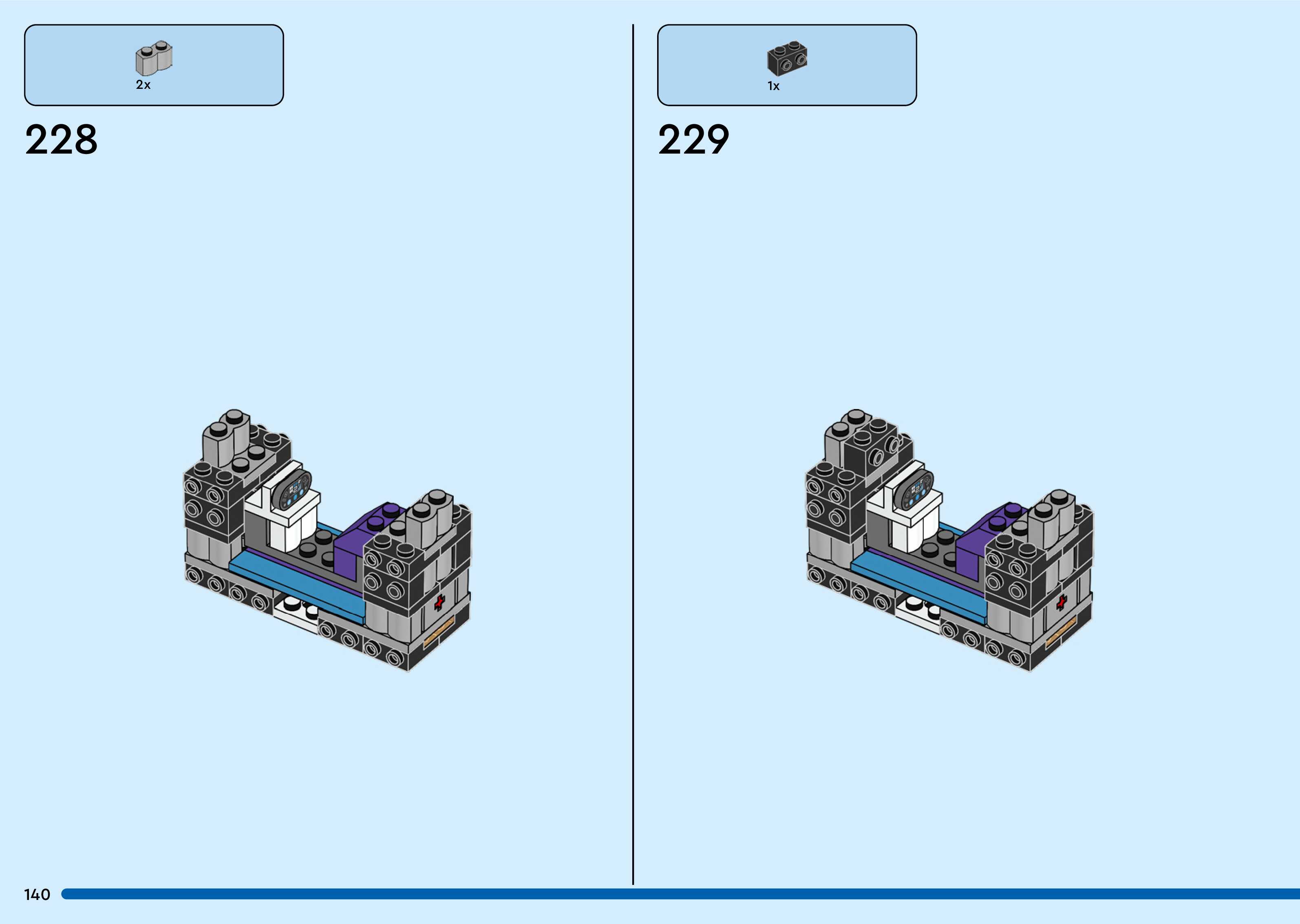 The assembly guide is prepared in a very understandable way for children and adult LEGO enthusiasts. A total of 260 picture galleries are shown, explaining the step-by-step construction stages for 3 different structures.