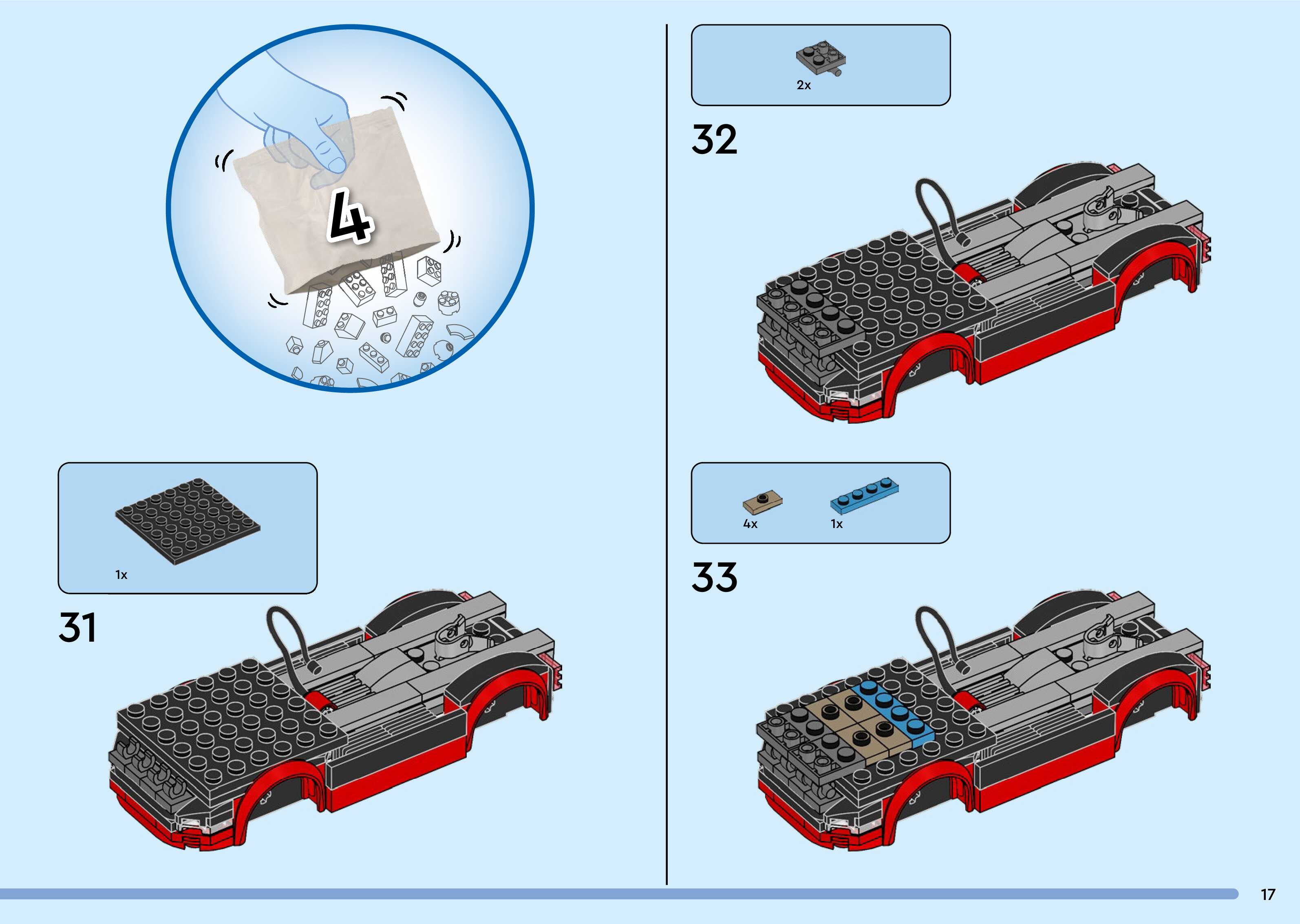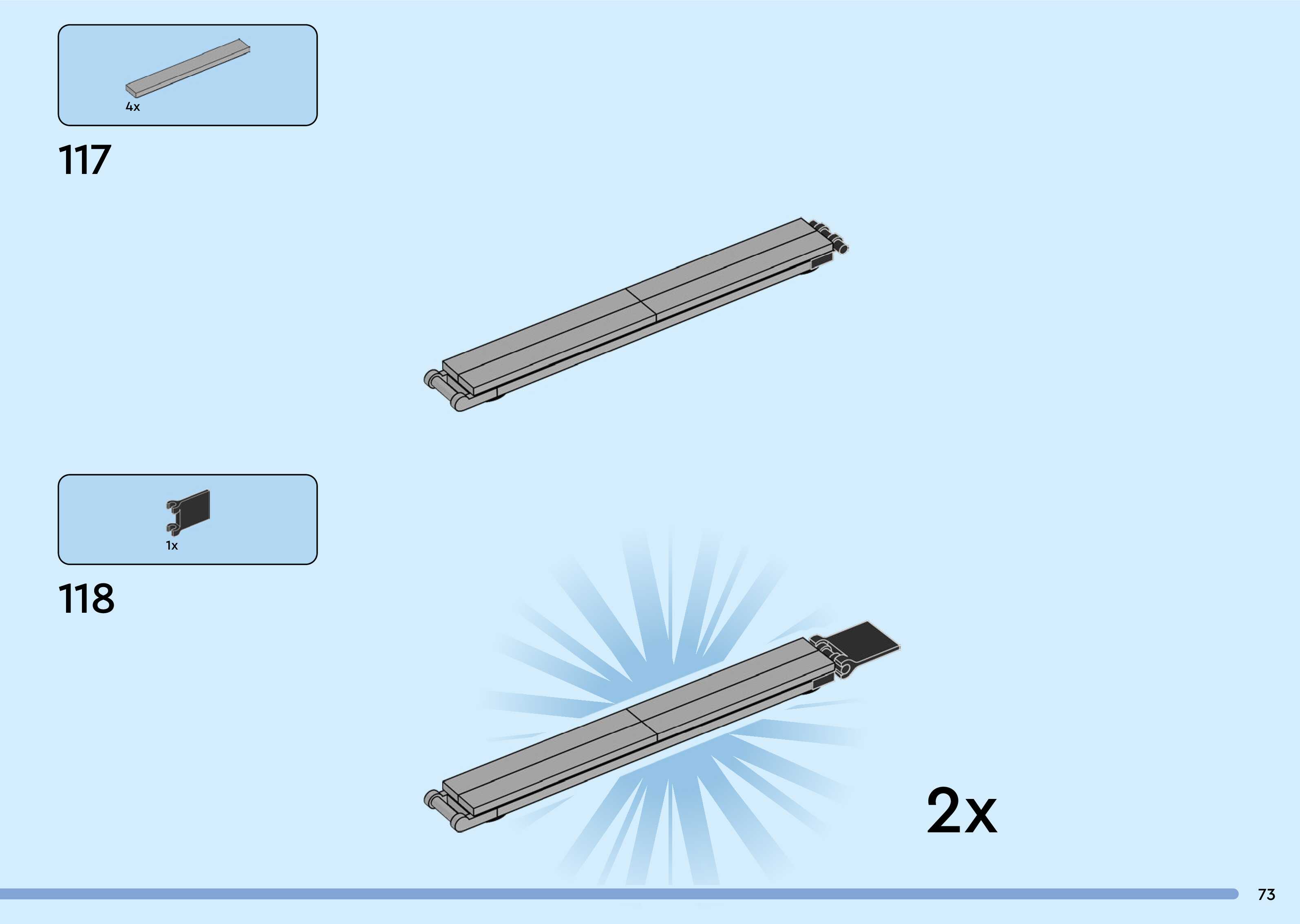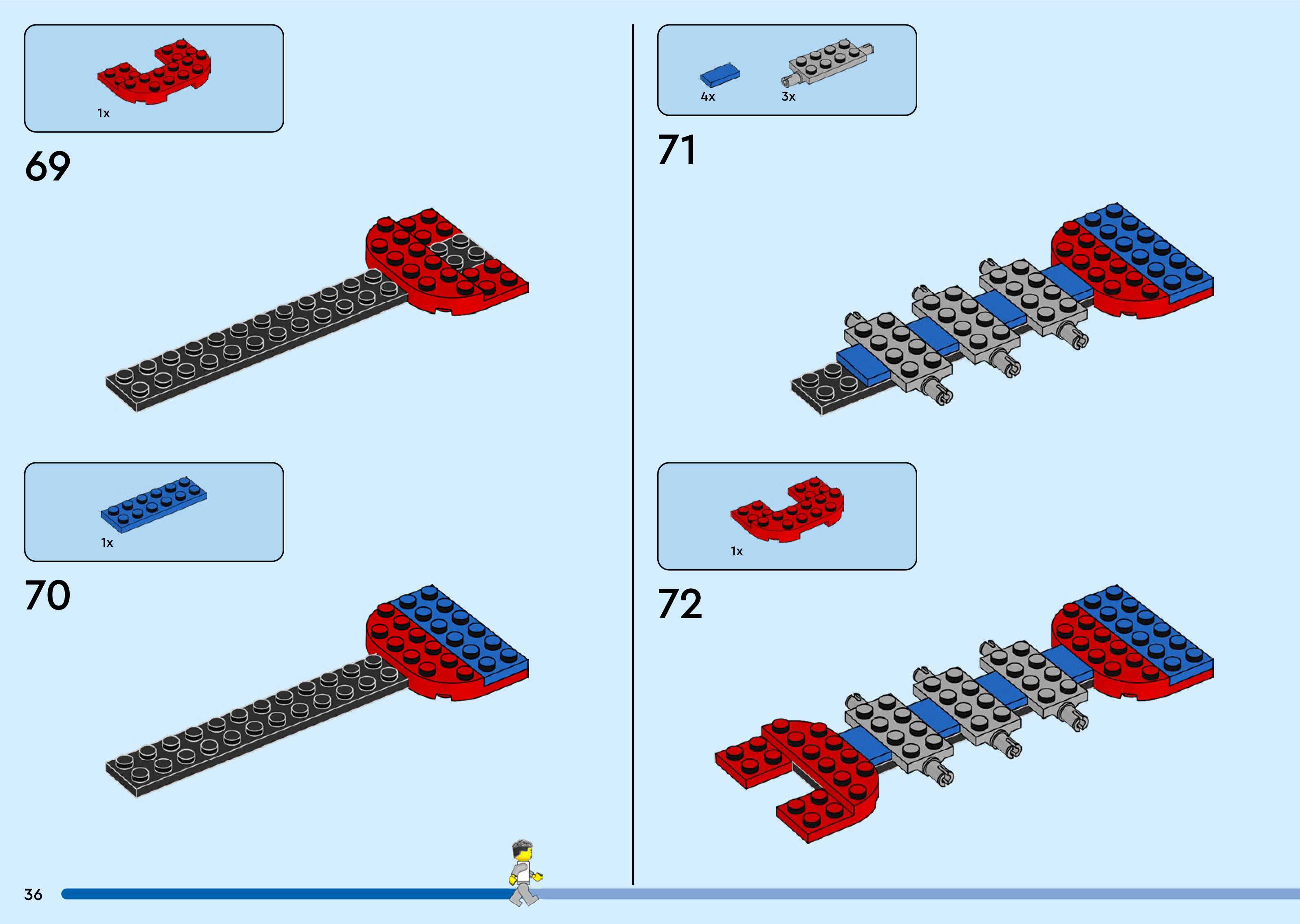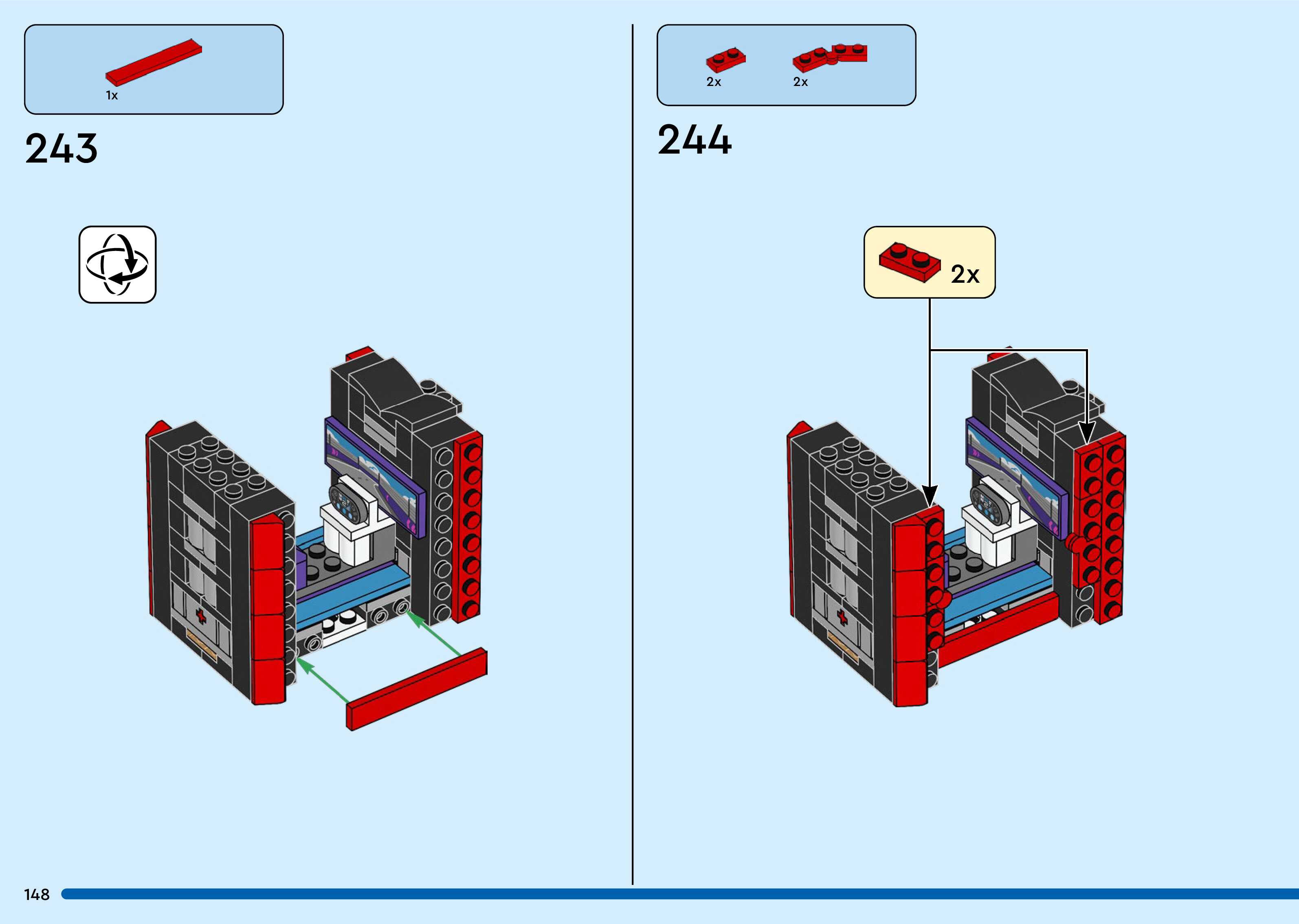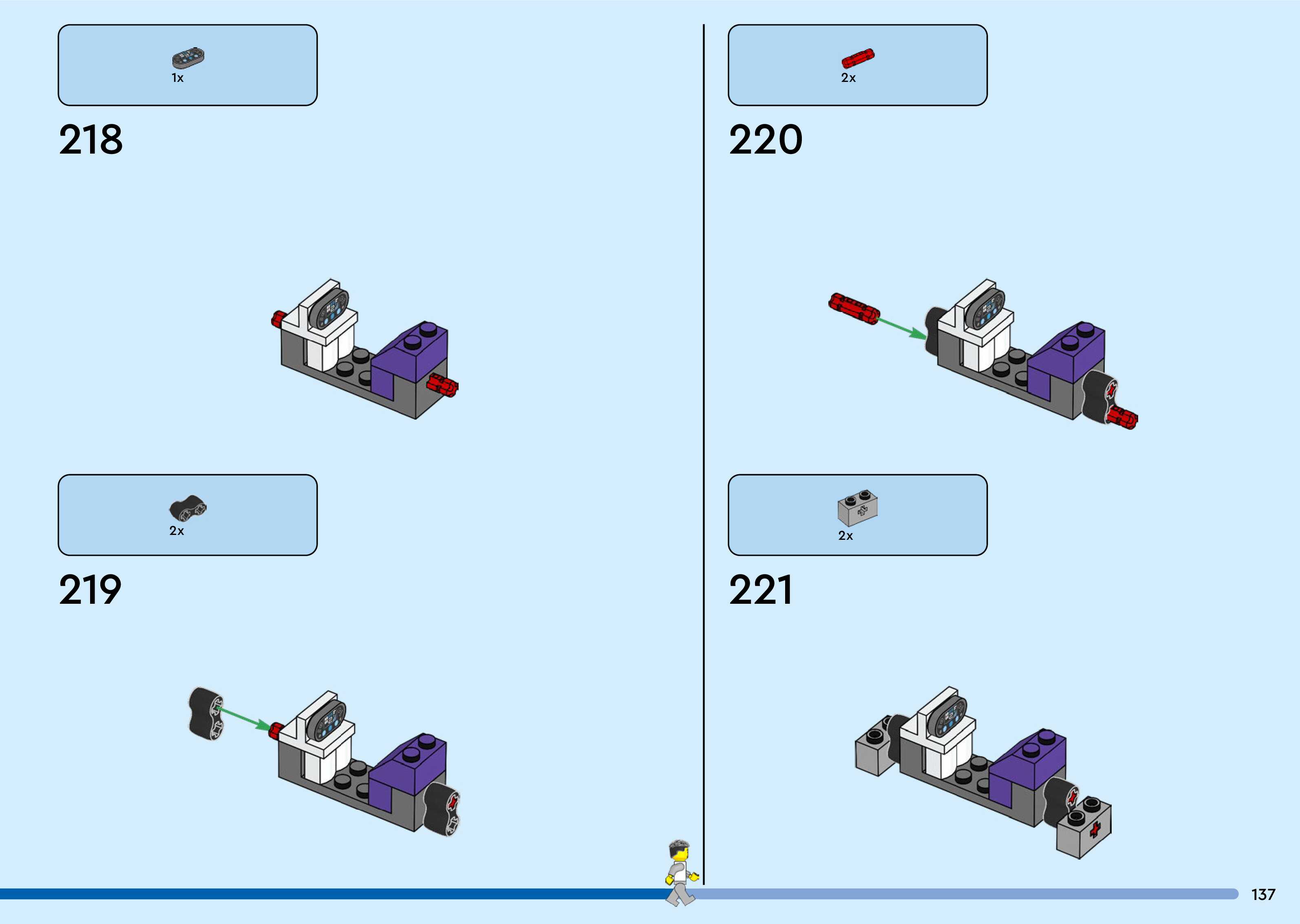 The assembly guide is prepared in a very understandable way for children and adult LEGO enthusiasts. A total of 260 picture galleries are shown, explaining the step-by-step construction stages for 3 different structures.