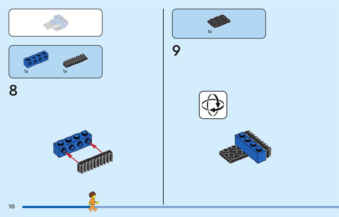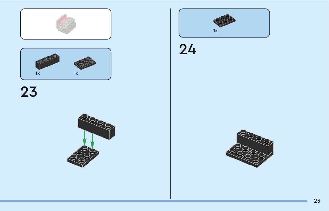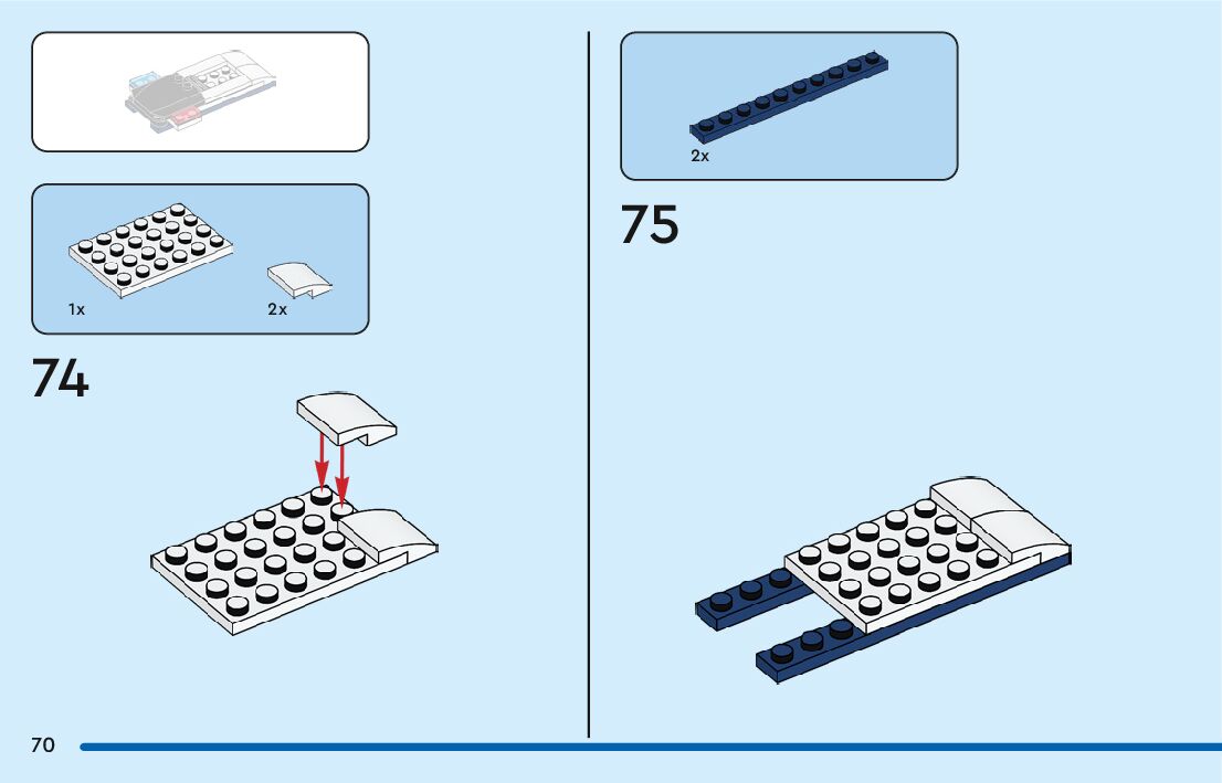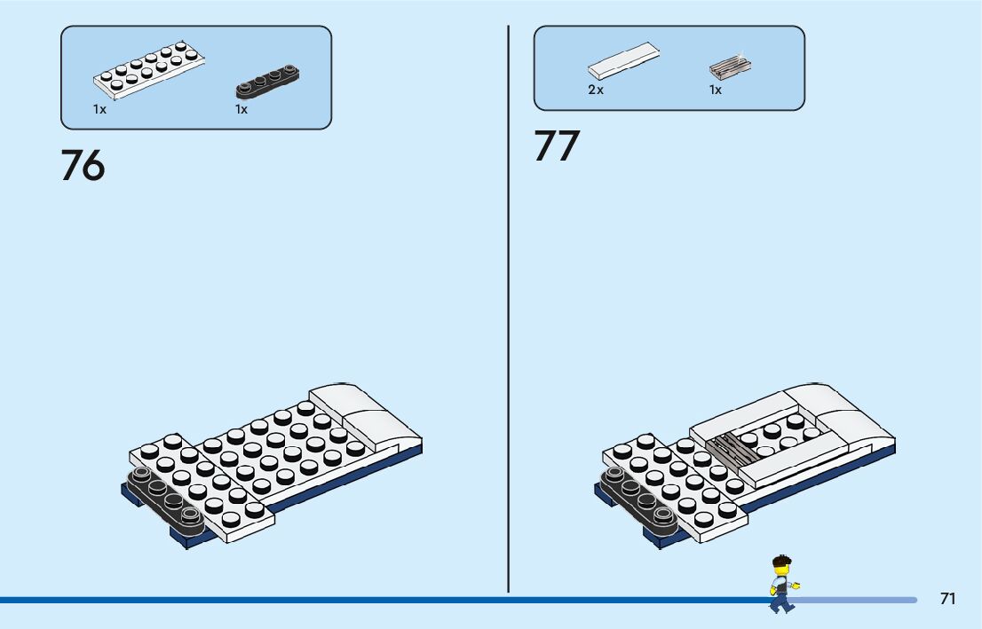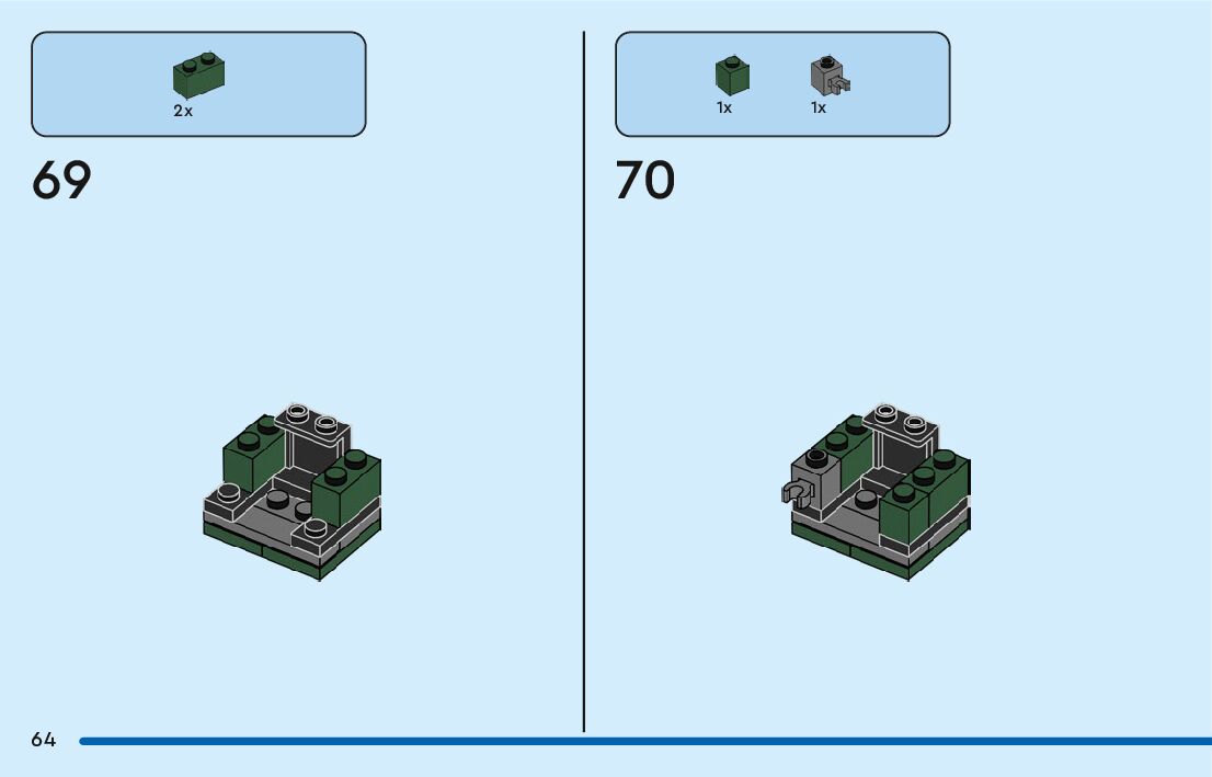 The assembly guide is prepared in a very understandable way for children and adult LEGO enthusiasts. A total of 196 picture galleries are shown, explaining the step-by-step construction stages for 3 different structures.