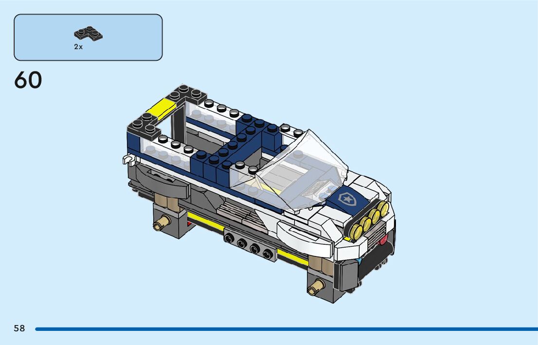 On this page you can find the original construction manual for the LEGO 60449 set. With the assembly manual you can easily learn how to build the Off-Road Police Car Chase step by step. The set was released in 2025.