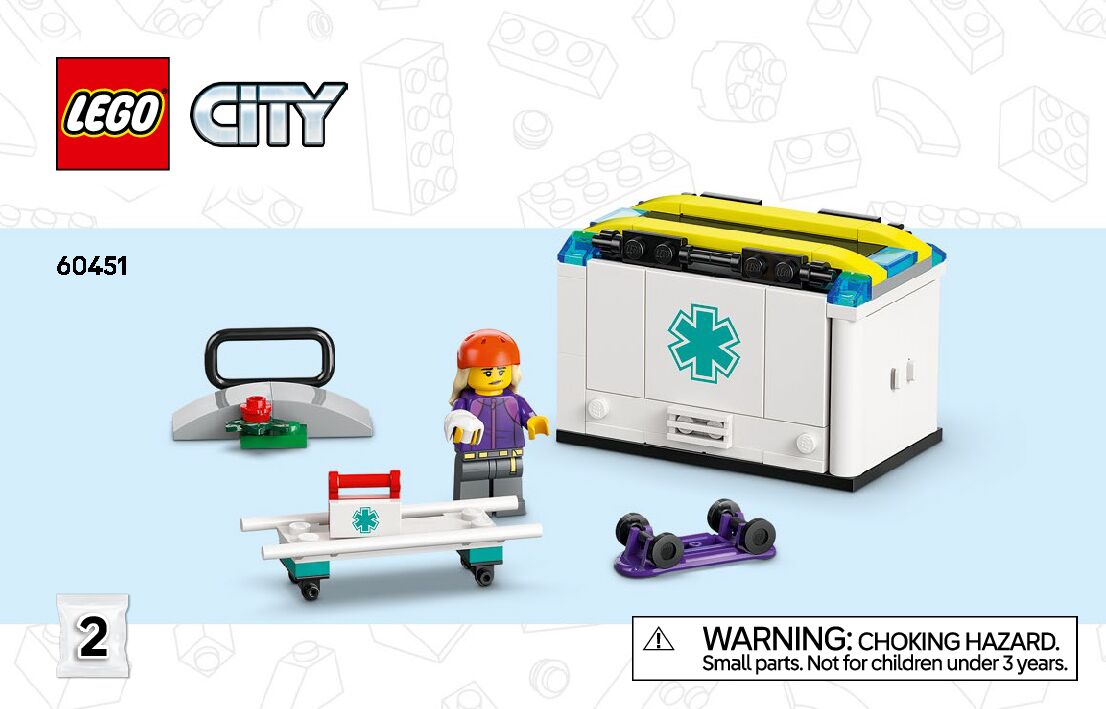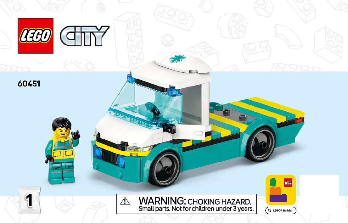 This page shares information about LEGO Emergency Ambulance manual, LEGO 60451 PDF instructions, LEGO Emergency Ambulance building guide online, How to build Emergency Ambulance LEGO.