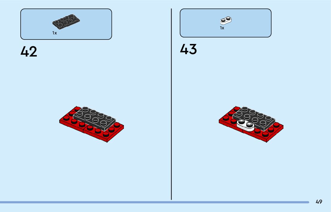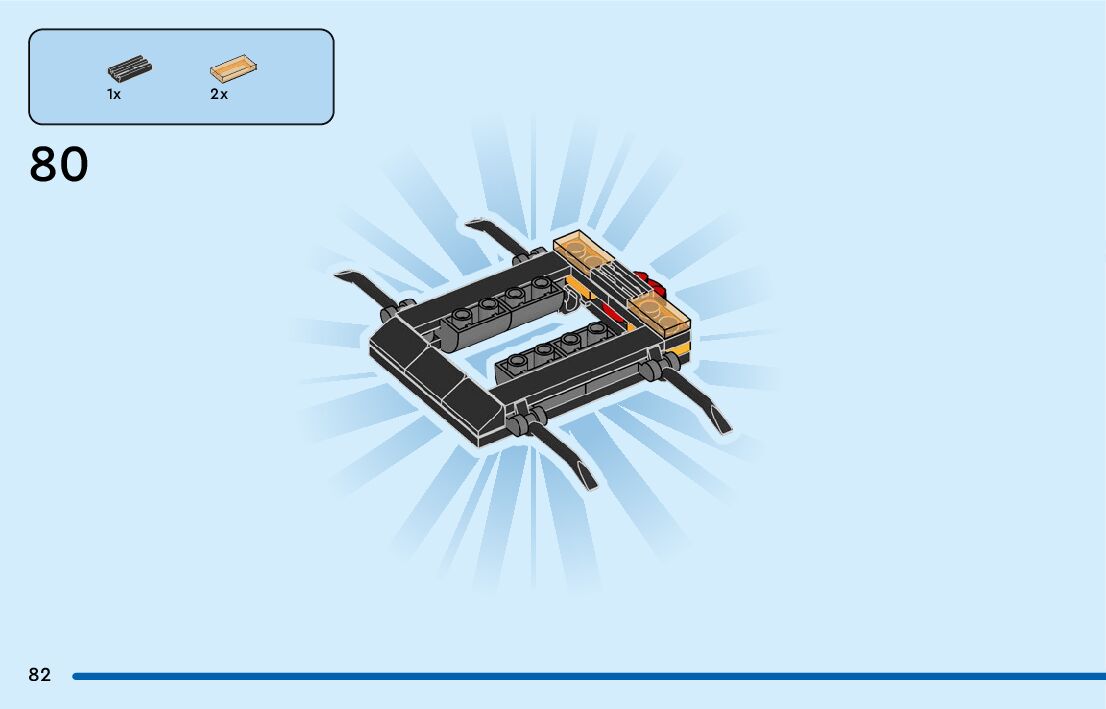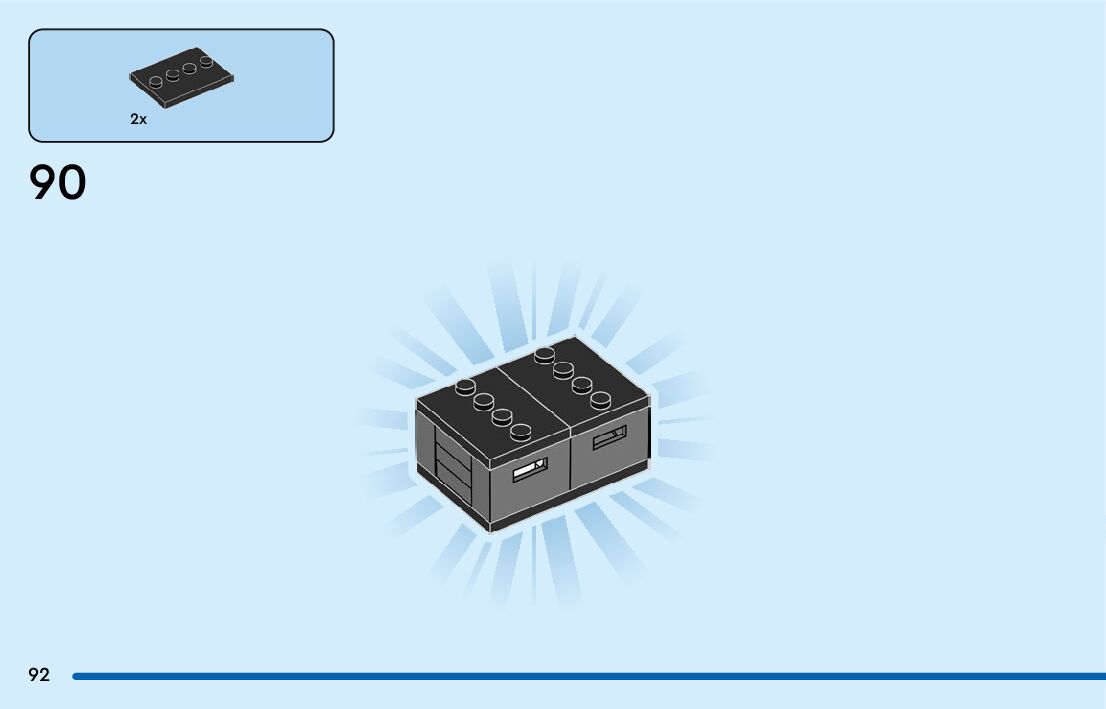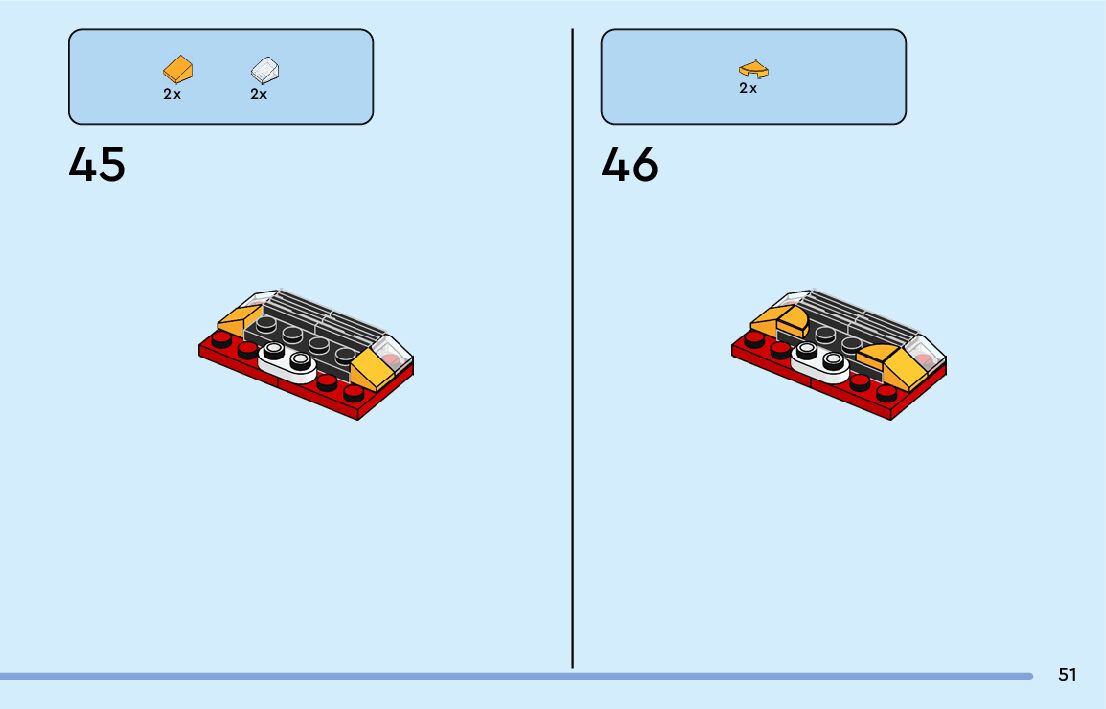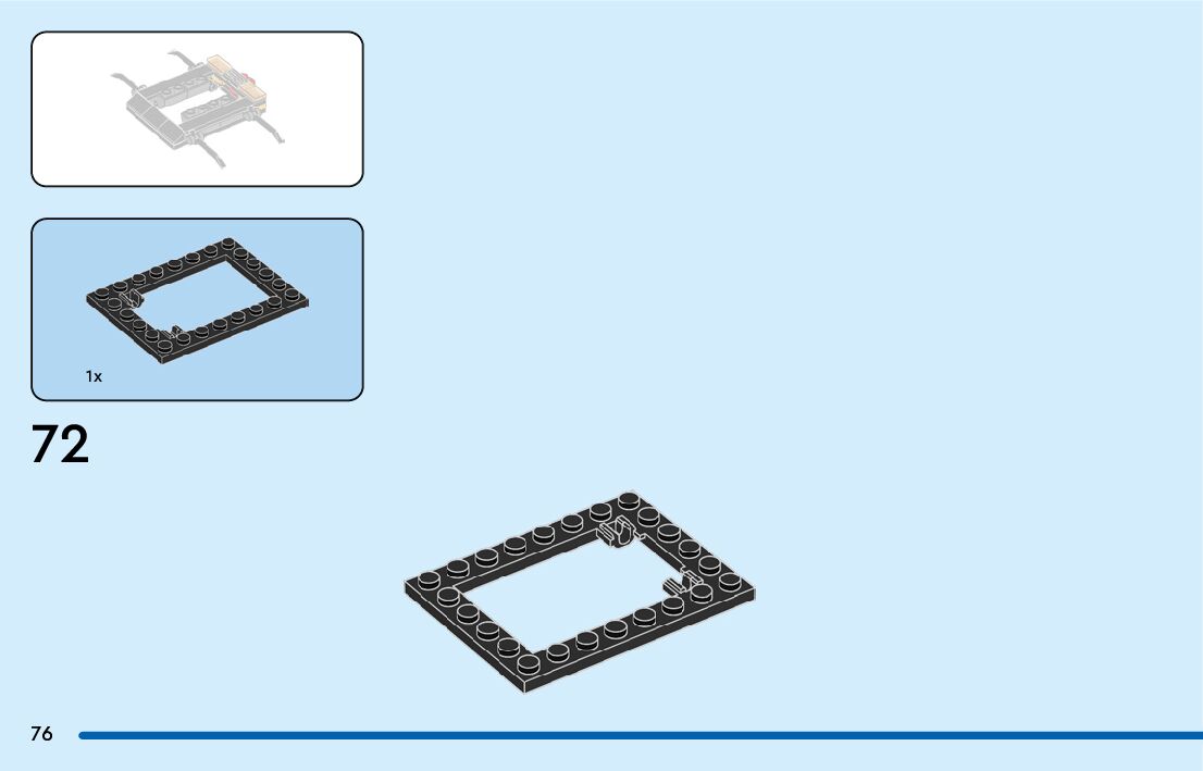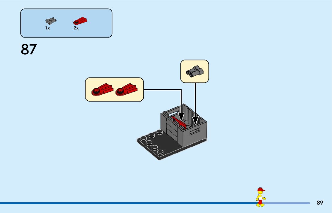 The assembly guide is prepared in a very understandable way for children and adult LEGO enthusiasts. A total of 100 picture galleries are shown, explaining the step-by-step construction stages for 1 different structures.