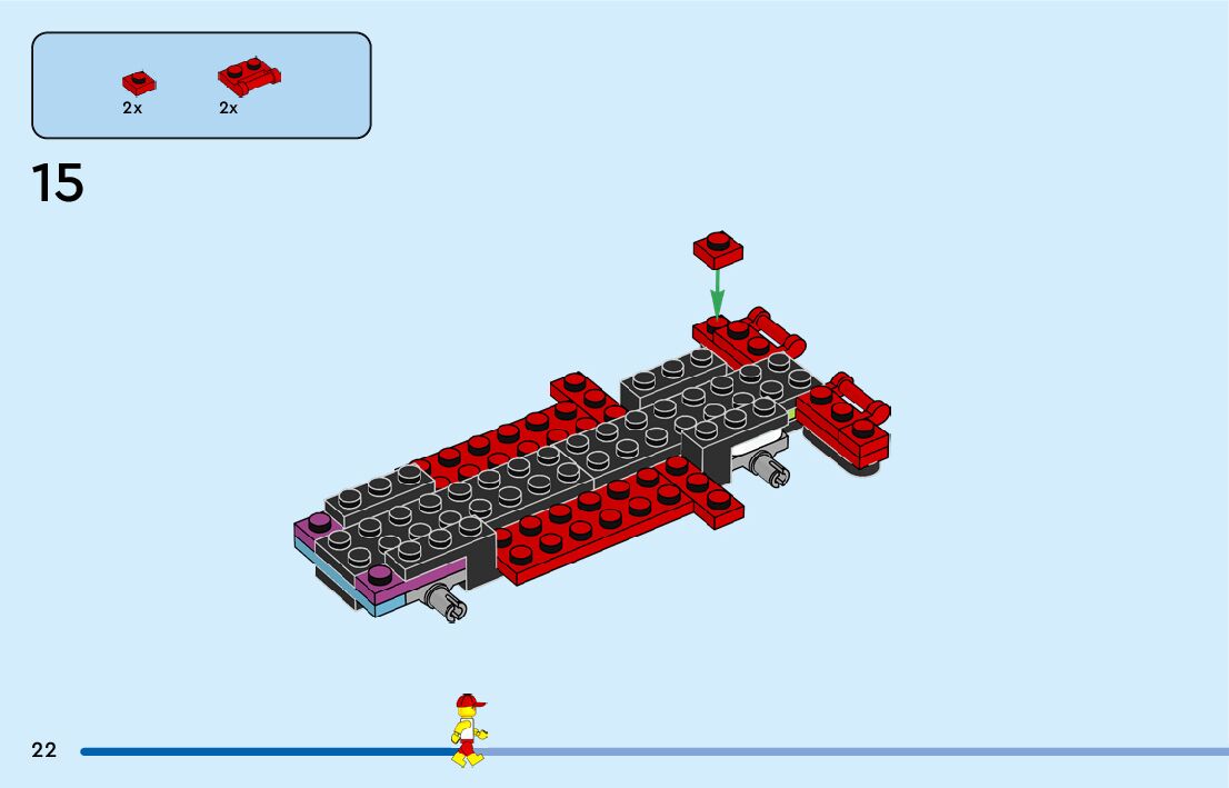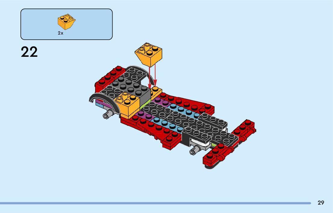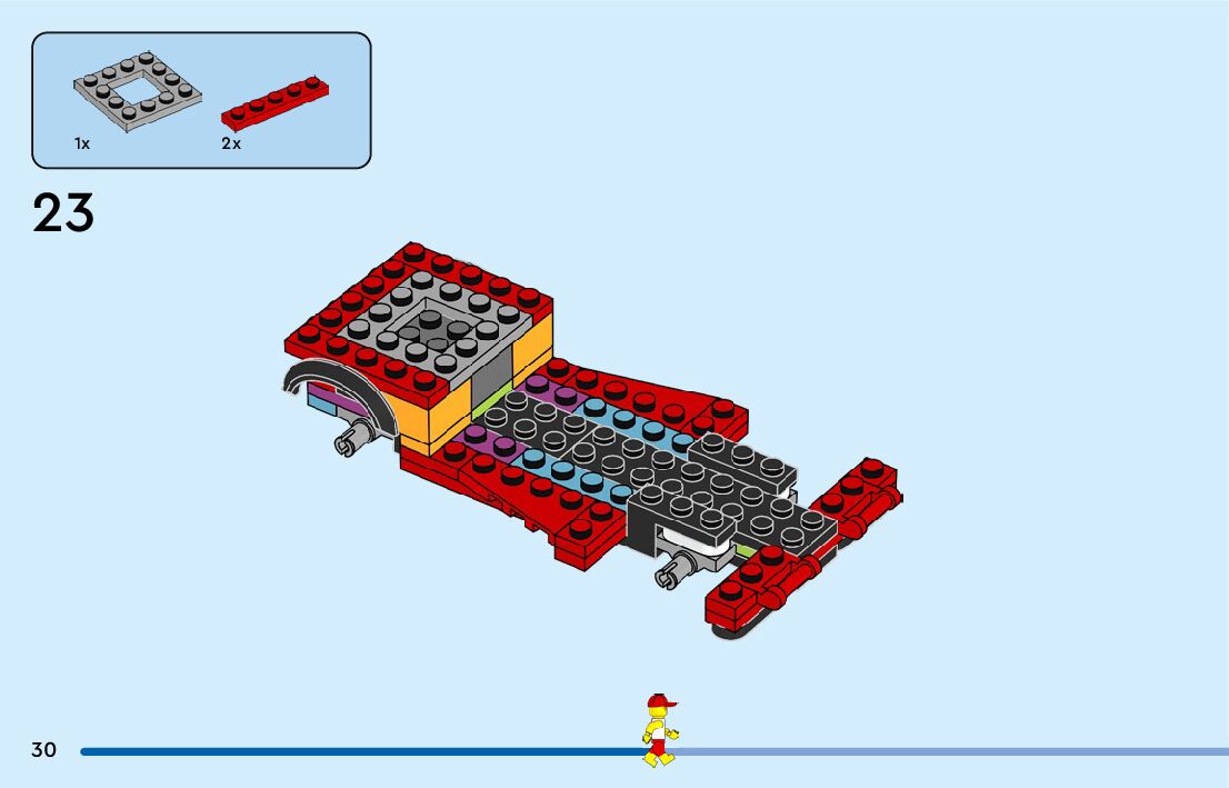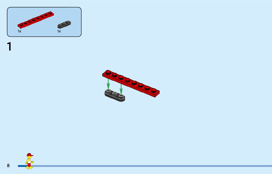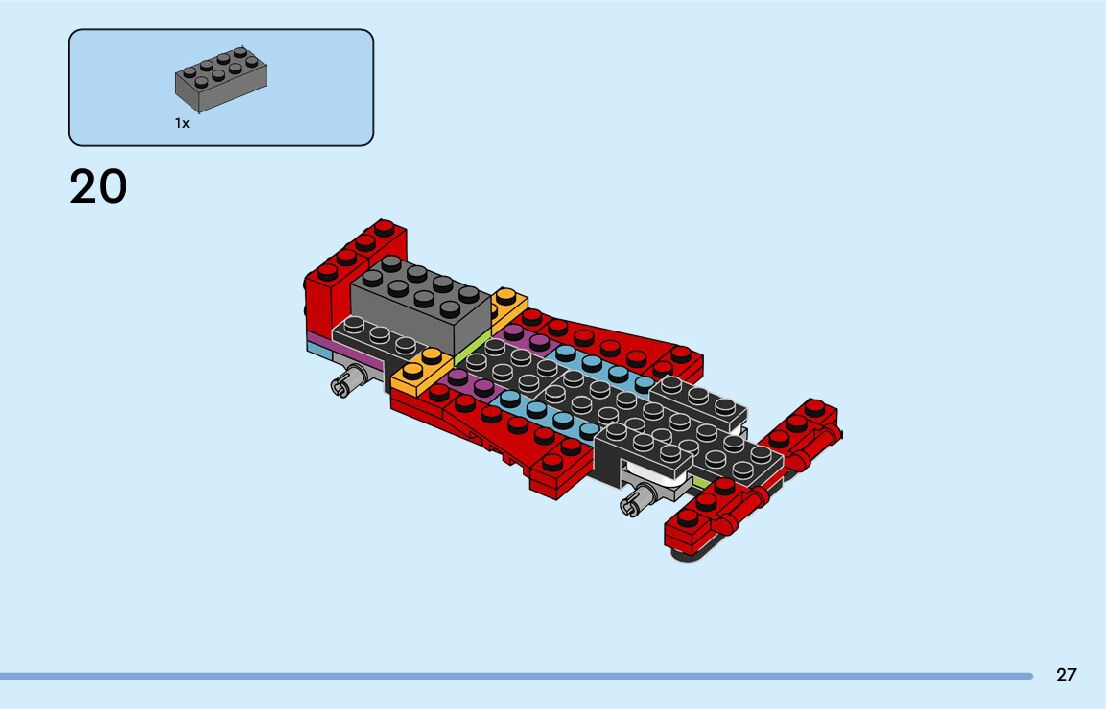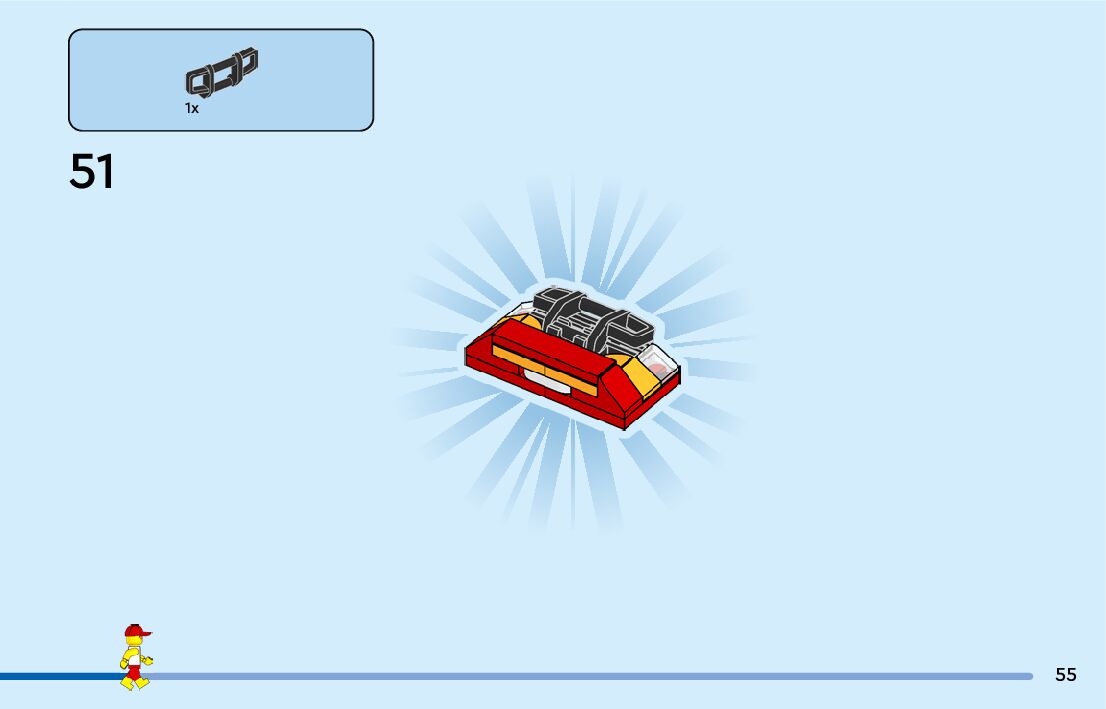 The assembly guide is prepared in a very understandable way for children and adult LEGO enthusiasts. A total of 100 picture galleries are shown, explaining the step-by-step construction stages for 1 different structures.