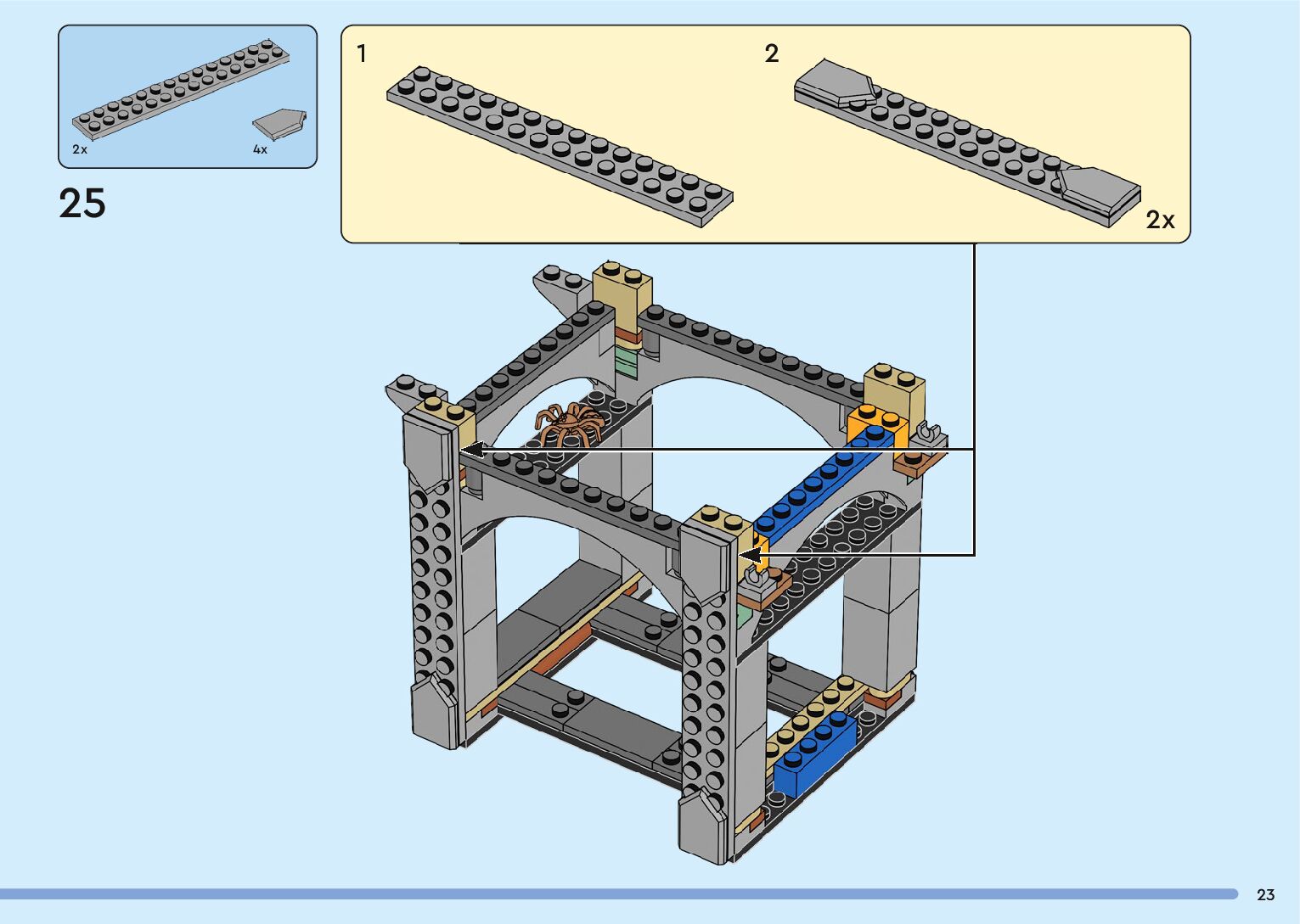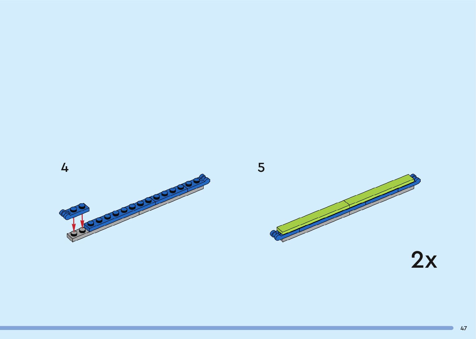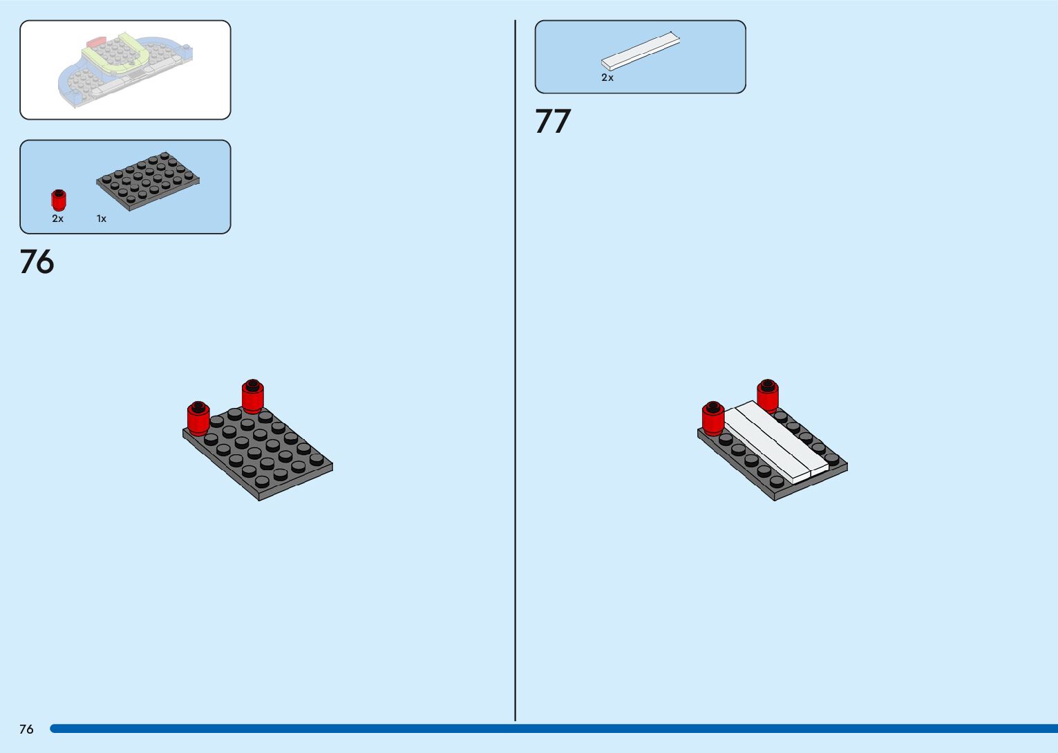 The assembly guide is prepared in a very understandable way for children and adult LEGO enthusiasts. A total of 136 picture galleries are shown, explaining the step-by-step construction stages for 2 different structures.