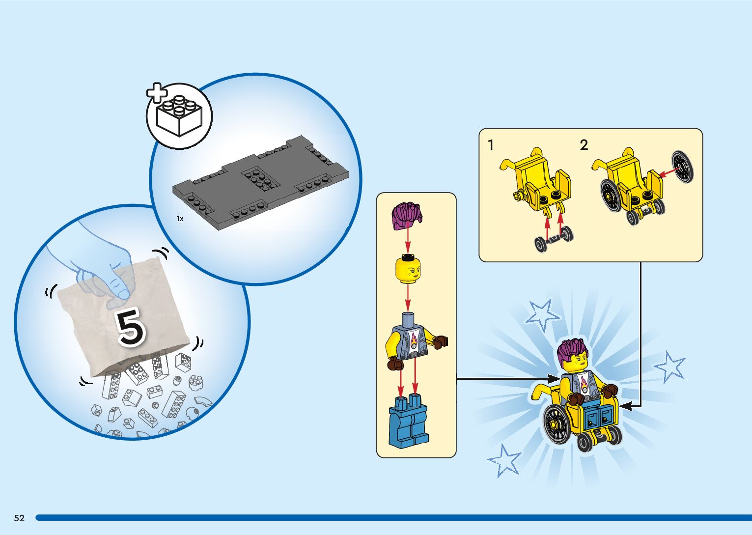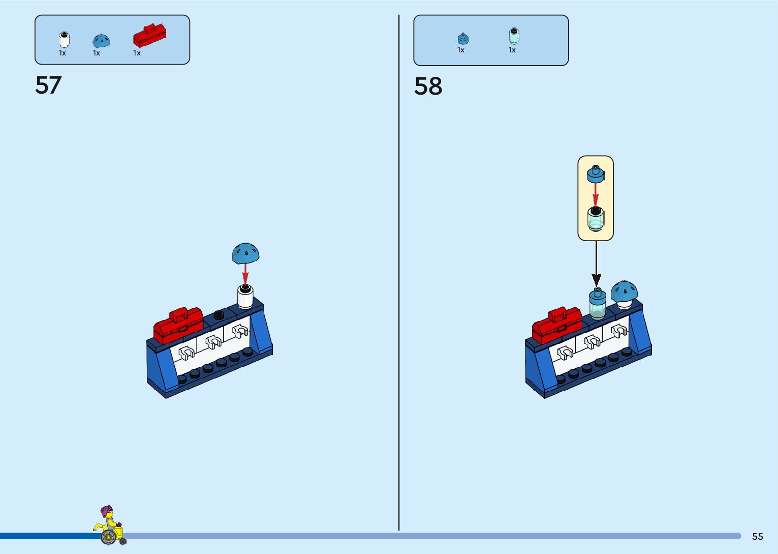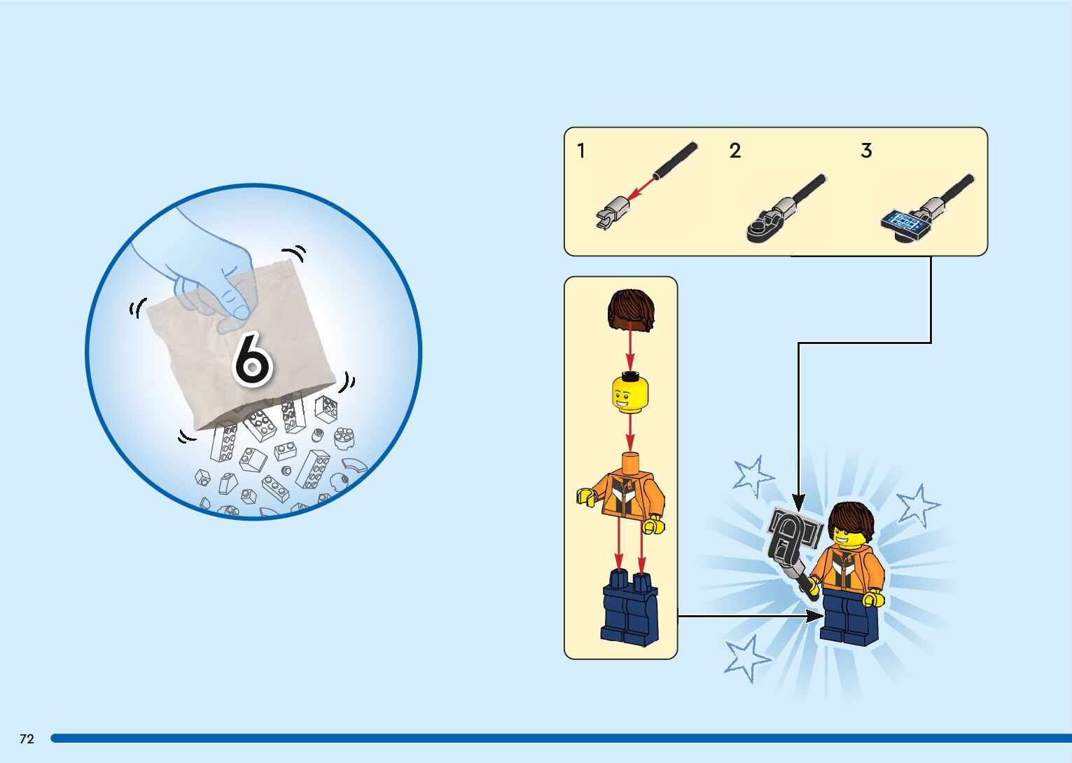 The assembly guide is prepared in a very understandable way for children and adult LEGO enthusiasts. A total of 136 picture galleries are shown, explaining the step-by-step construction stages for 2 different structures.
