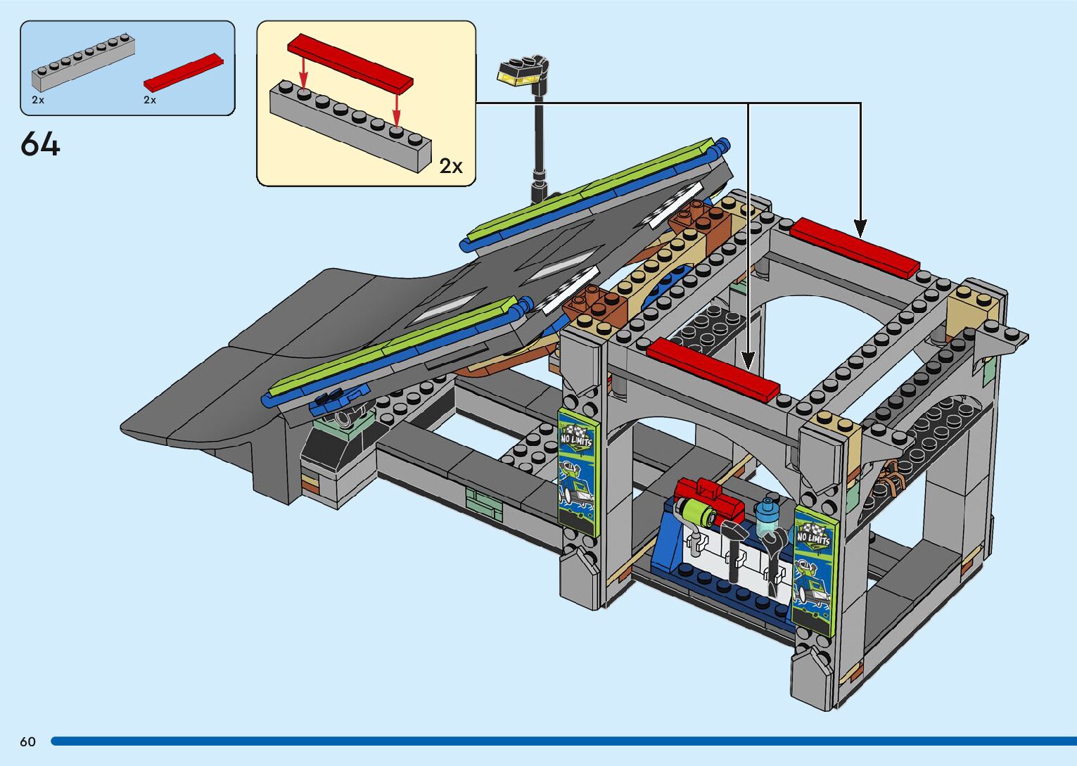 On this page you can find the original construction manual for the LEGO 60460 set. With the assembly manual you can easily learn how to build the No Limits: Race Car Ramp Track step by step. The set was released in 2025.
