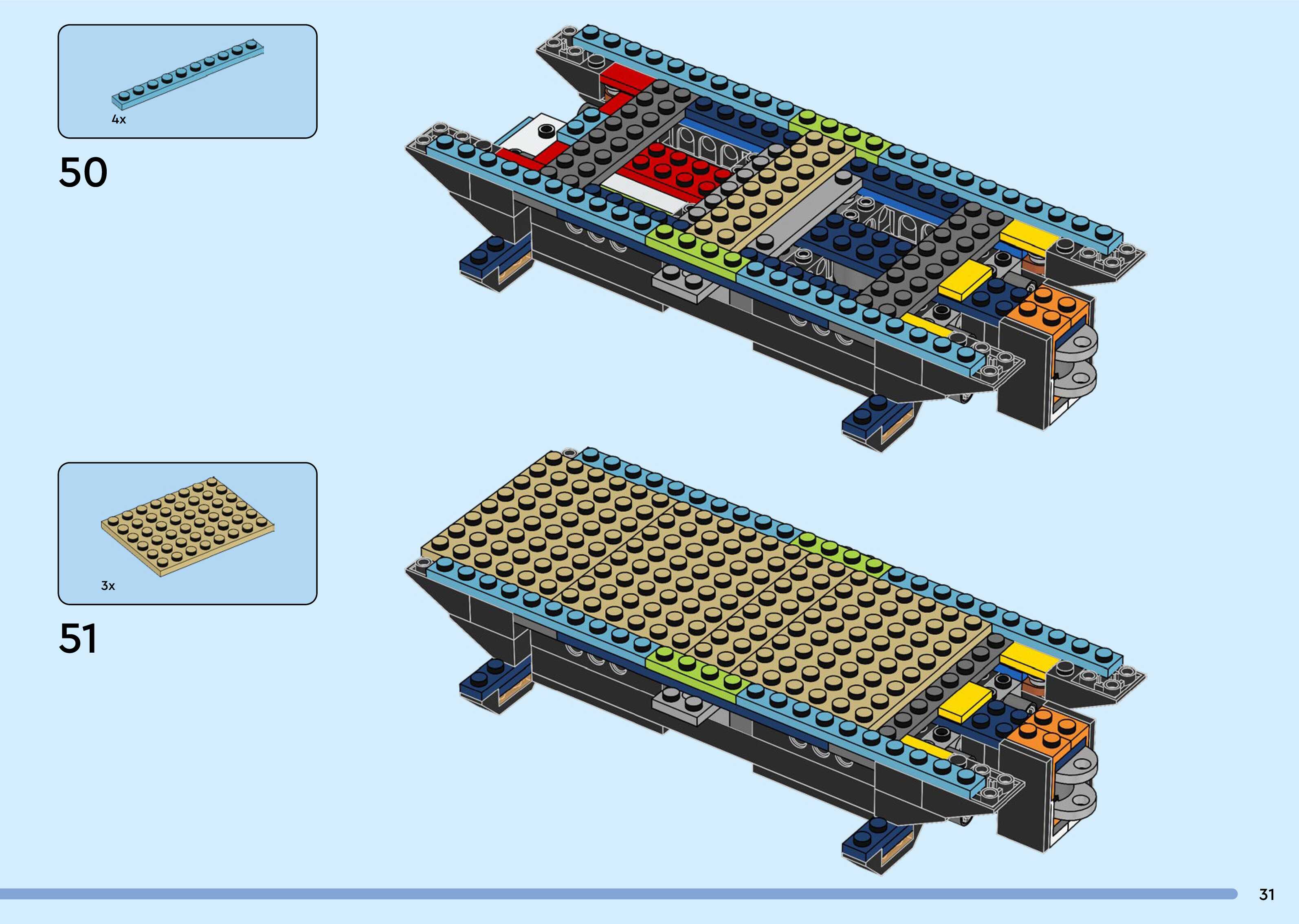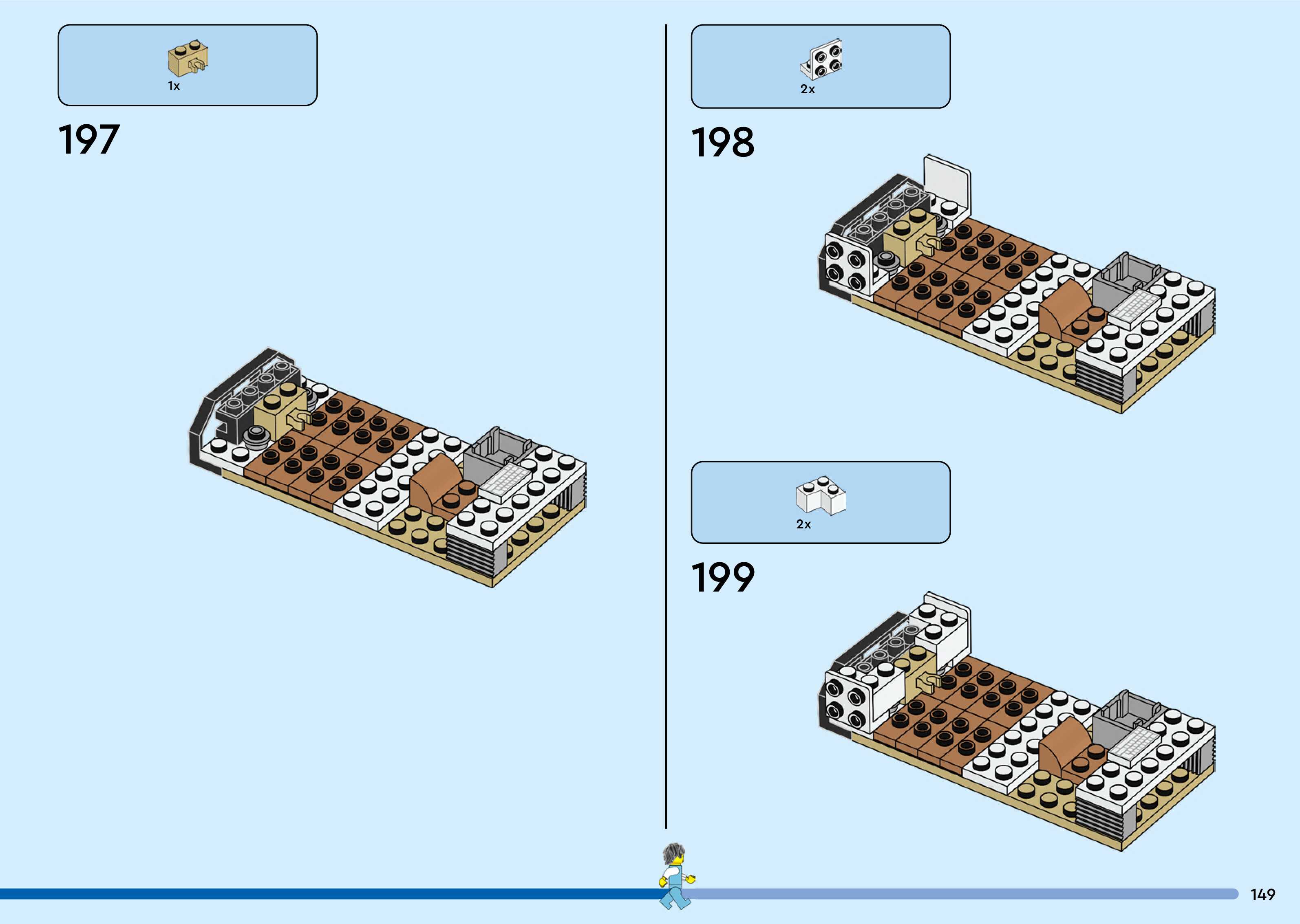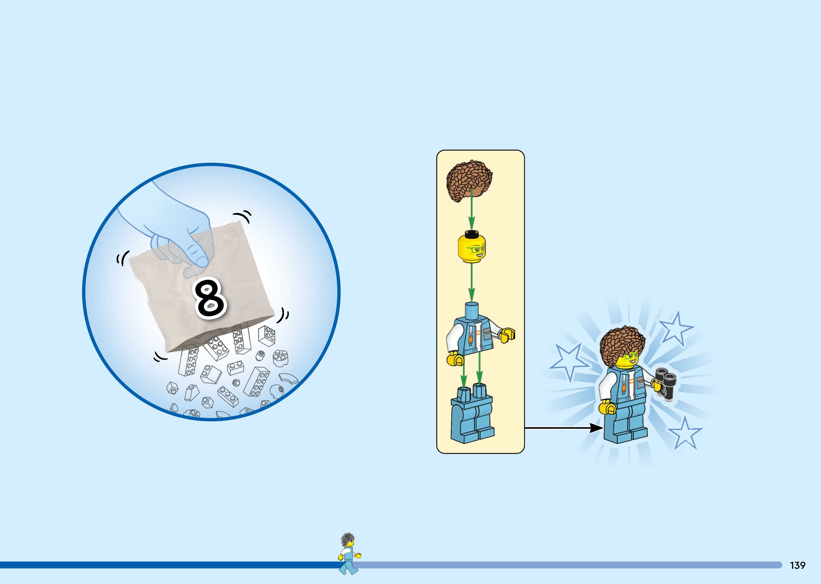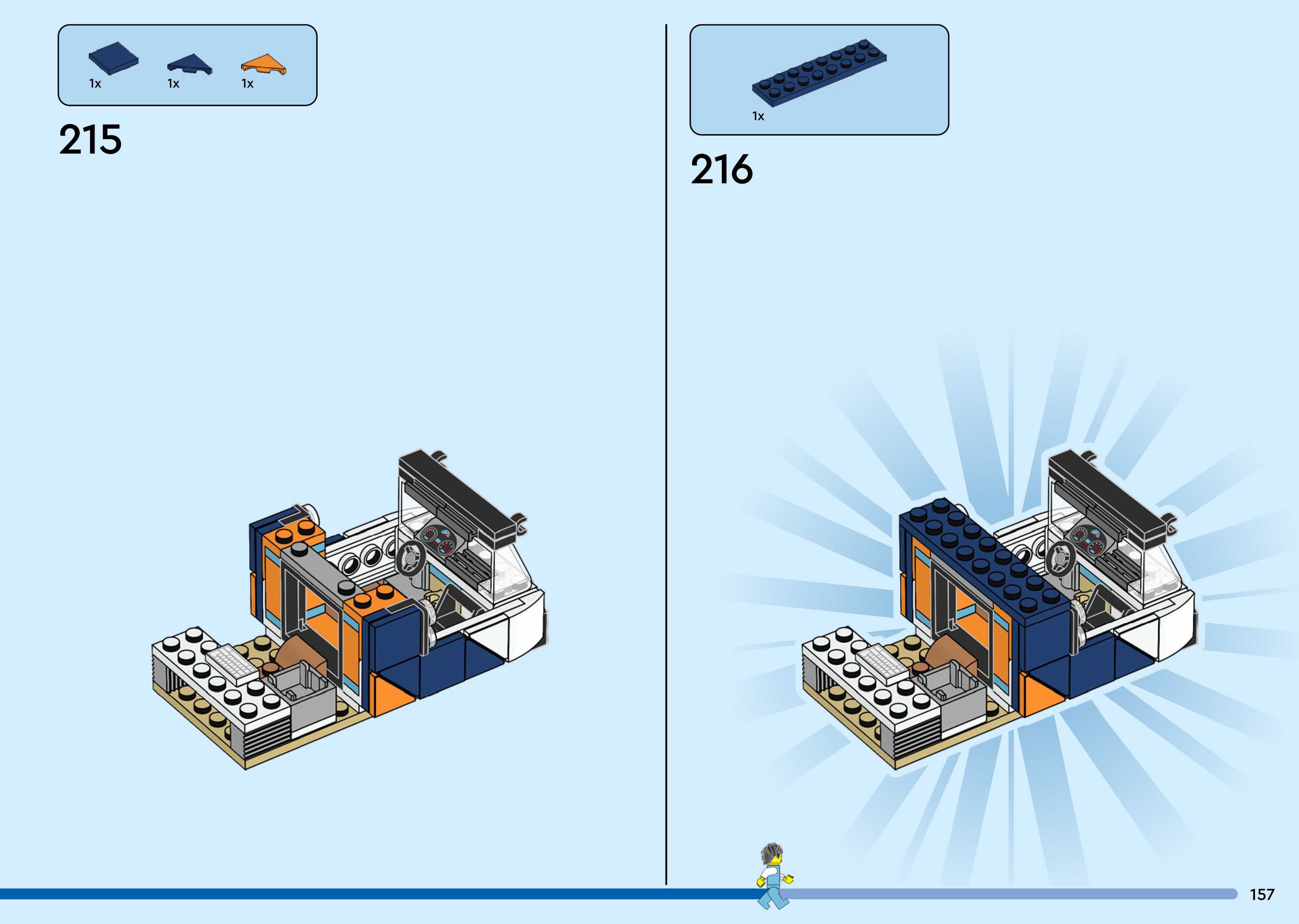The assembly guide is prepared in a very understandable way for children and adult LEGO enthusiasts. A total of 268 picture galleries are shown, explaining the step-by-step construction stages for 3 different structures.