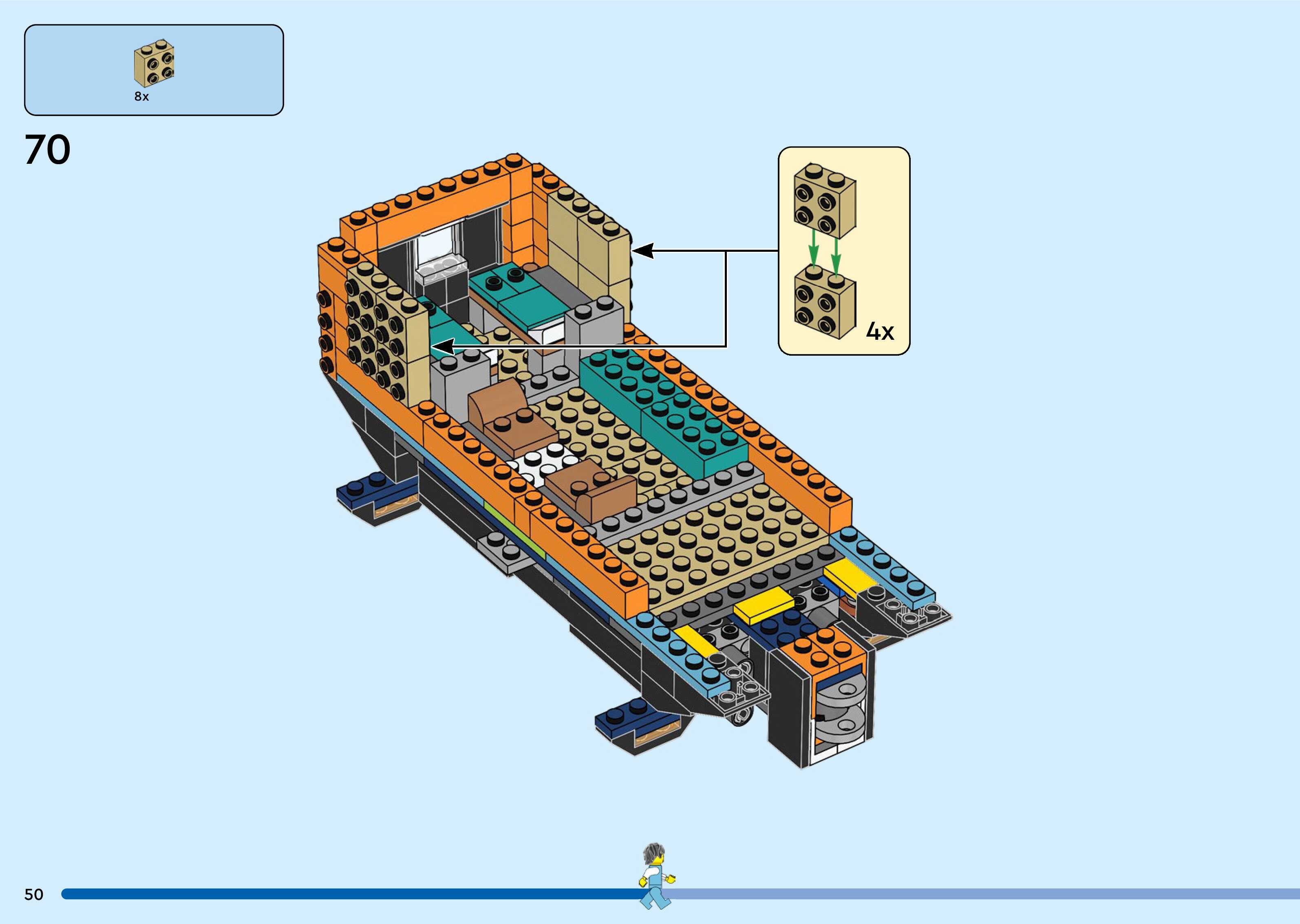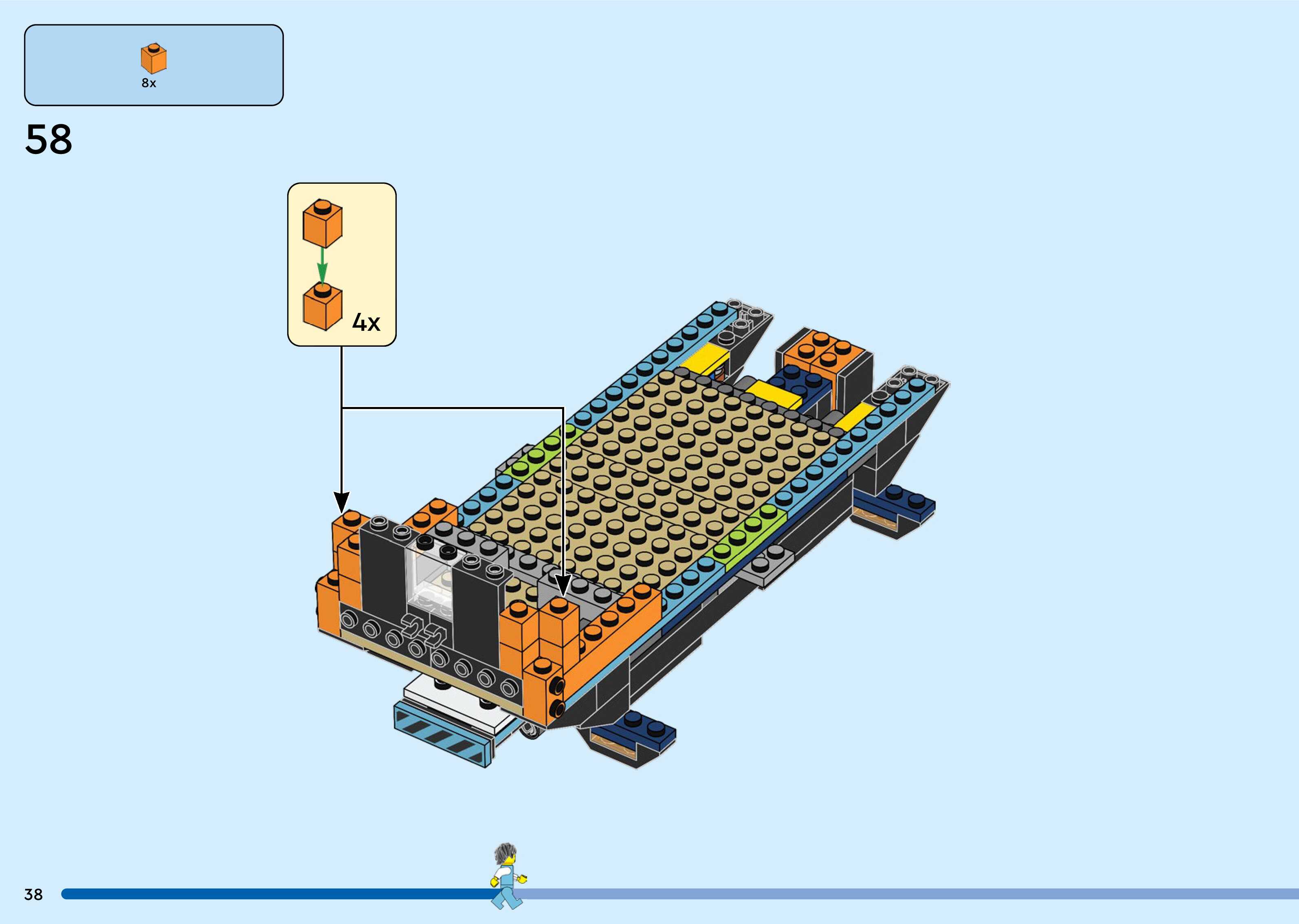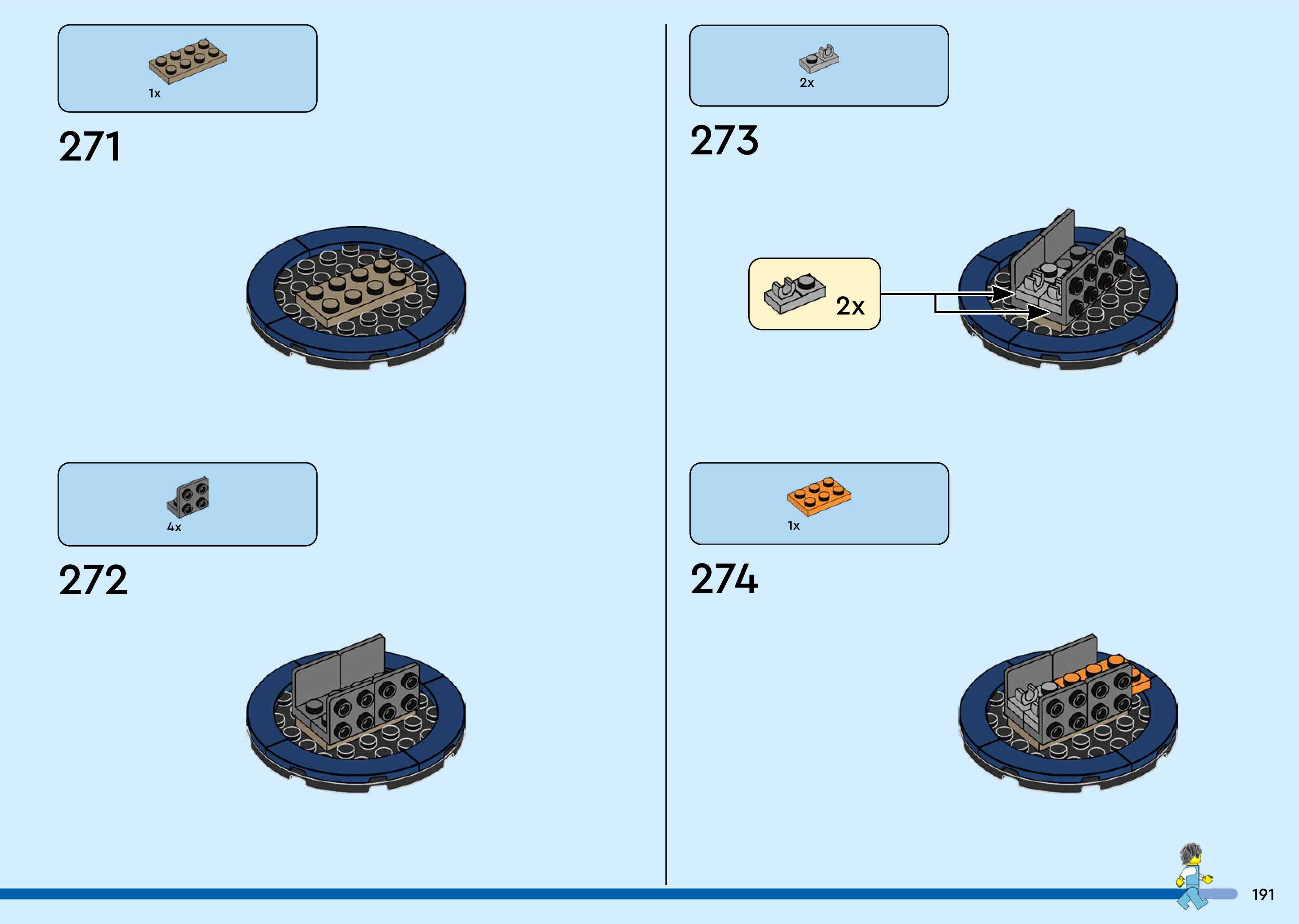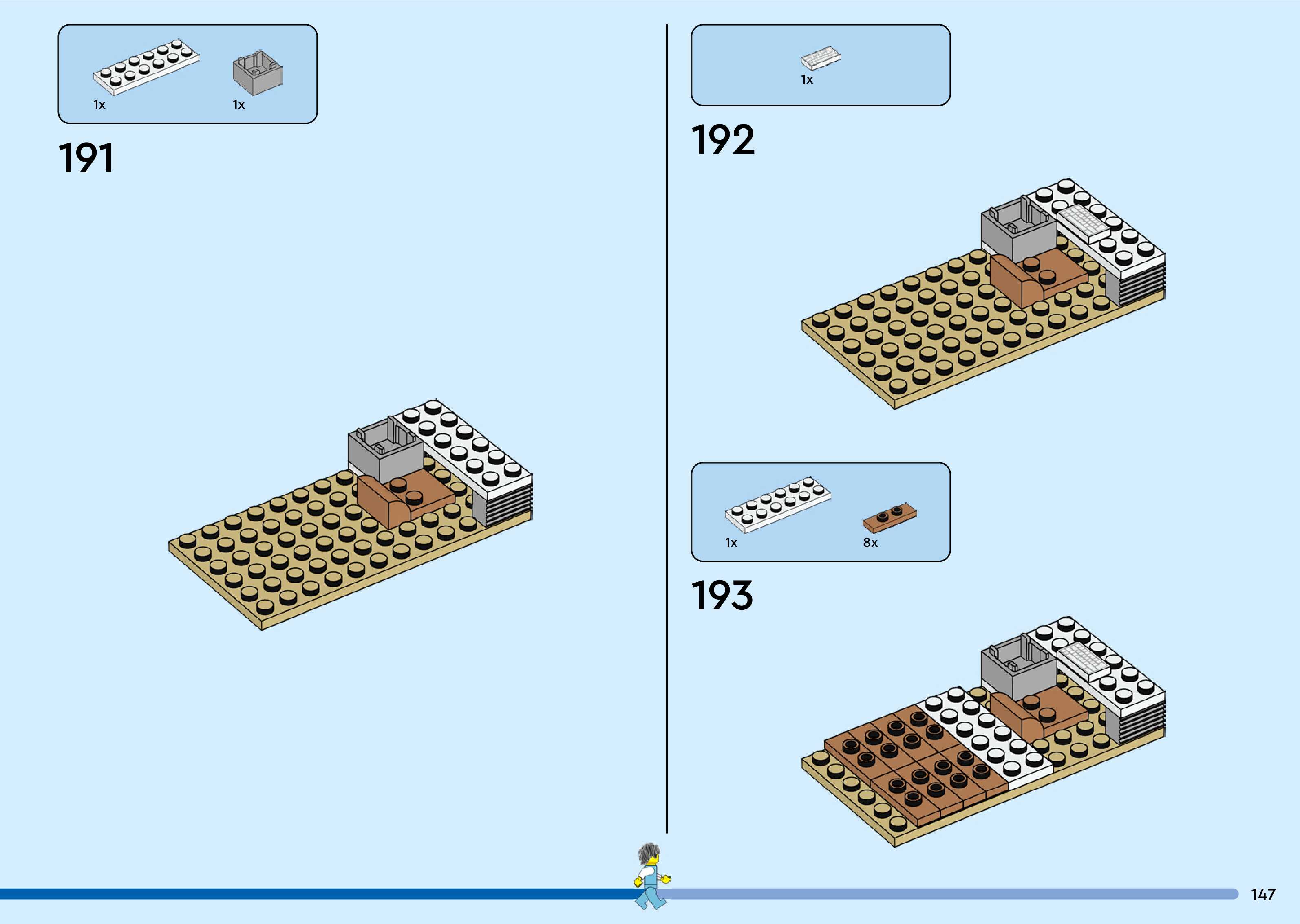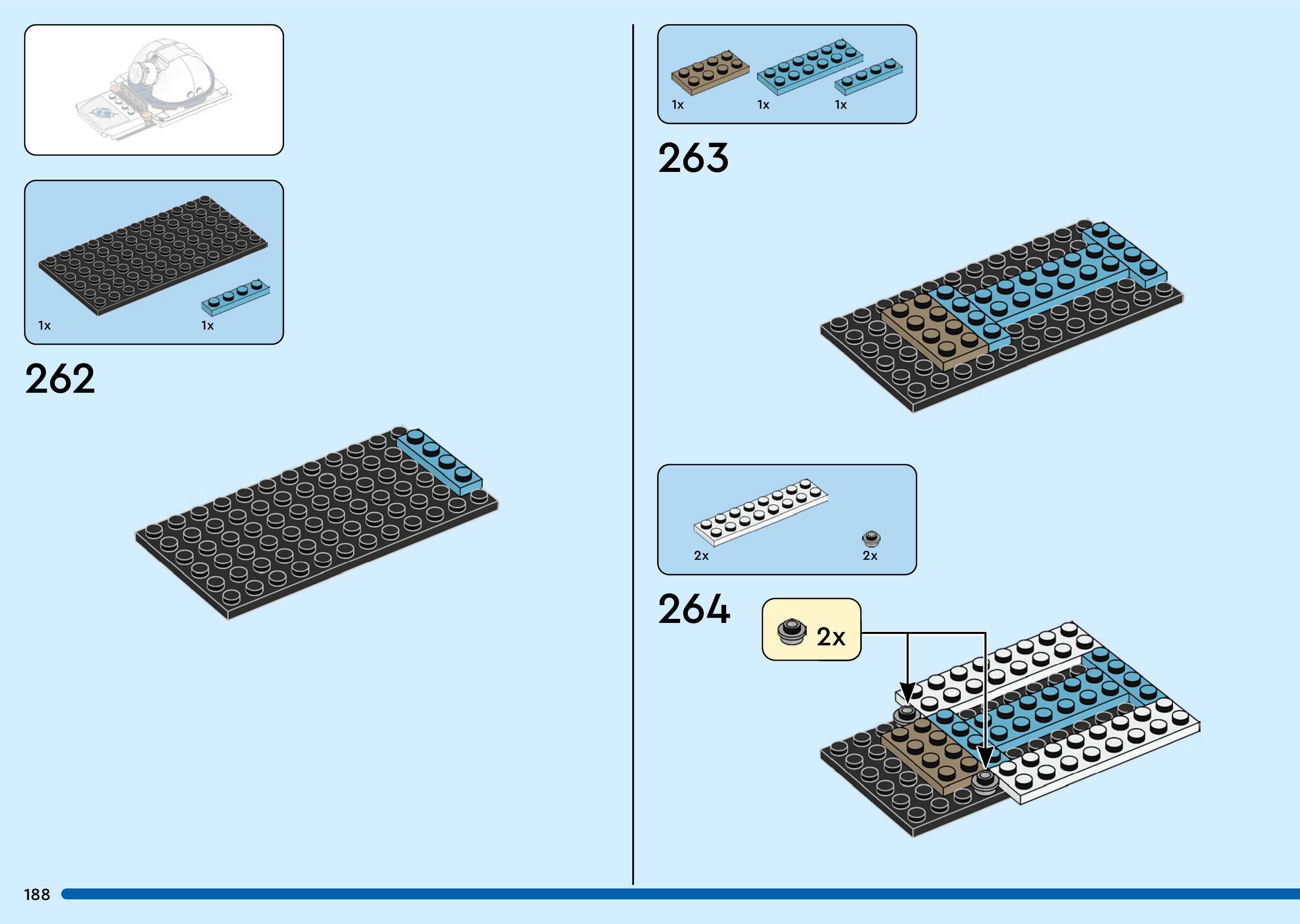 The assembly guide is prepared in a very understandable way for children and adult LEGO enthusiasts. A total of 268 picture galleries are shown, explaining the step-by-step construction stages for 3 different structures.