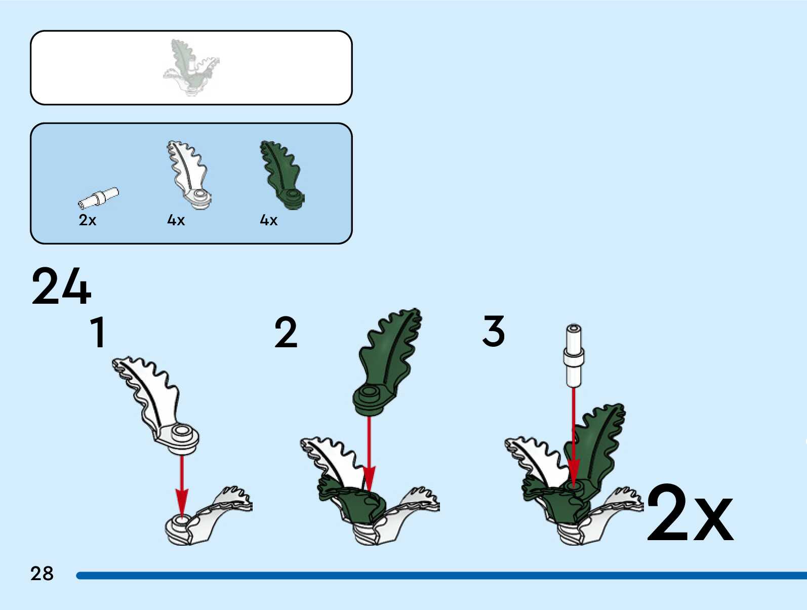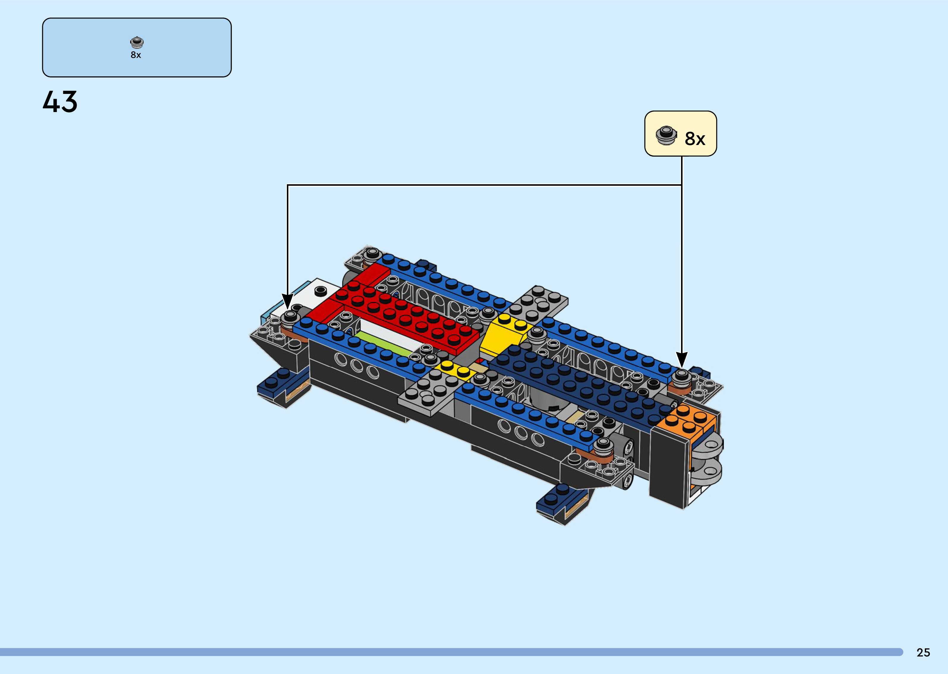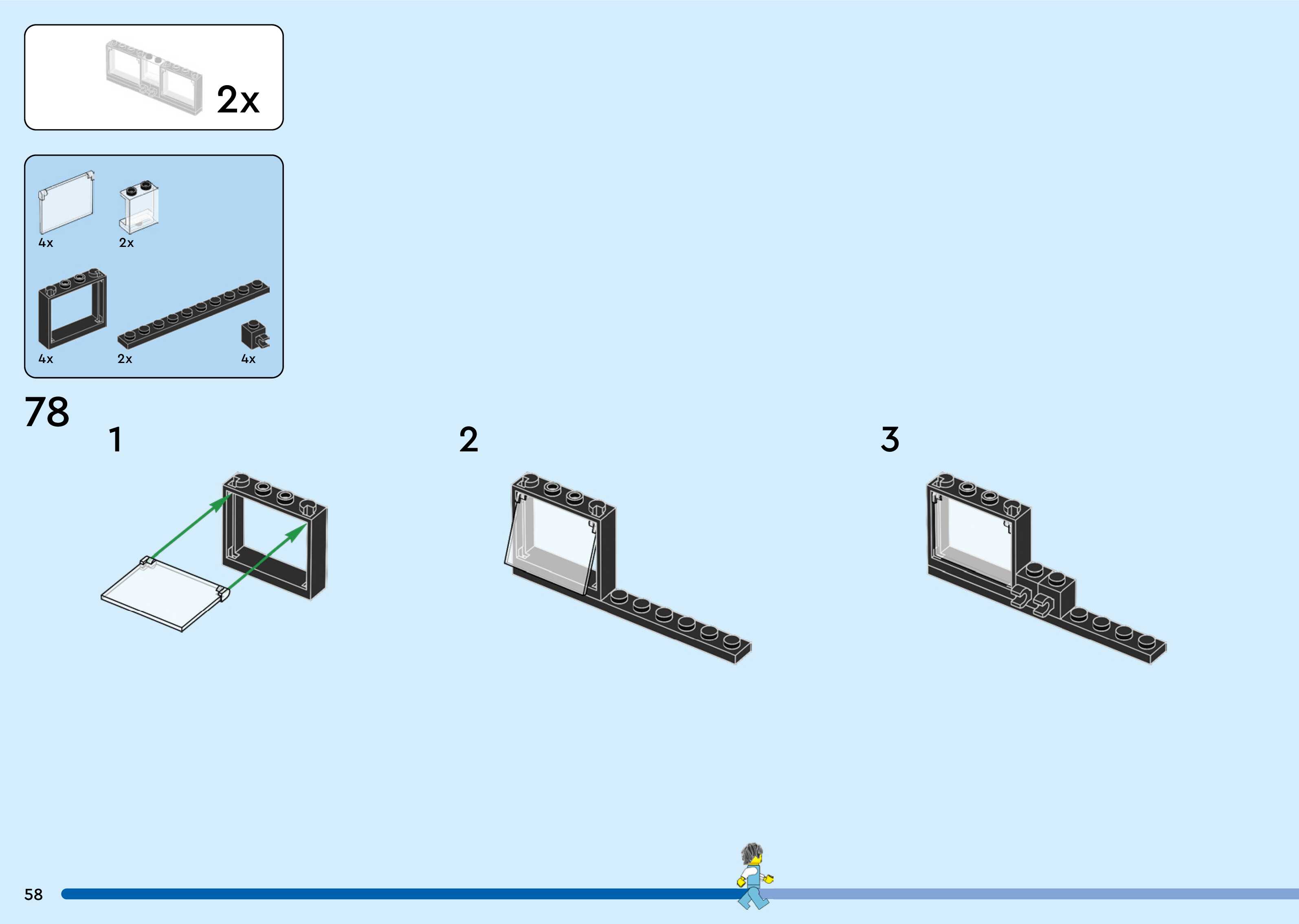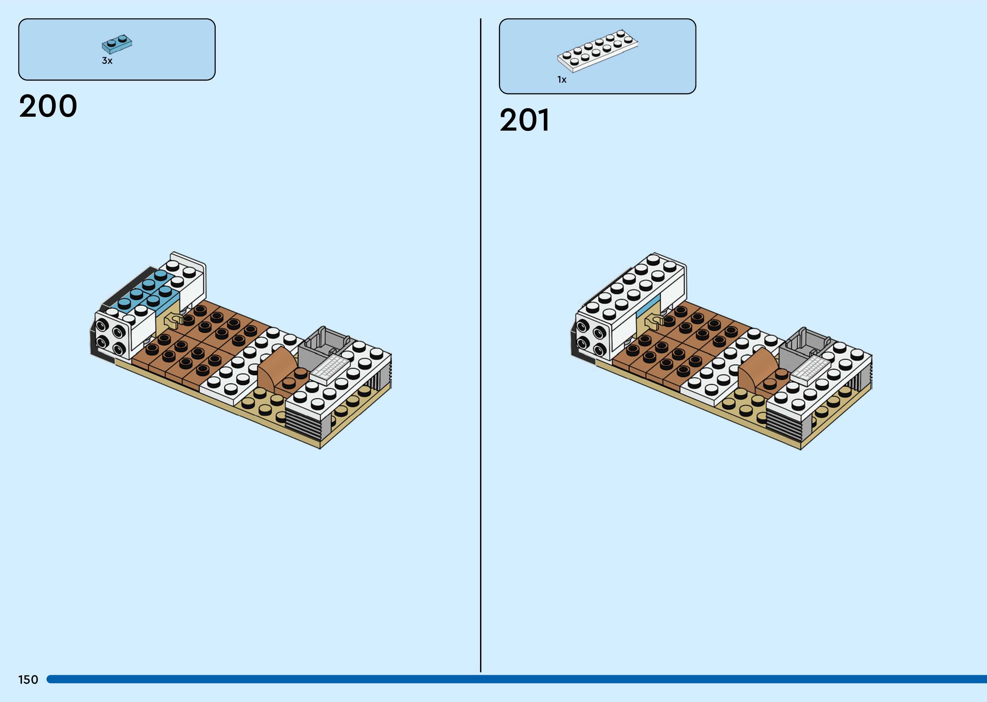 The assembly guide is prepared in a very understandable way for children and adult LEGO enthusiasts. A total of 268 picture galleries are shown, explaining the step-by-step construction stages for 3 different structures.