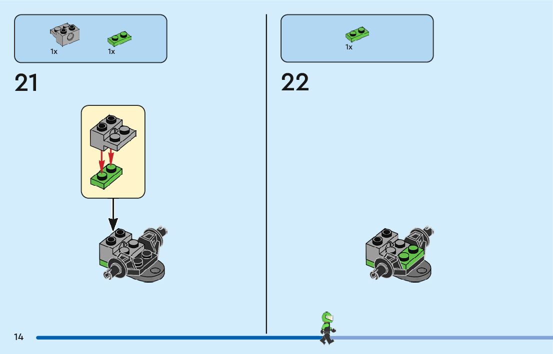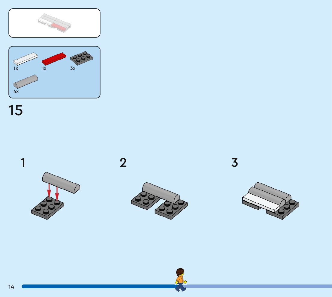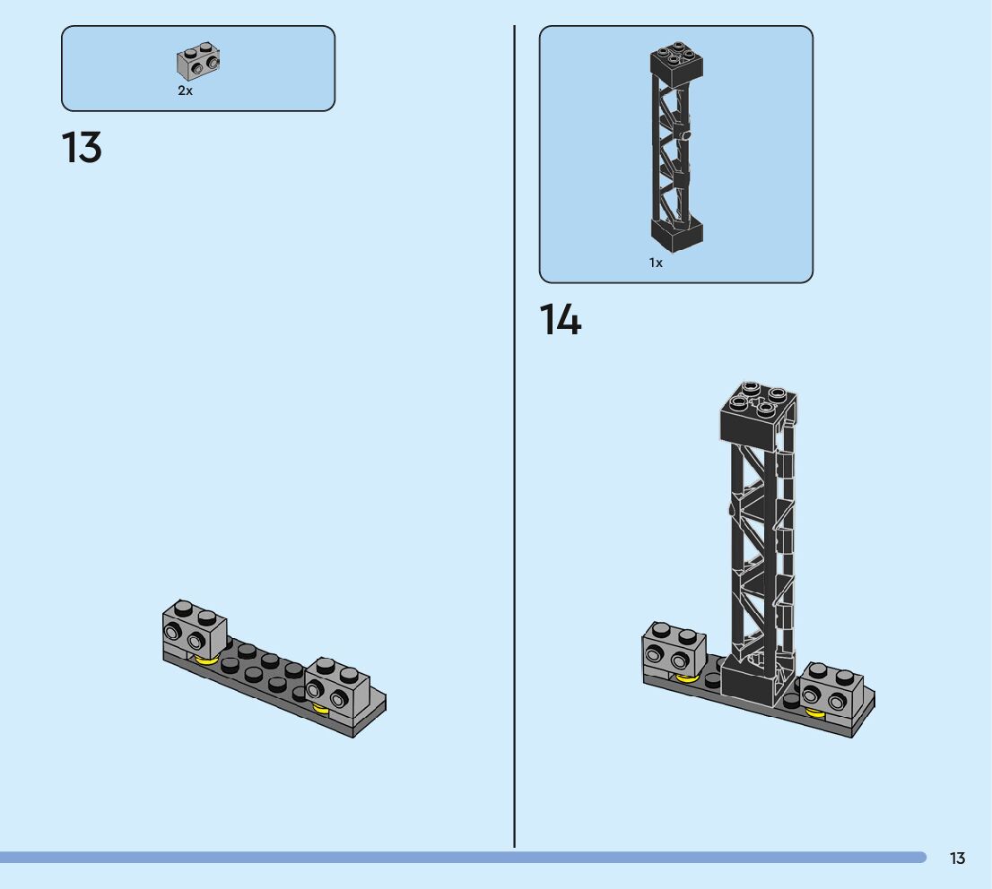 The assembly guide is prepared in a very understandable way for children and adult LEGO enthusiasts. A total of 140 picture galleries are shown, explaining the step-by-step construction stages for 3 different structures.
