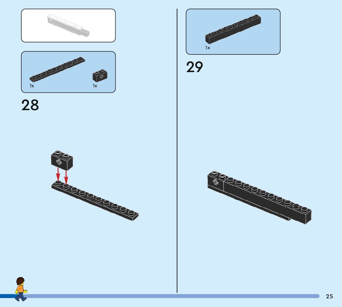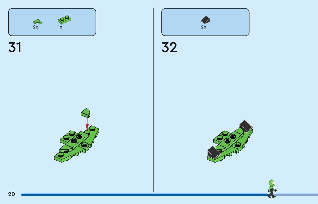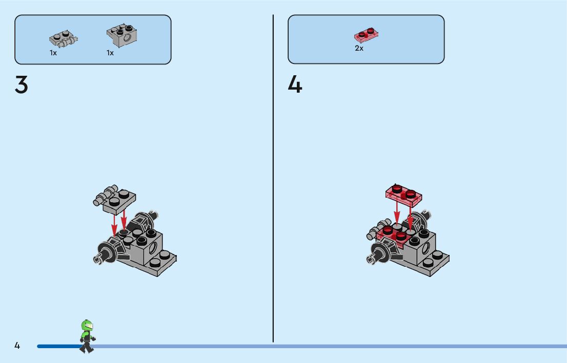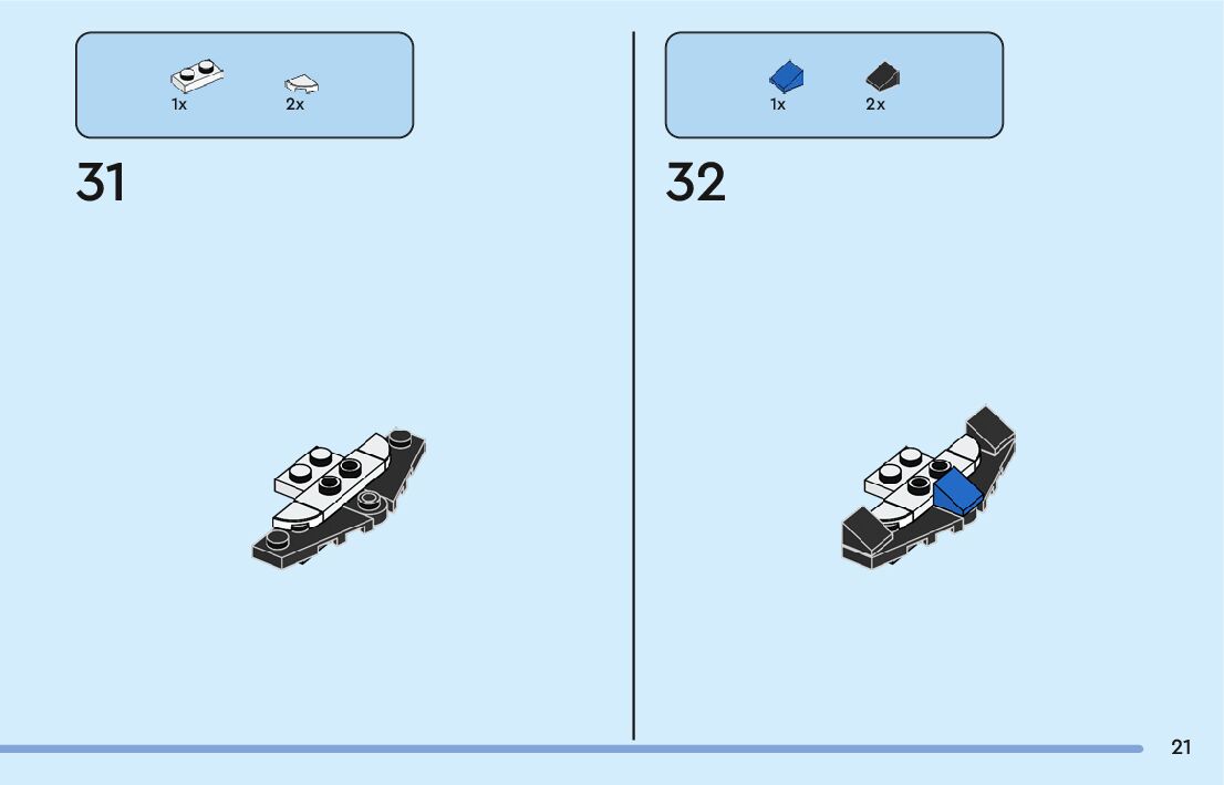 The assembly guide is prepared in a very understandable way for children and adult LEGO enthusiasts. A total of 140 picture galleries are shown, explaining the step-by-step construction stages for 3 different structures.