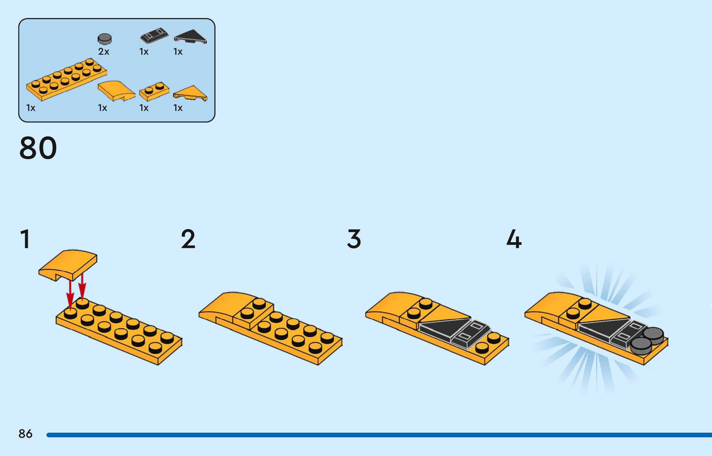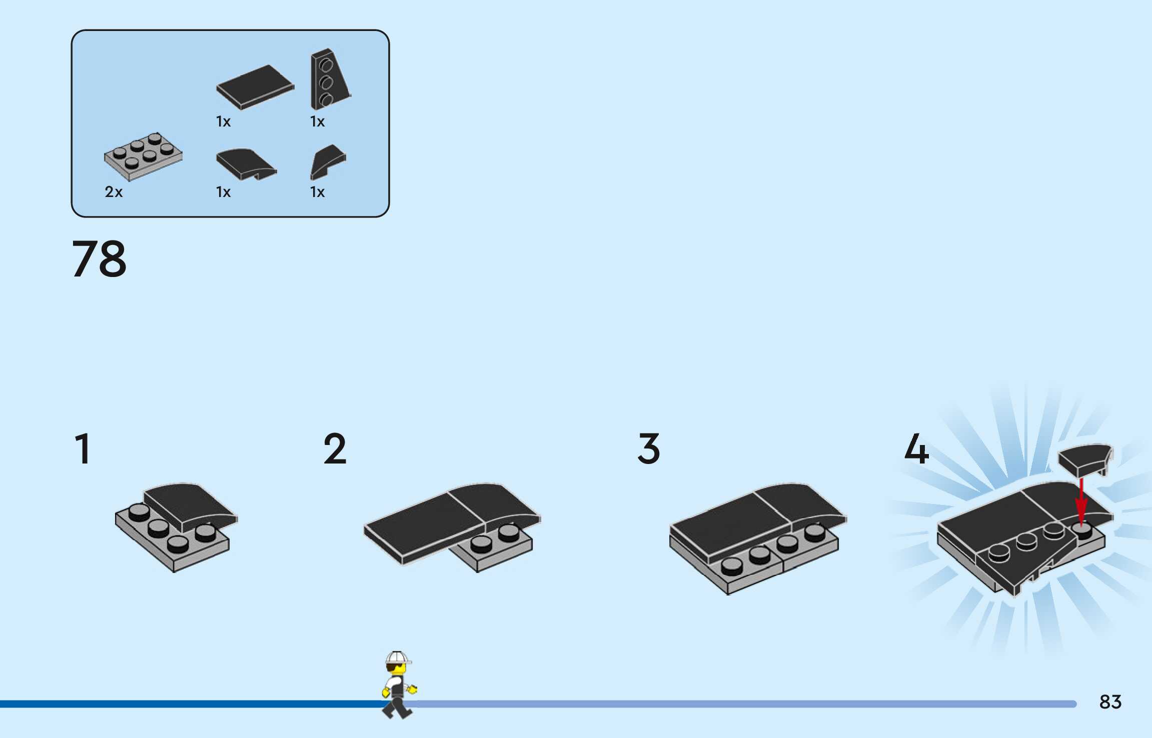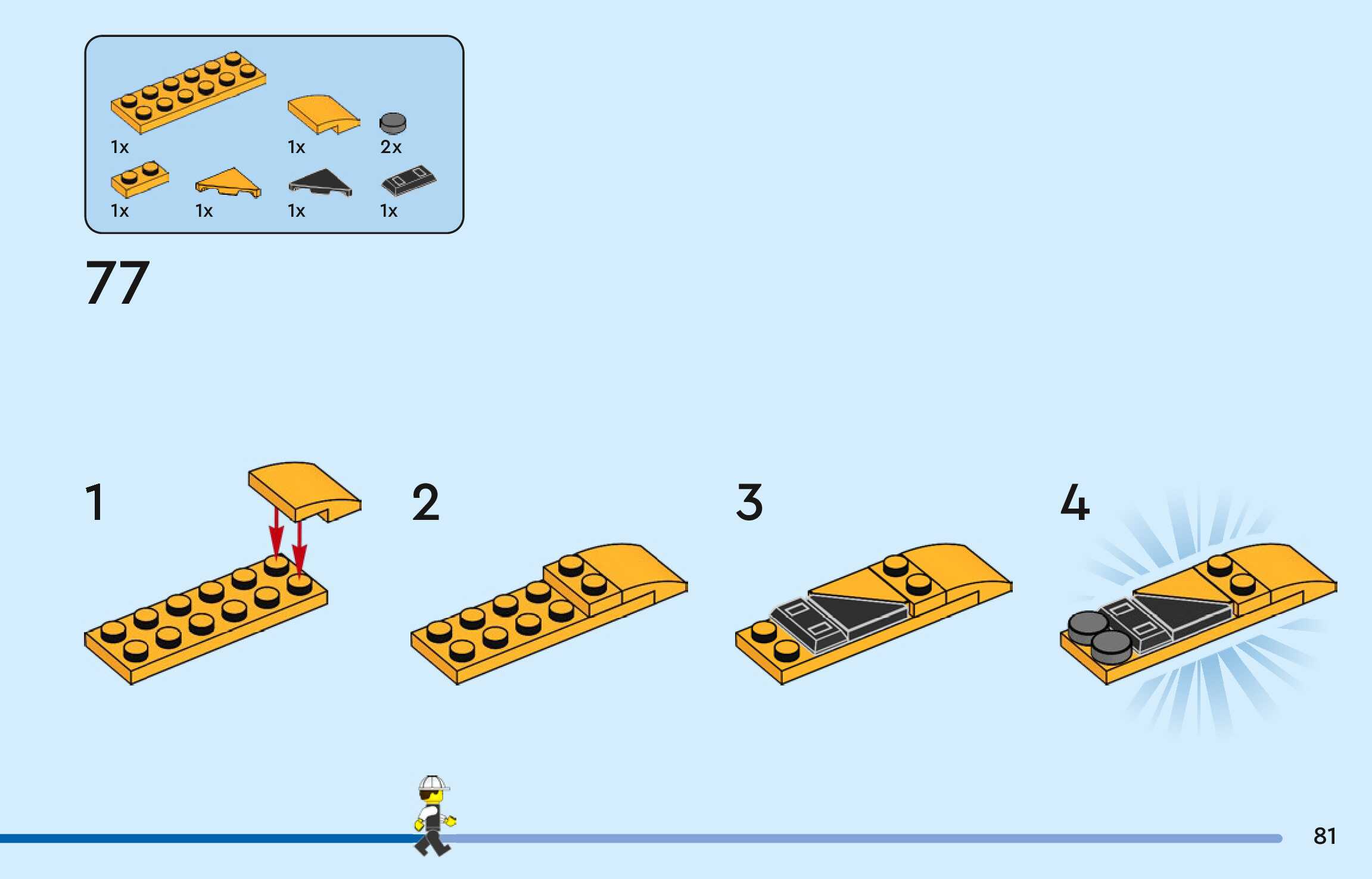 The assembly guide is prepared in a very understandable way for children and adult LEGO enthusiasts. A total of 128 picture galleries are shown, explaining the step-by-step construction stages for 1 different structures.