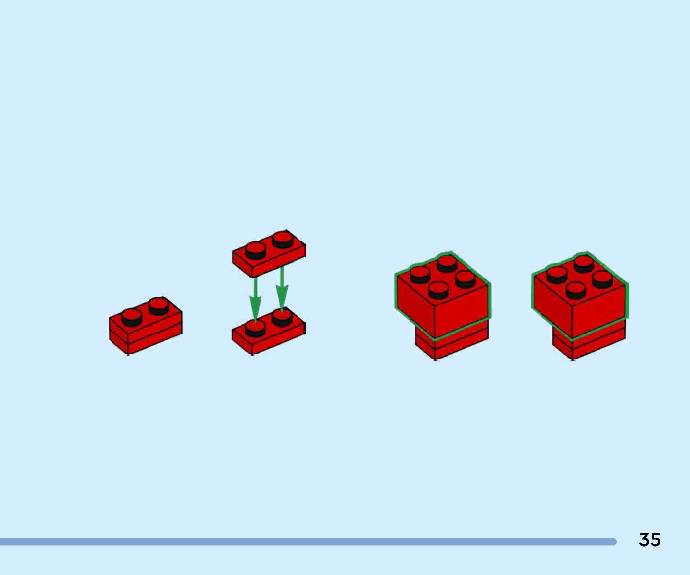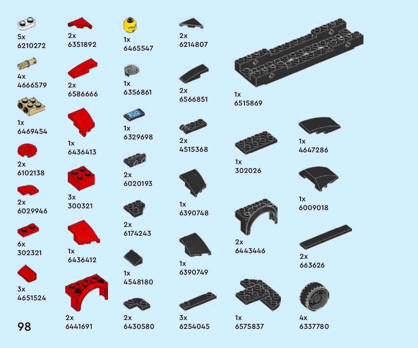 The assembly guide is prepared in a very understandable way for children and adult LEGO enthusiasts. A total of 100 picture galleries are shown, explaining the step-by-step construction stages for 1 different structures.